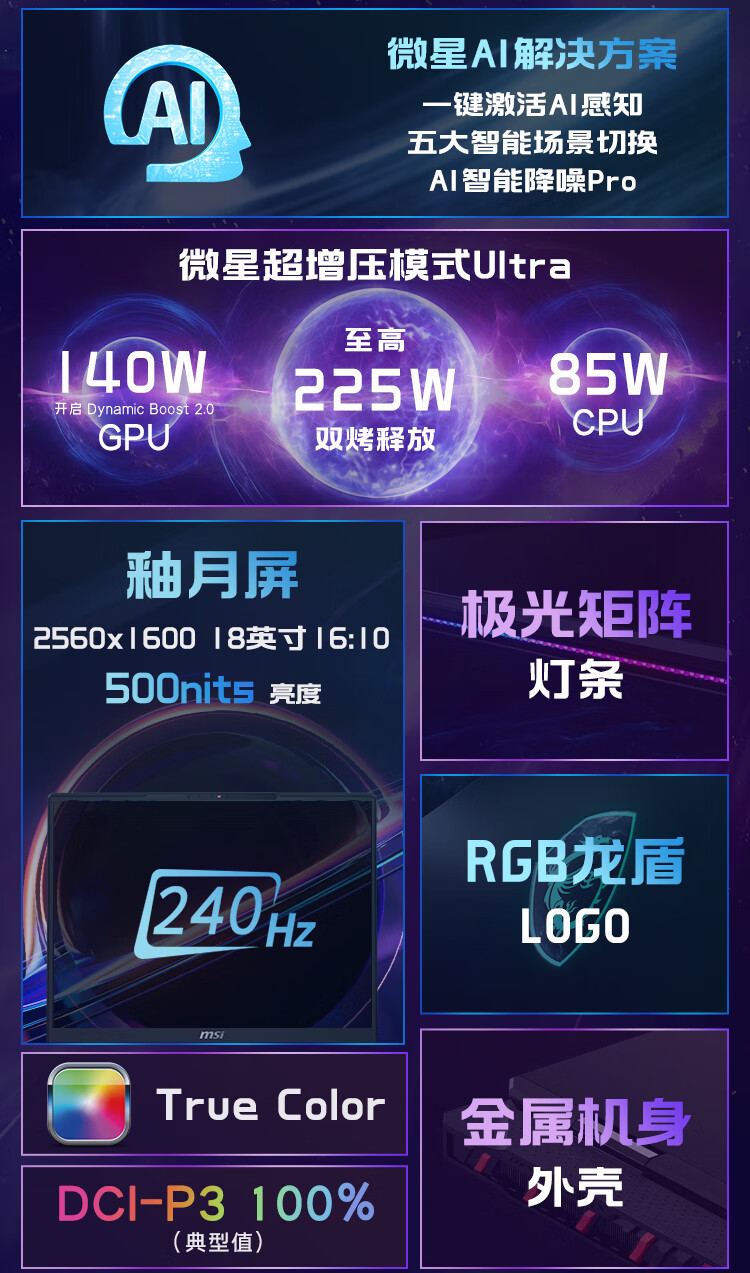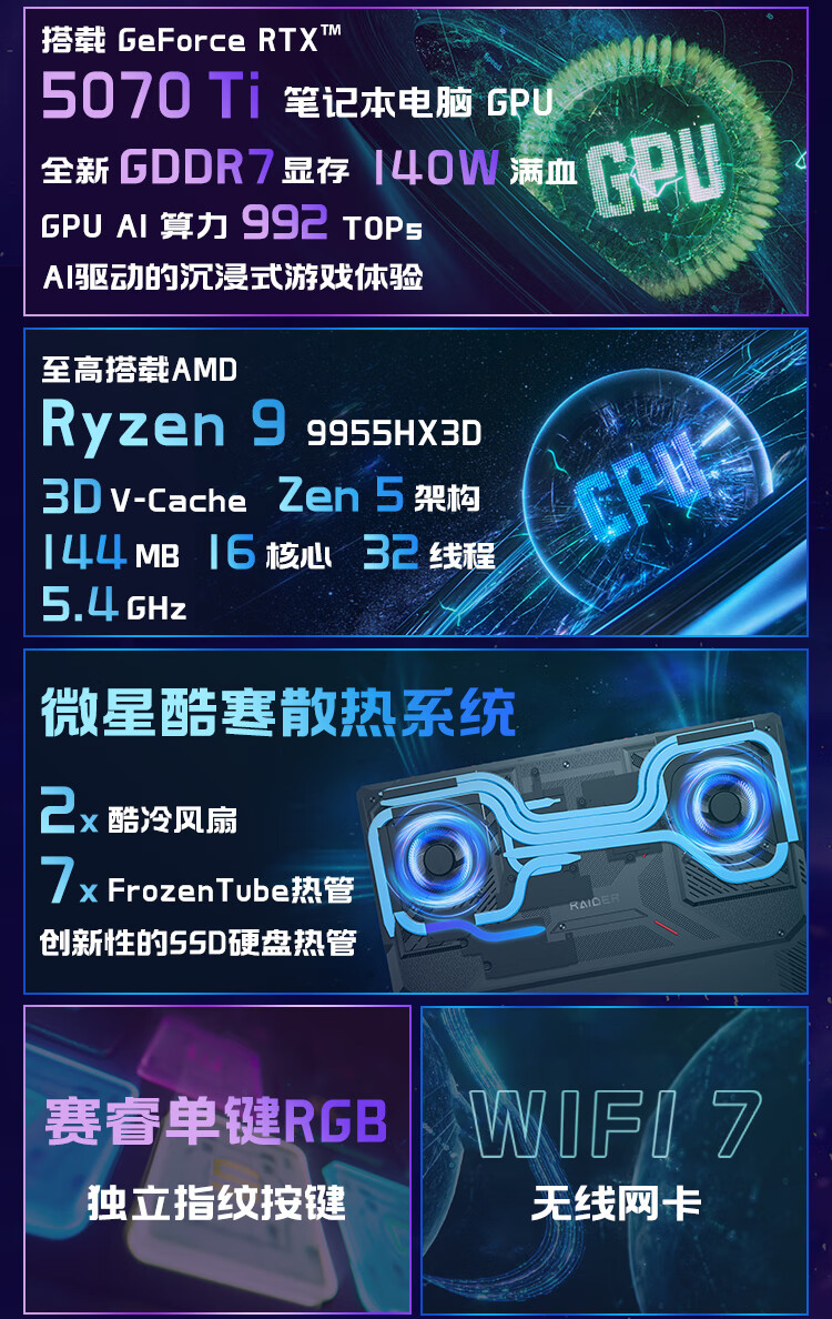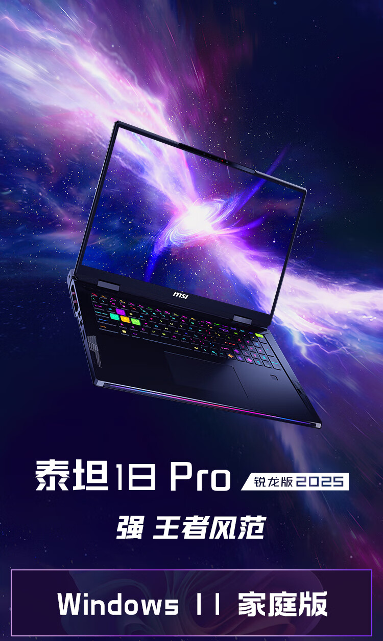 微星(MSI)泰坦18Pro 锐龙版 2025 国家补贴 18英寸游戏笔记本电脑(R9-9955HX3D RTX5070Ti 2TB 2.5K/240Hz)