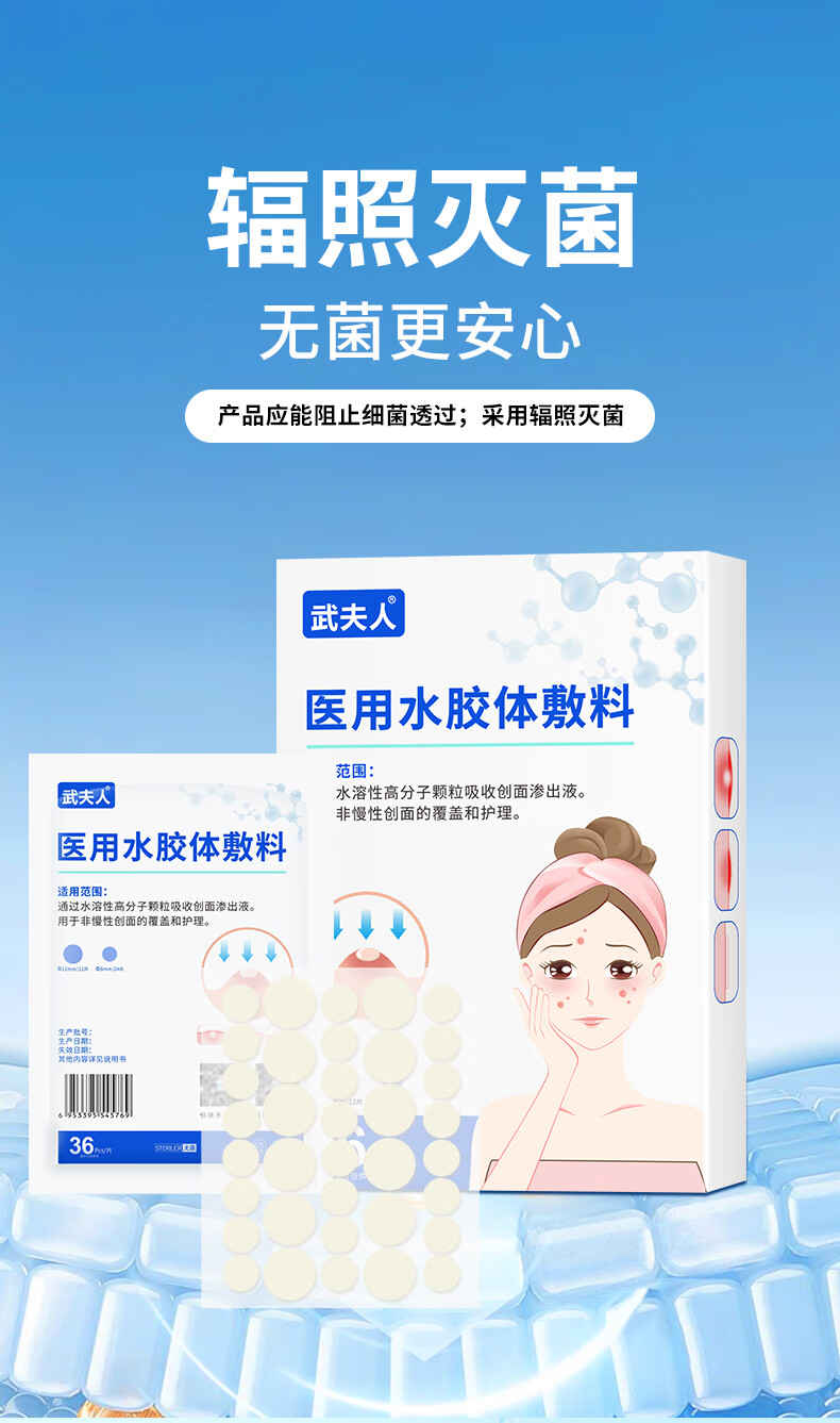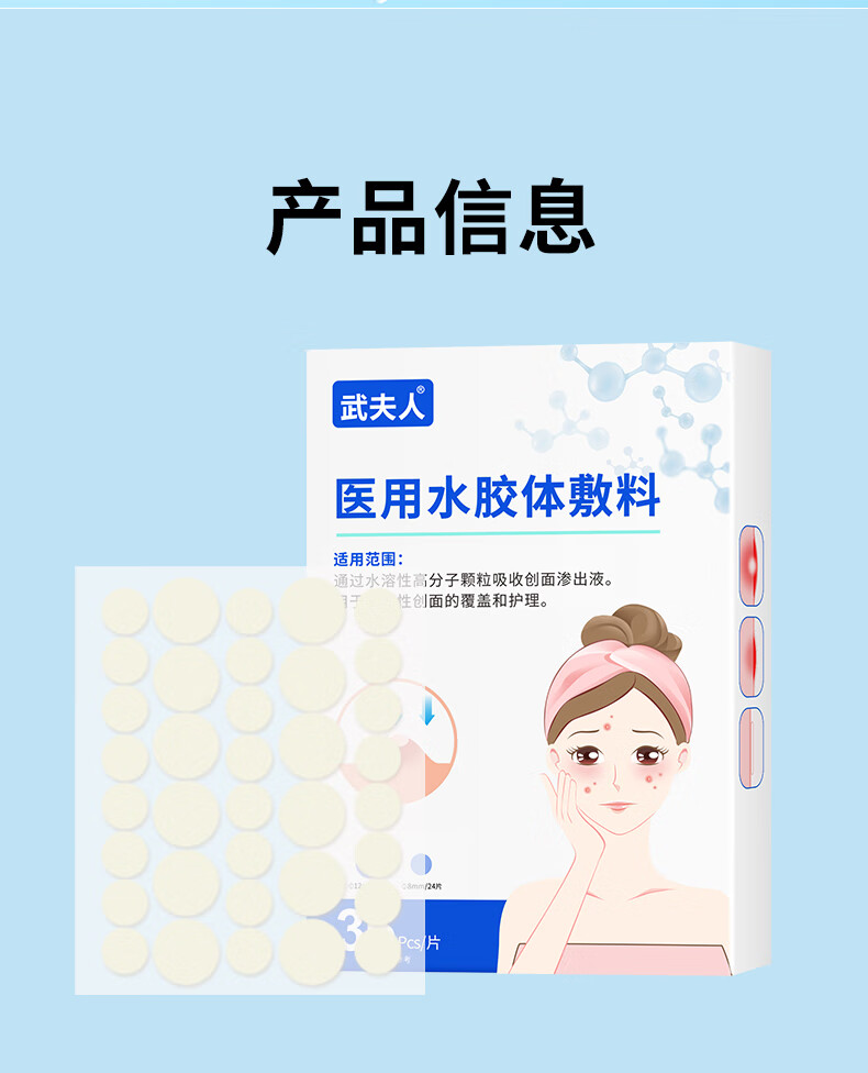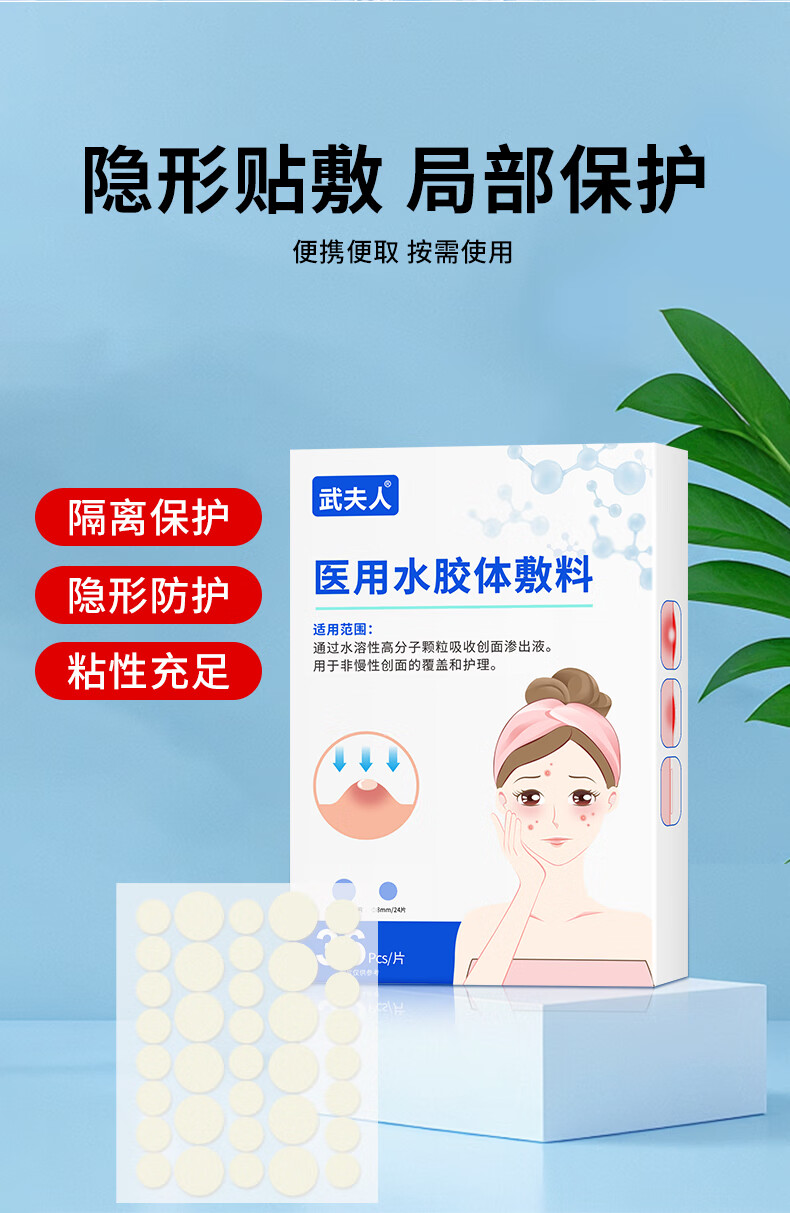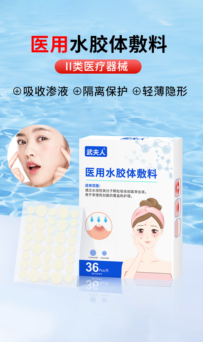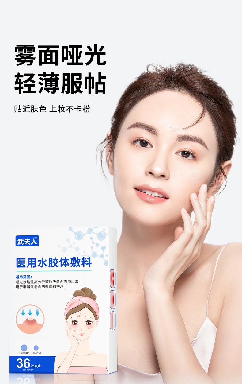 武夫人痘痘贴修复消痘印水胶体敷料创口医用型吸脓人工皮隐形豆豆 1盒*轻度痘【日夜两用 | 隐形吸痘】