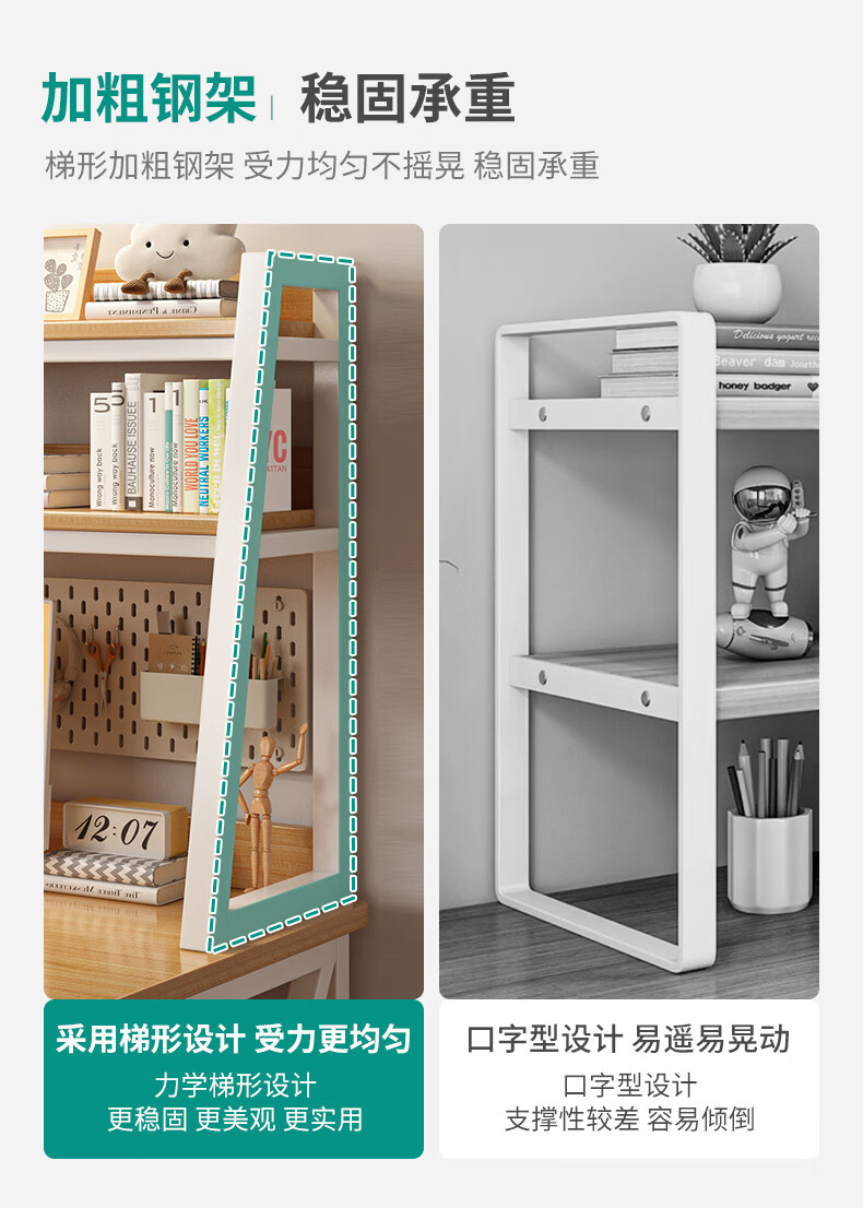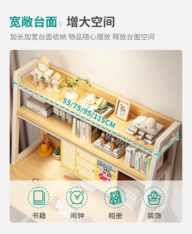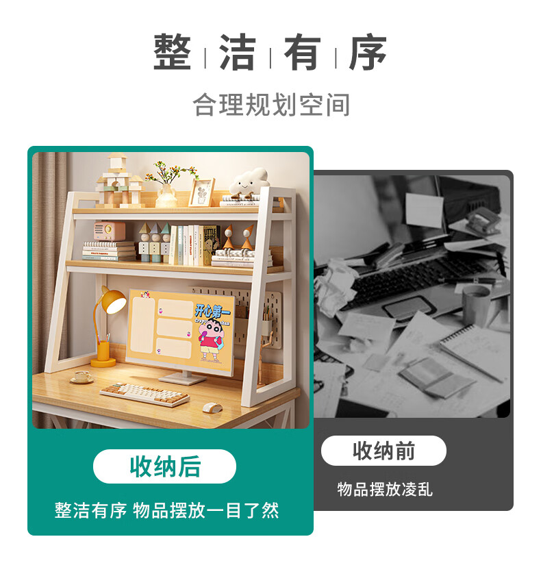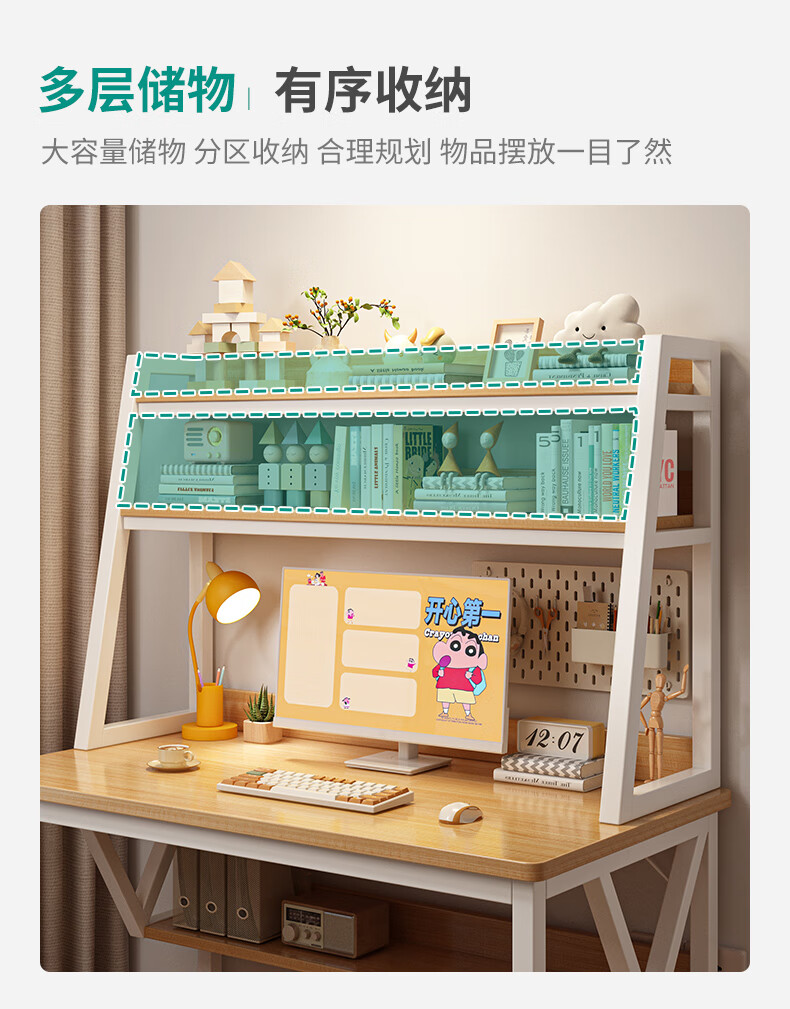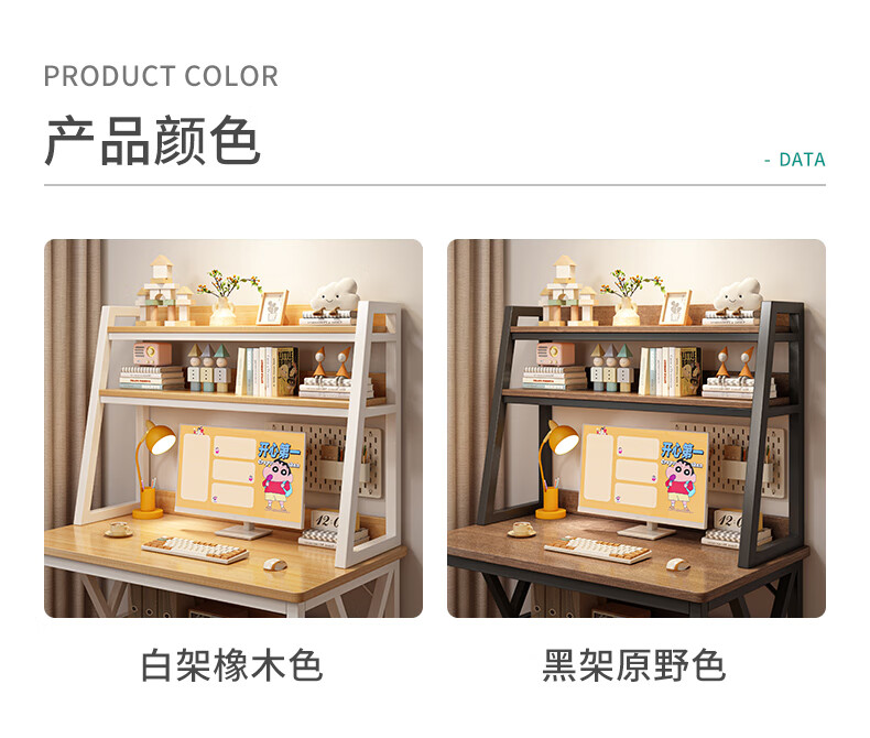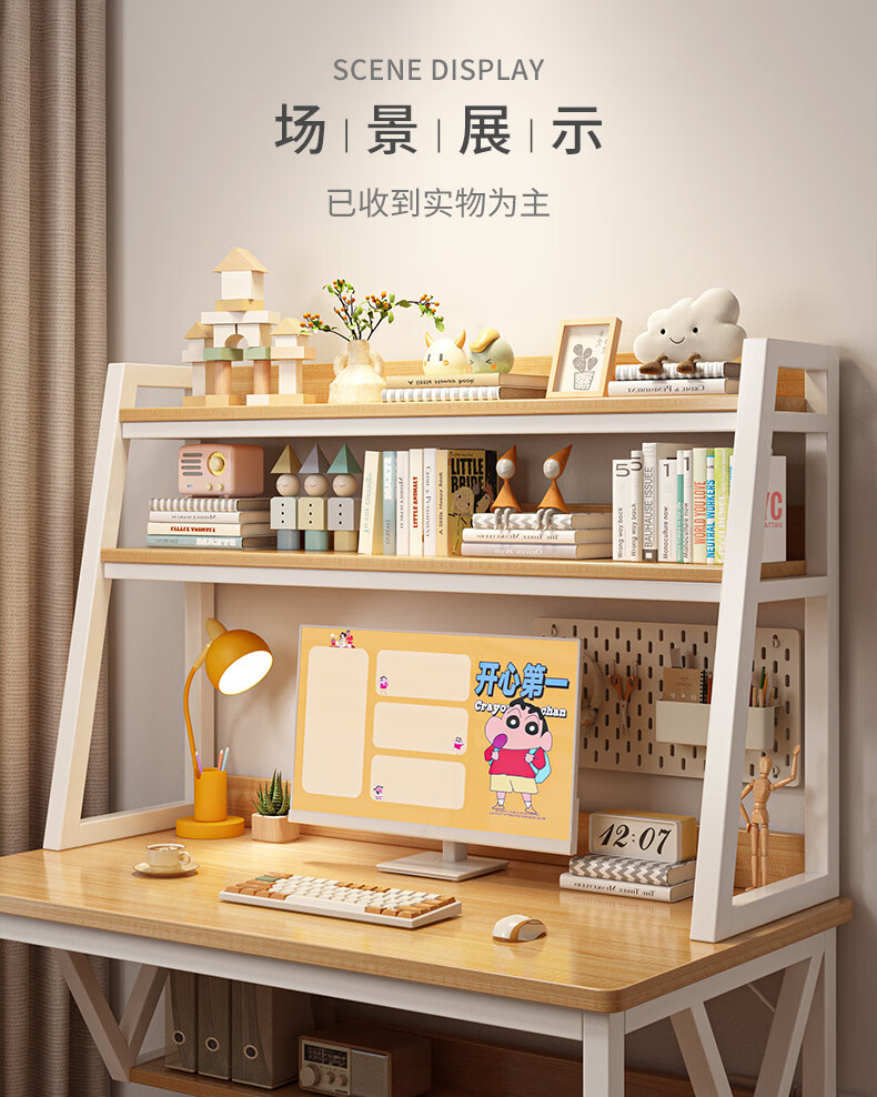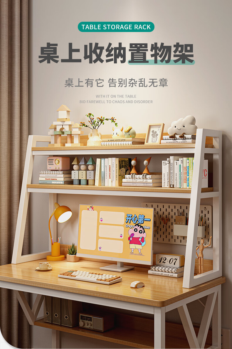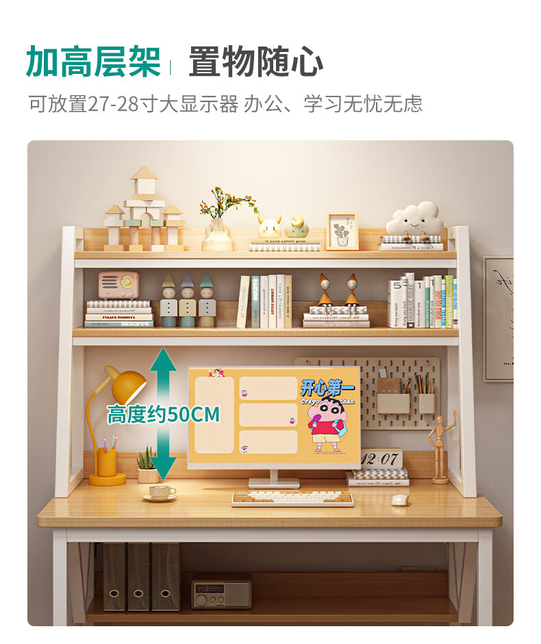 富禾桌面书架简约桌上置物架办公储物架饰物架电脑桌一体书架子 【单层】橡木色55cm