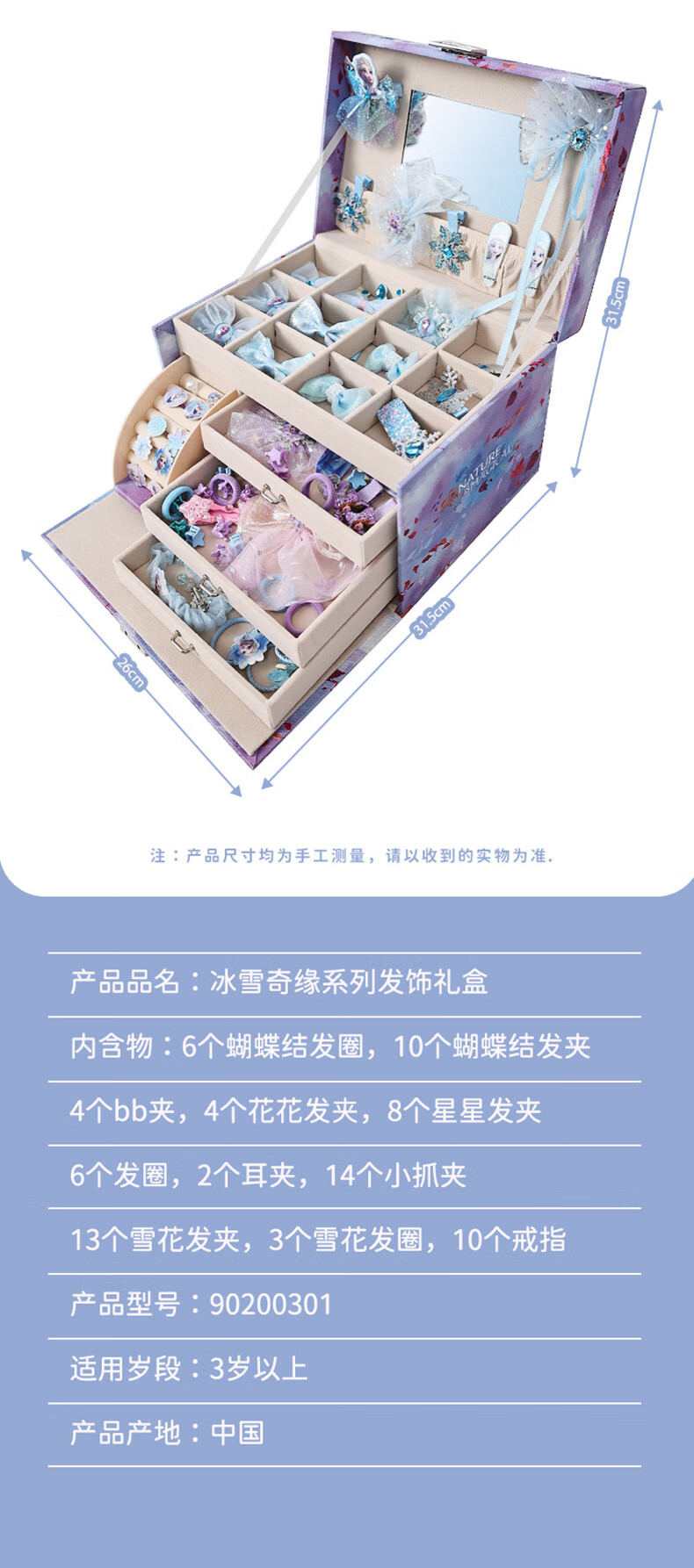 迪士尼(Disney)冰雪奇缘首饰戒指发饰礼盒玩具艾莎公主圣诞节礼物生日礼物女生