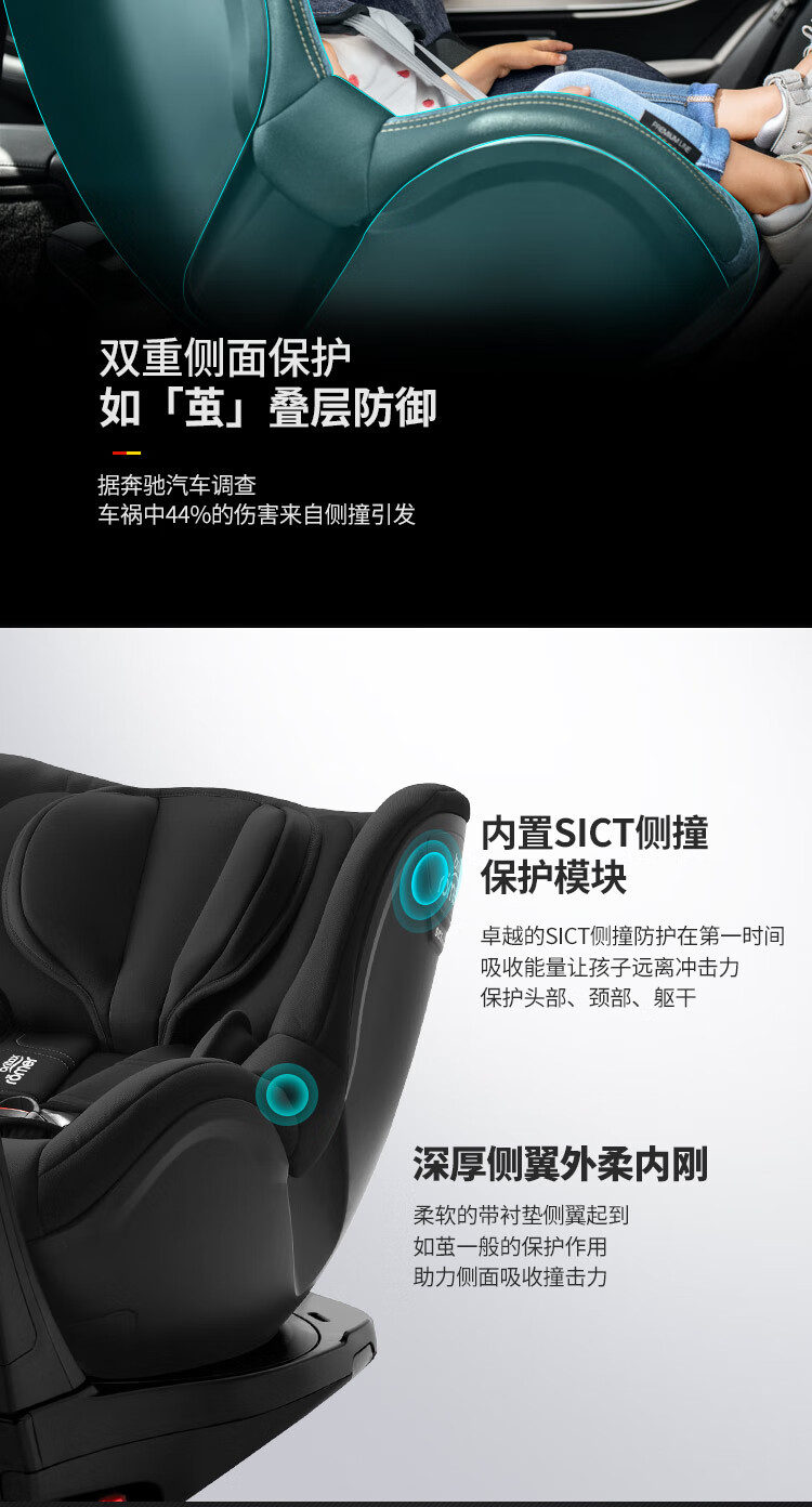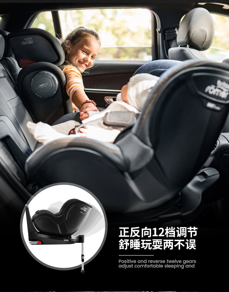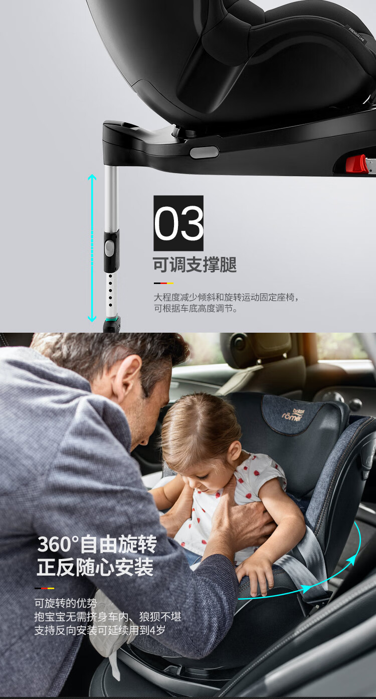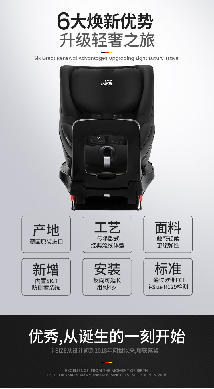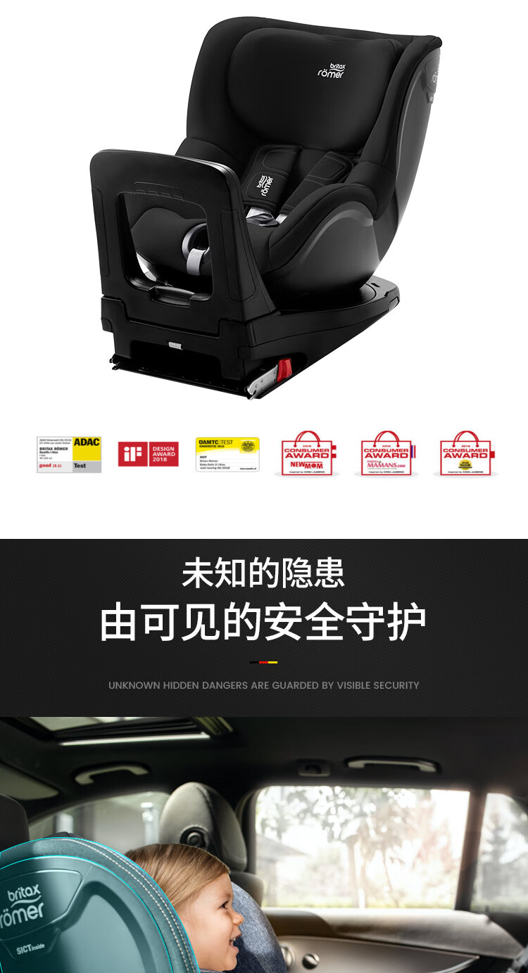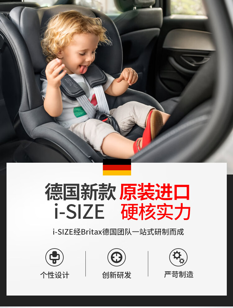 宝得适(BRITAX)儿童安全座椅0-4岁德国进口360度旋转双面骑士isize太空黑