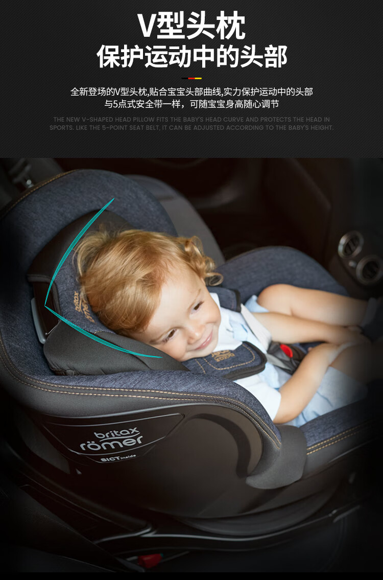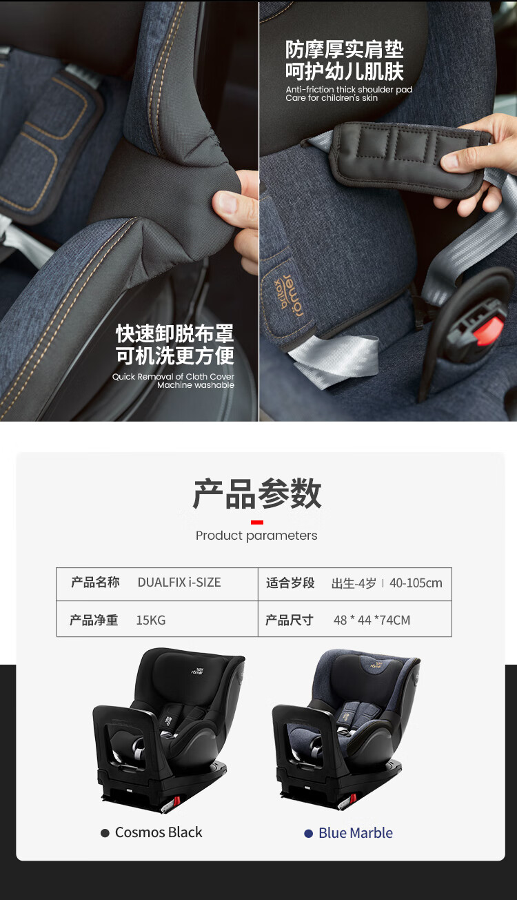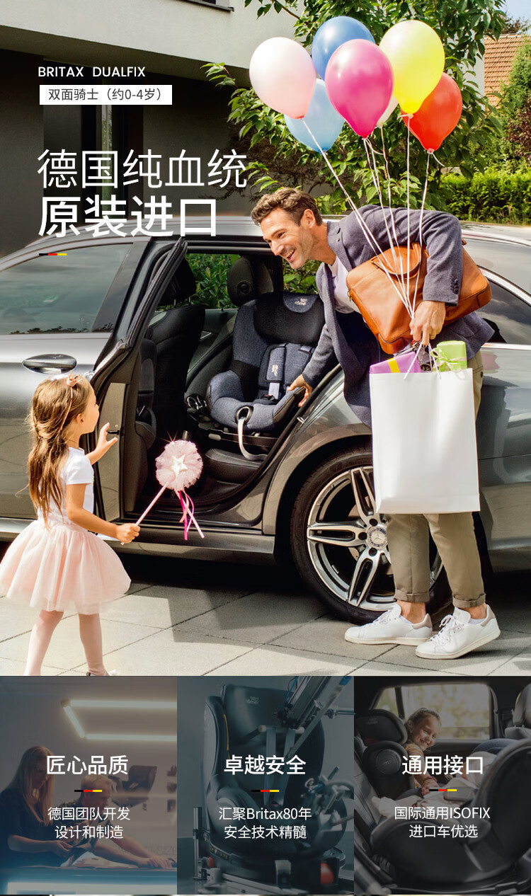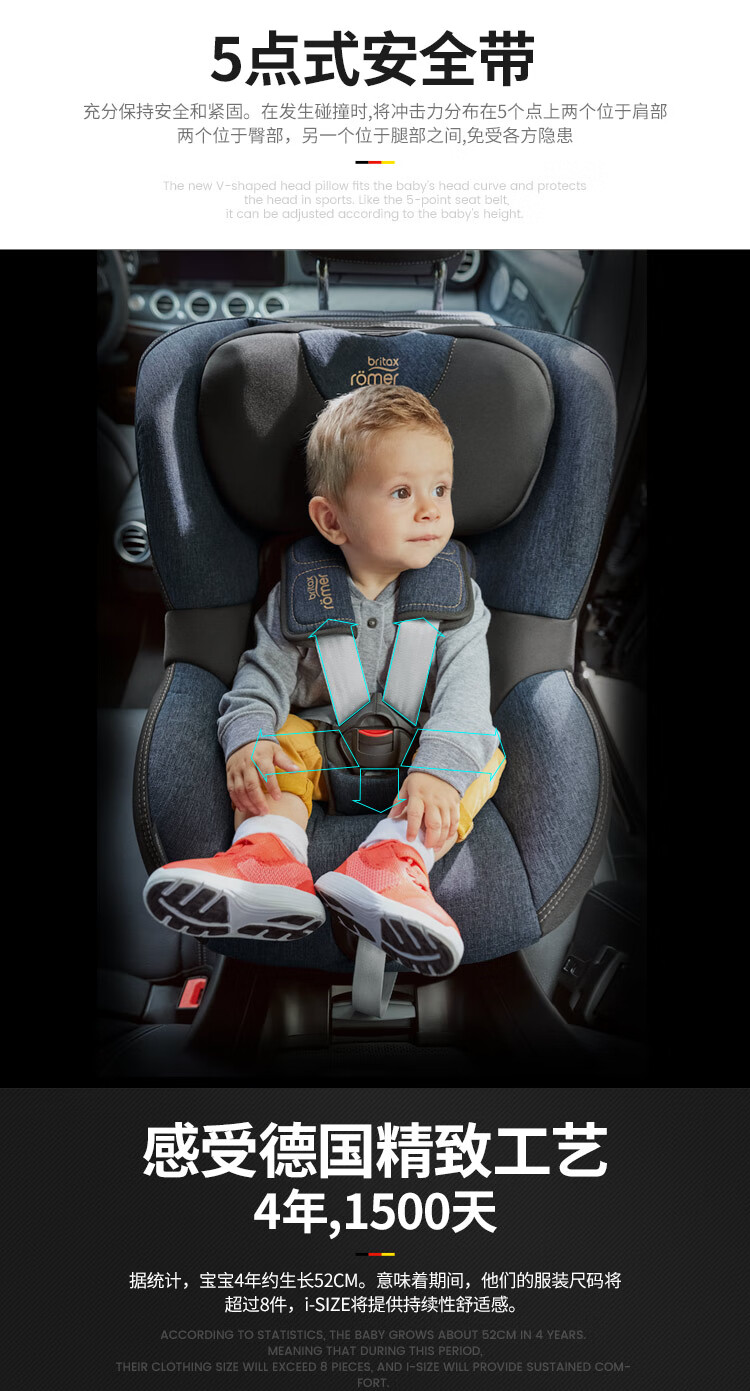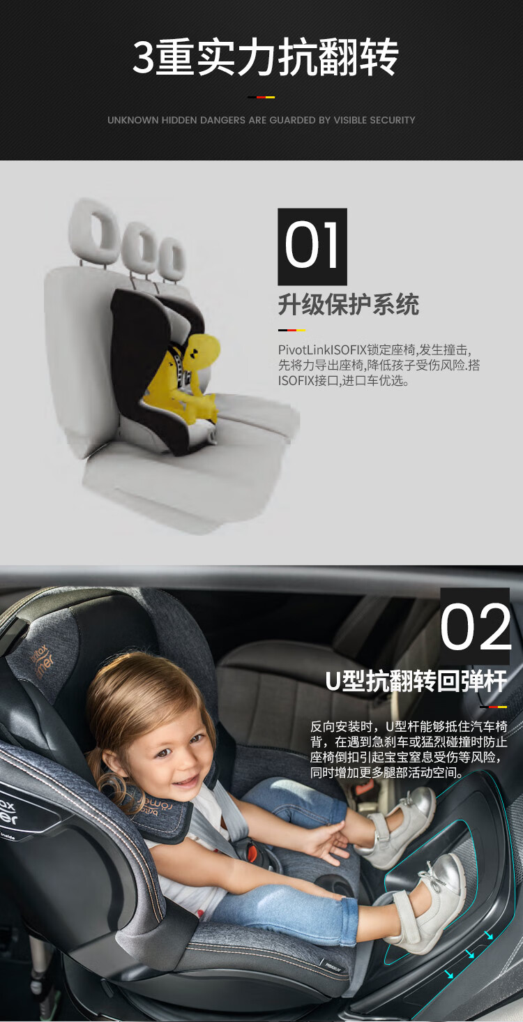 宝得适(BRITAX)儿童安全座椅0-4岁德国进口360度旋转双面骑士isize太空黑