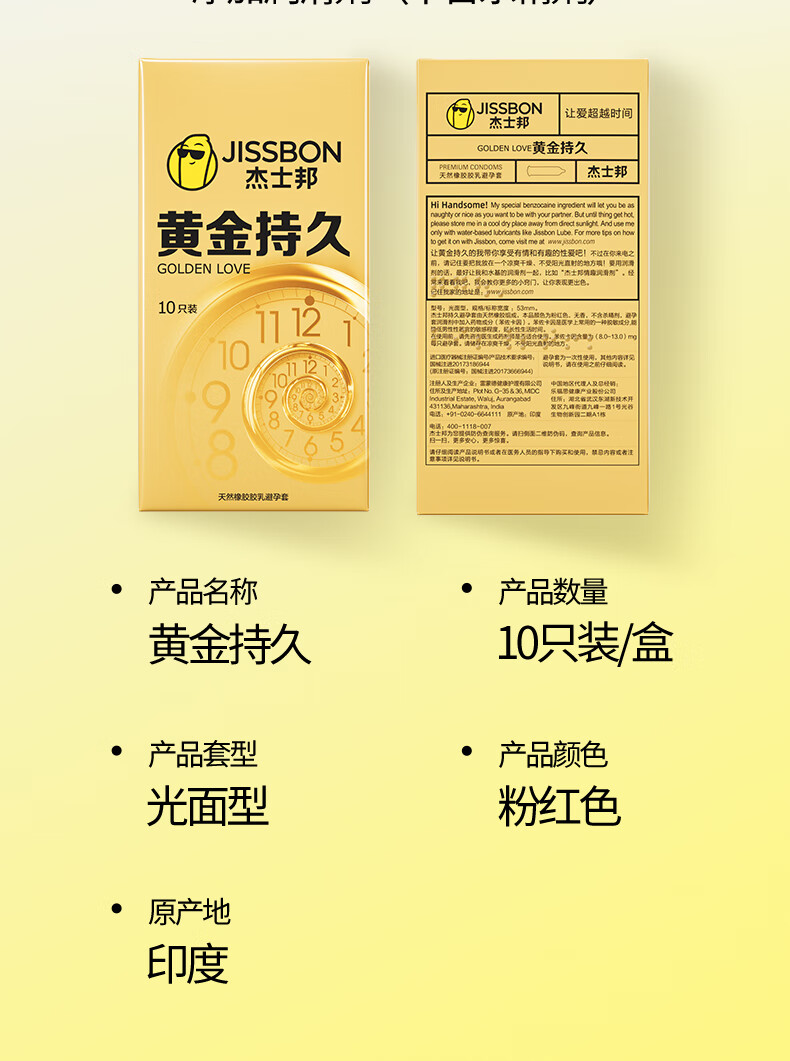 杰士邦液态延时避孕套黄金持久10只安全套套超薄成人计生情趣用品