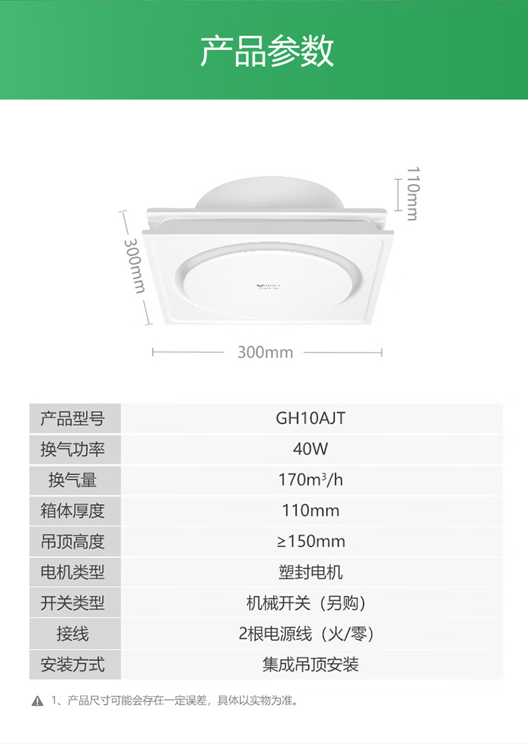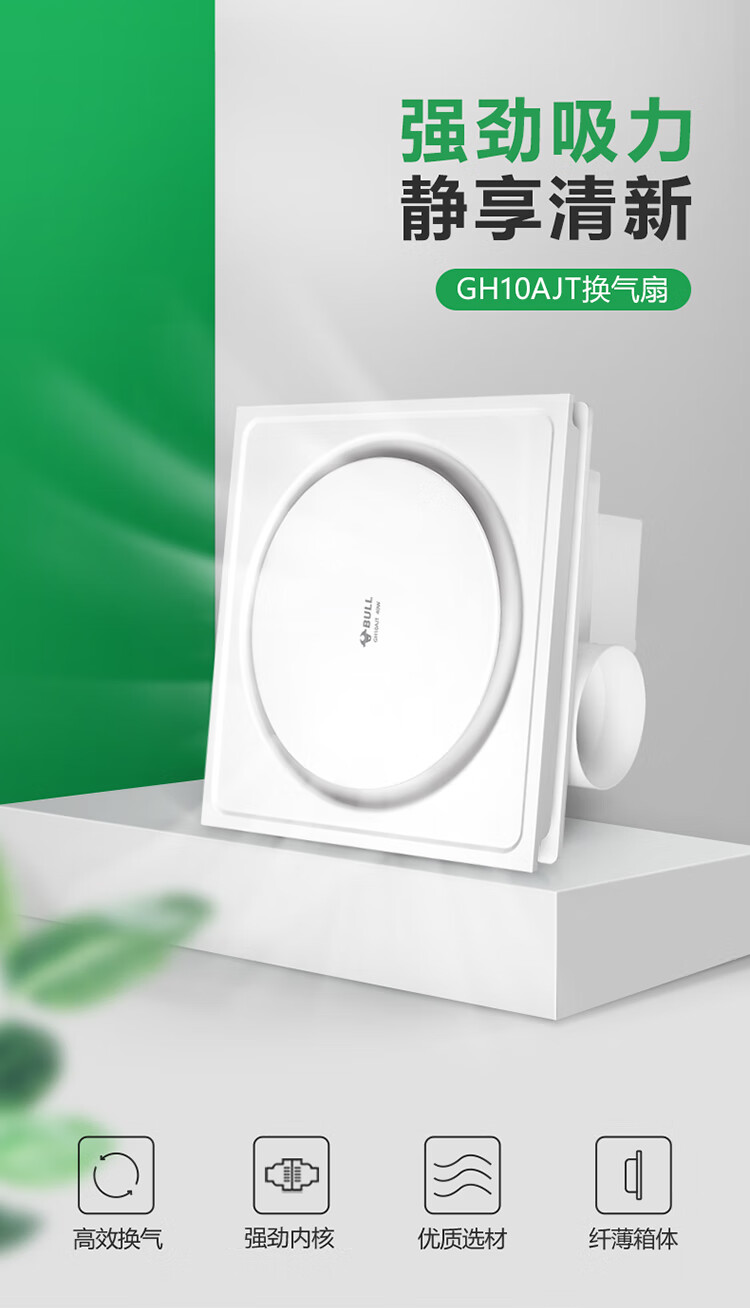公牛(BULL)排气扇换气扇 GH10AJT厨房卫生间大风量换气低噪舒适