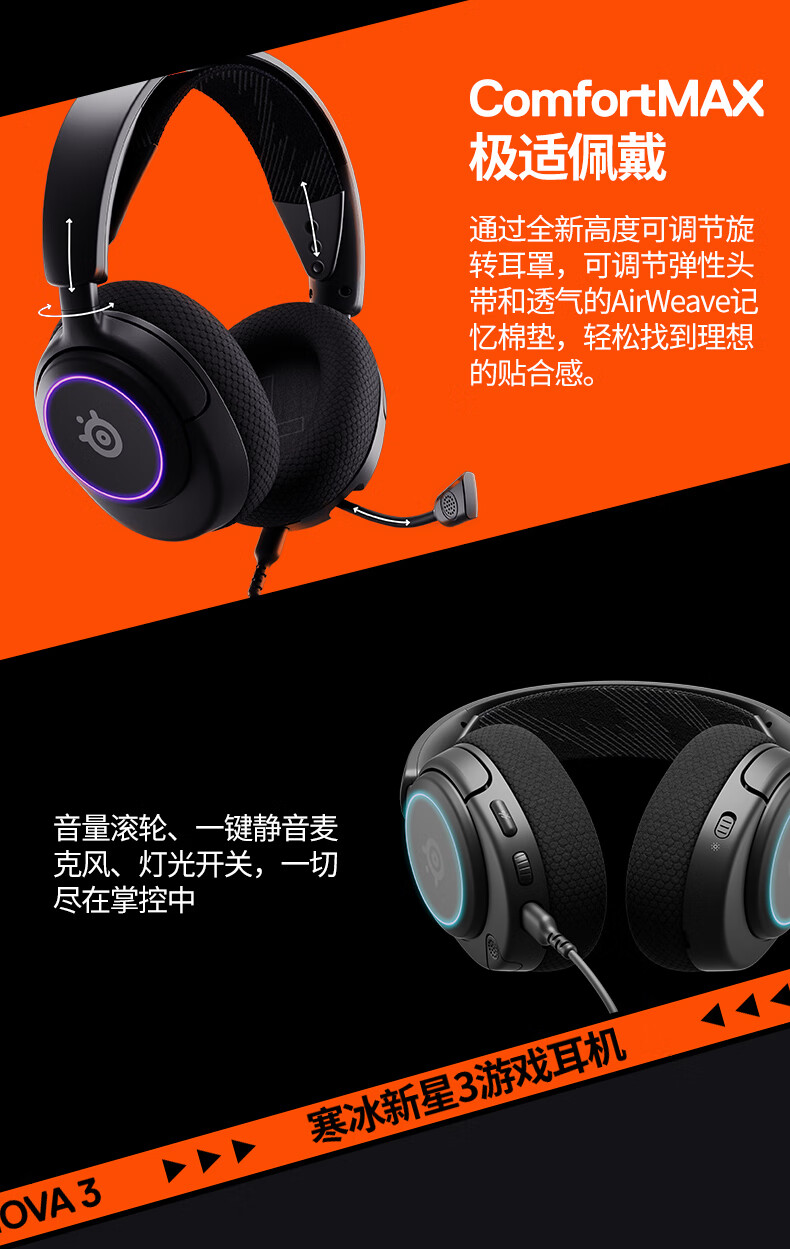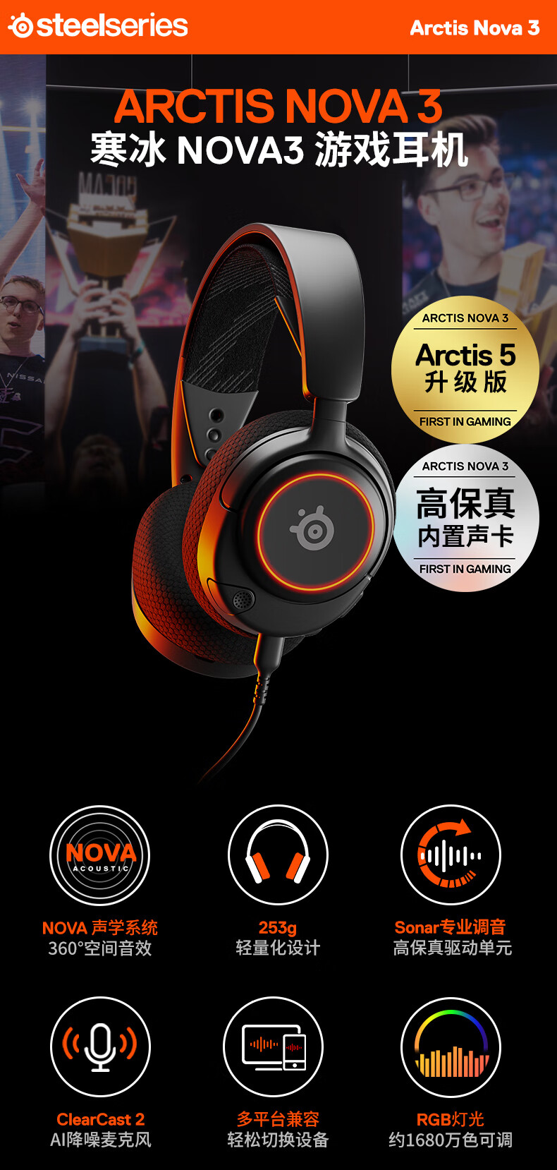 赛睿(SteelSeries)寒冰Nova 3电竞头戴式有线游戏耳机耳麦寒冰5升级版电脑 LOL吃鸡CS 降噪麦 适配三角洲行动