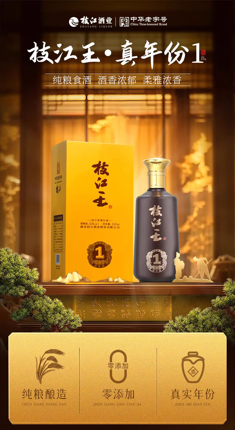 枝江真年份1年 纯粮食浓香柔雅白酒礼盒 中华老字号 国家地理标志产品 52%vol 500mL 6瓶 整箱装