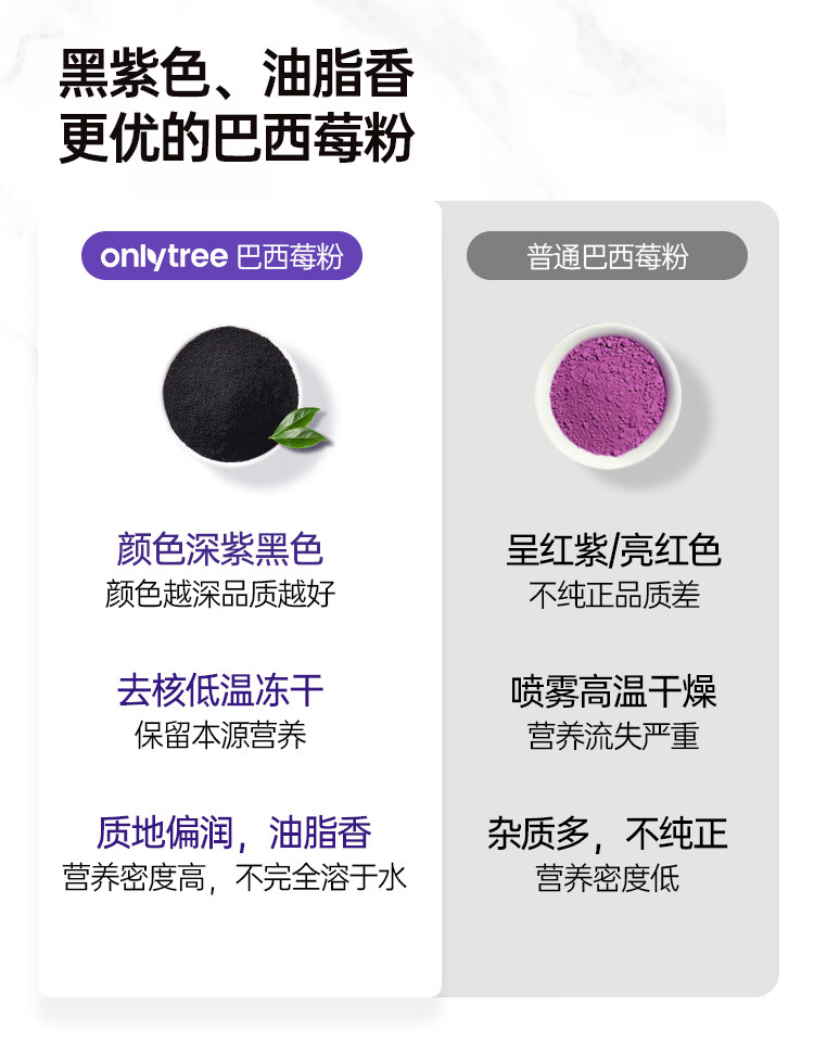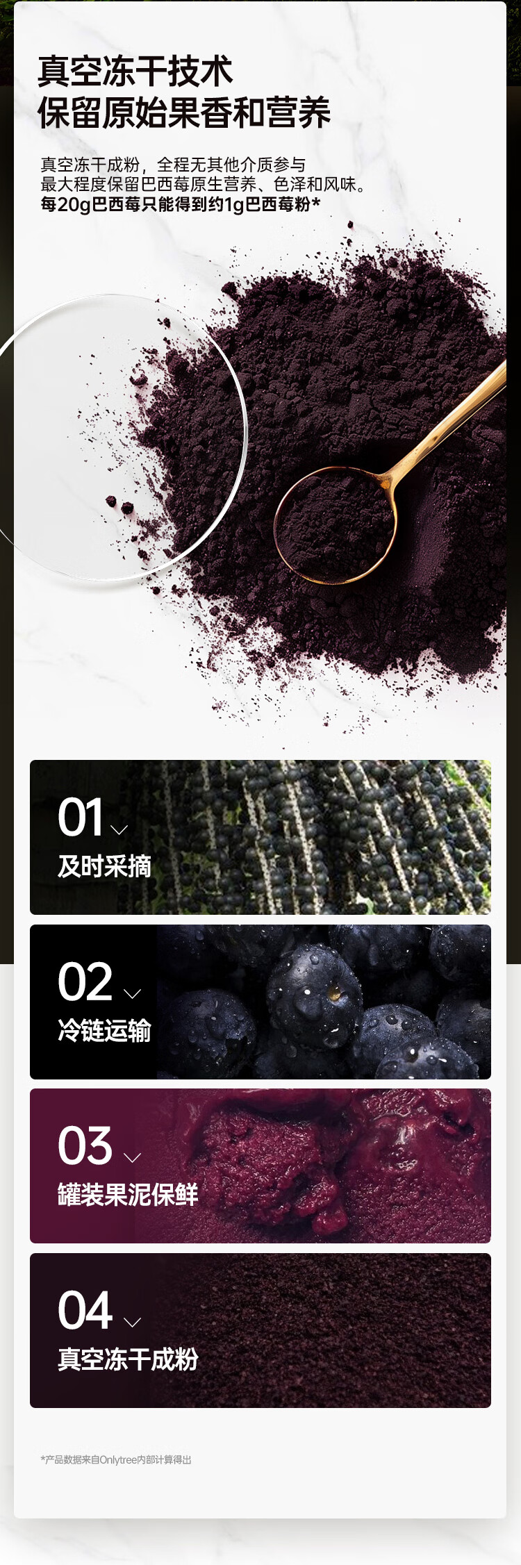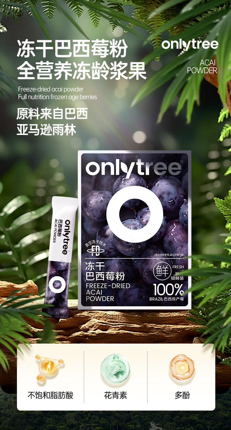 ONLYTREE冻干纯巴西莓粉花青素膳食纤维早餐冲饮超级食物代餐粉3.5g*10条