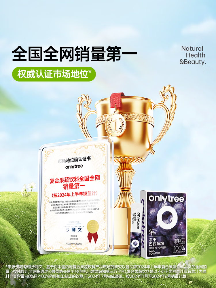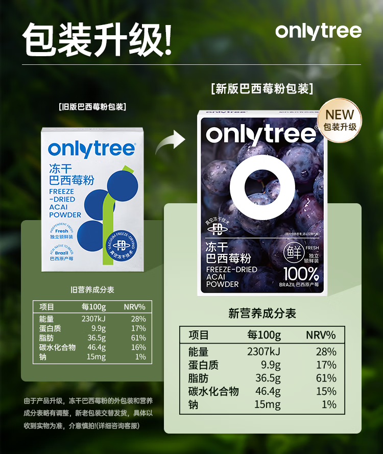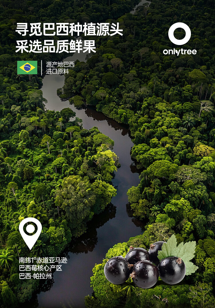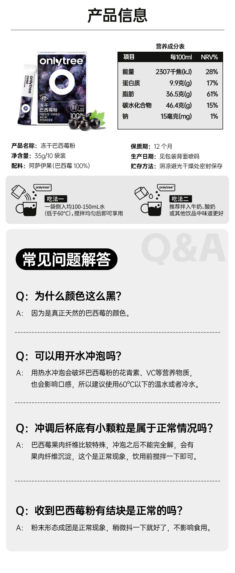ONLYTREE冻干纯巴西莓粉花青素膳食纤维早餐冲饮超级食物代餐粉3.5g*10条