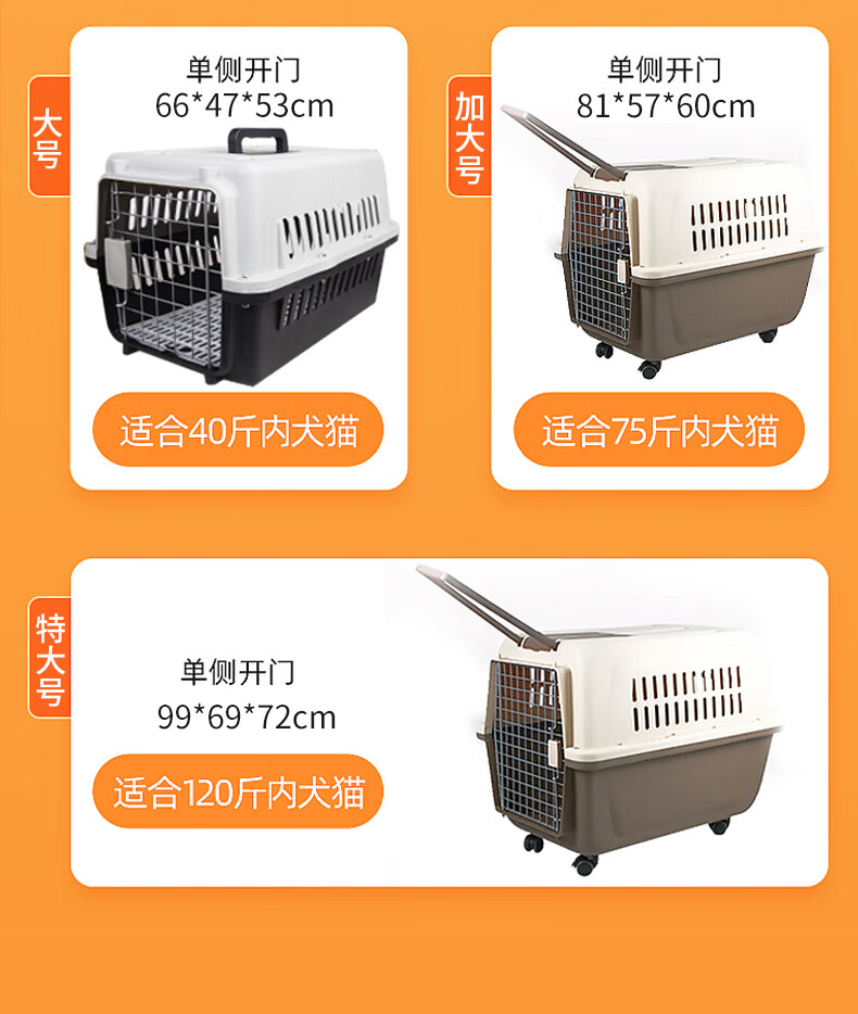 波奇多 宠物航空箱猫狗大容量空运箱 托运航空箱 加大号(建议75斤内宠)