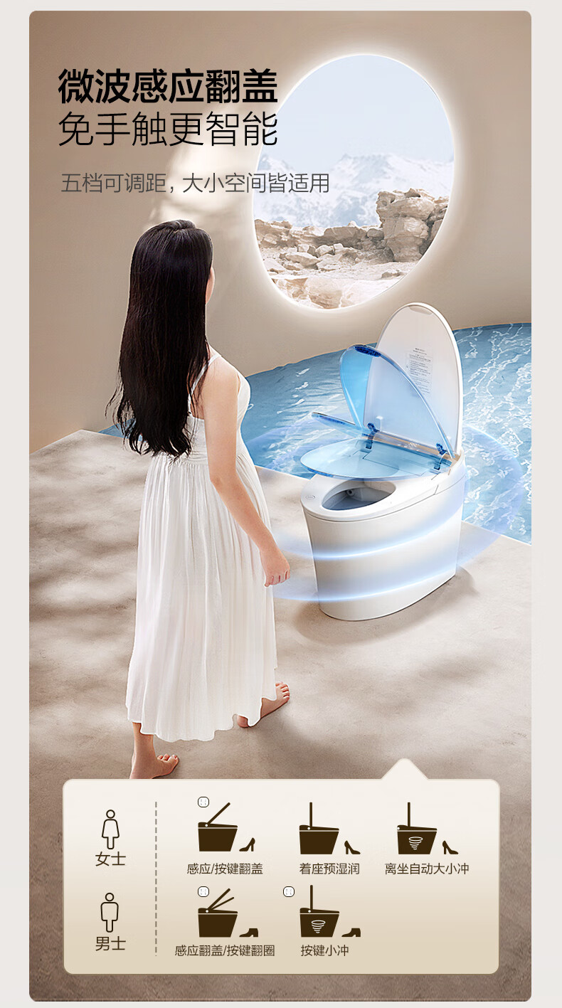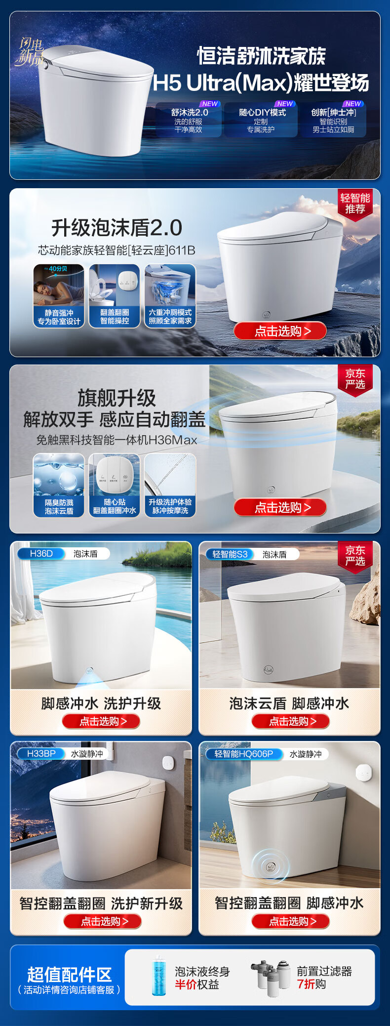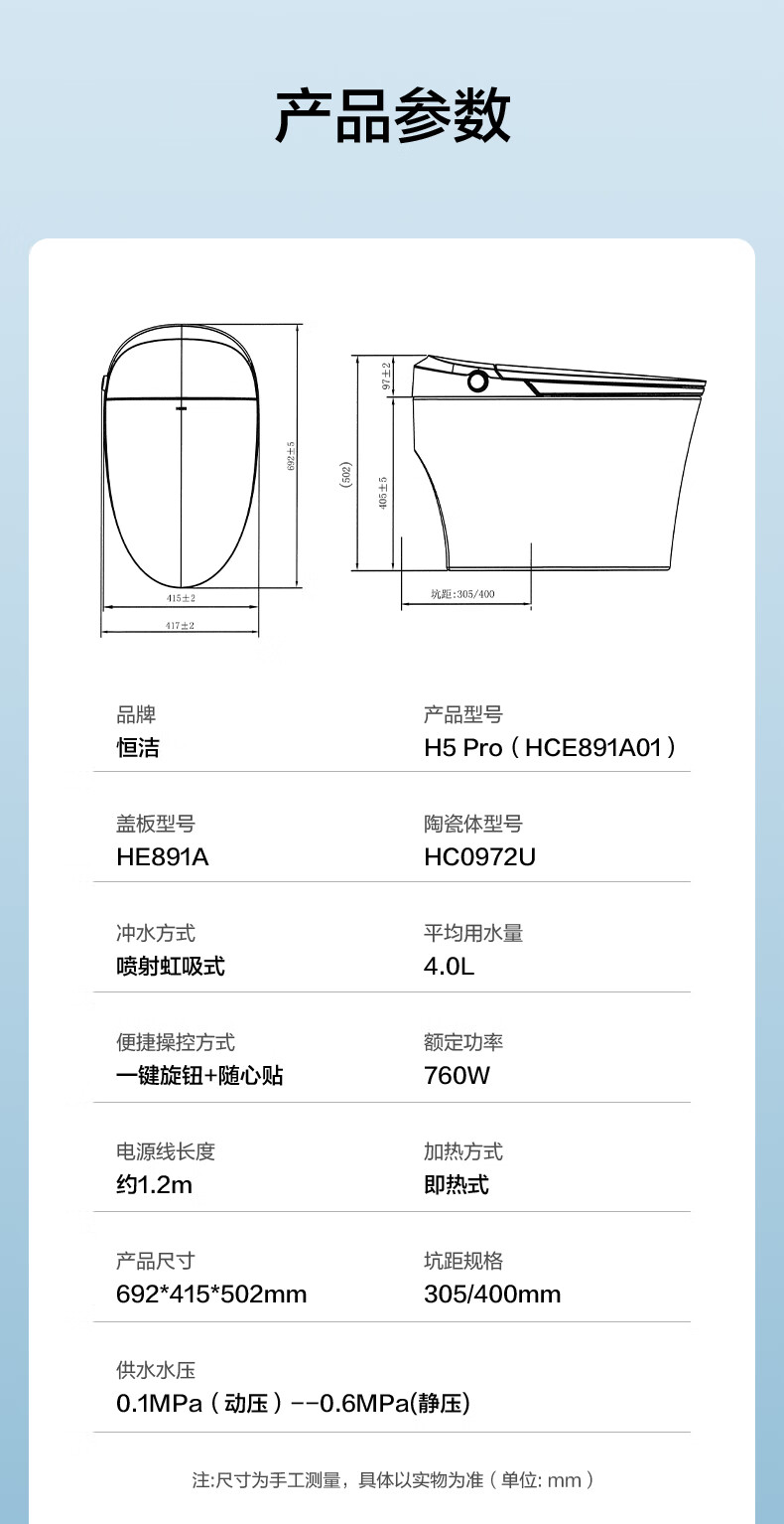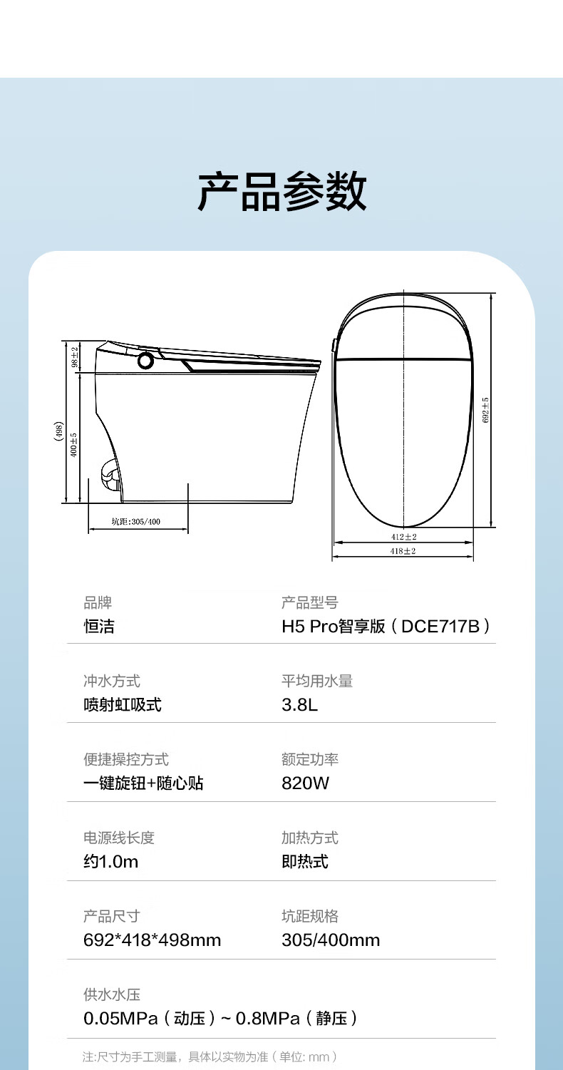 恒洁(HEGII)智能马桶H5Pro 感应自动翻盖泡沫盾无水压限制DCE717B -305