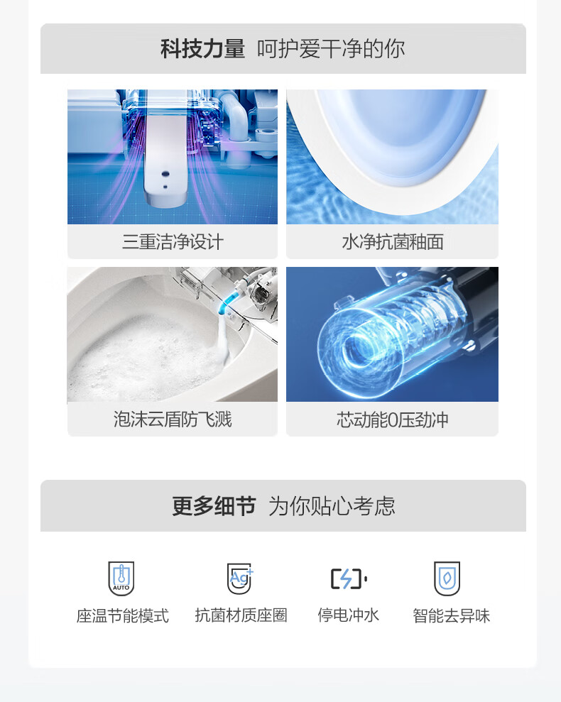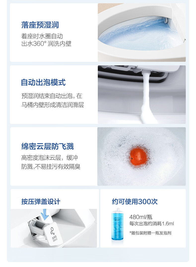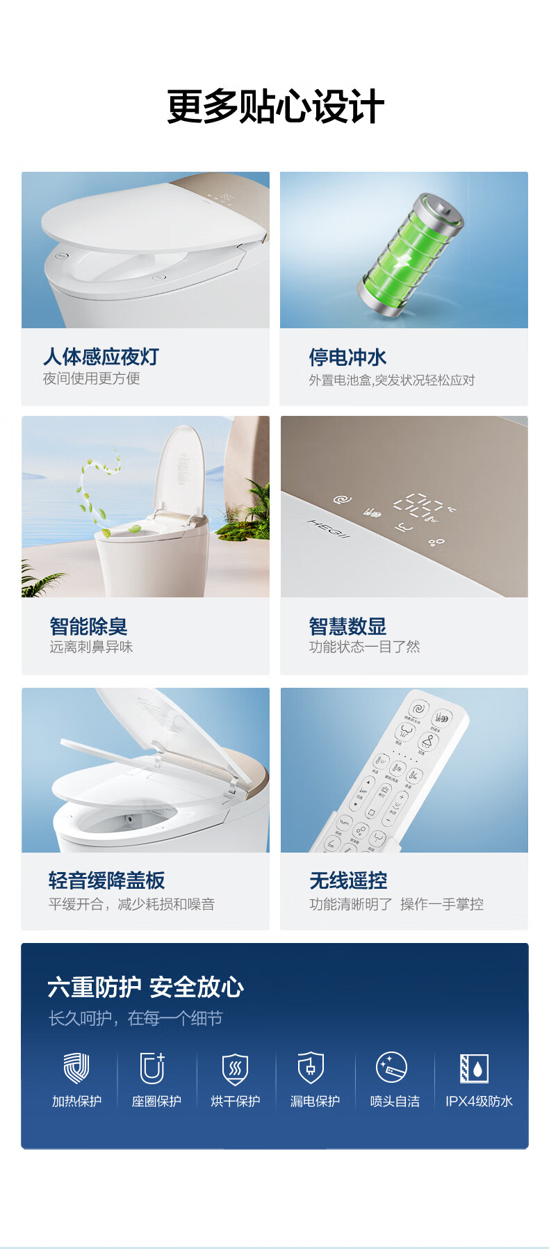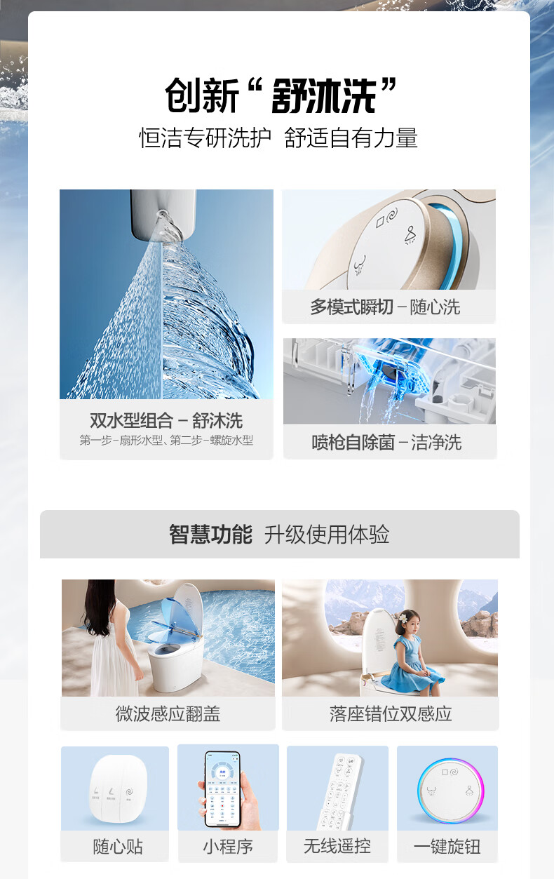 恒洁(HEGII)智能马桶H5Pro 感应自动翻盖泡沫盾无水压限制DCE717B -305