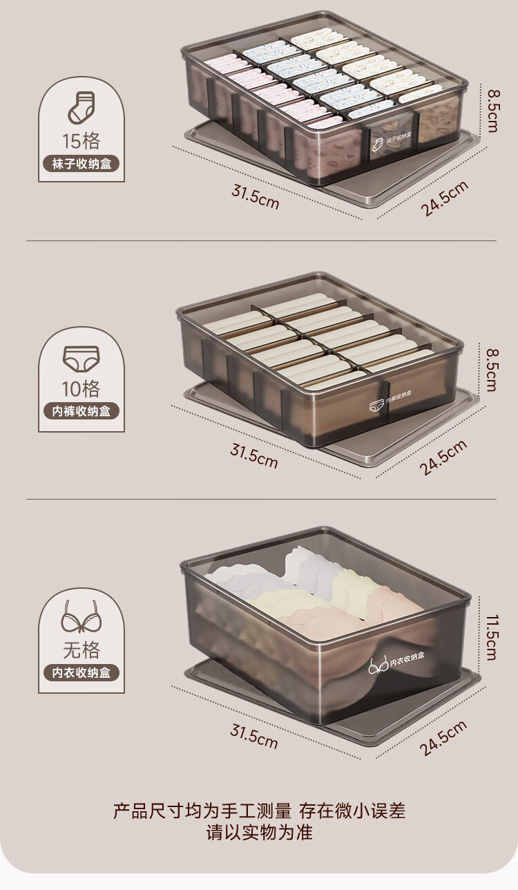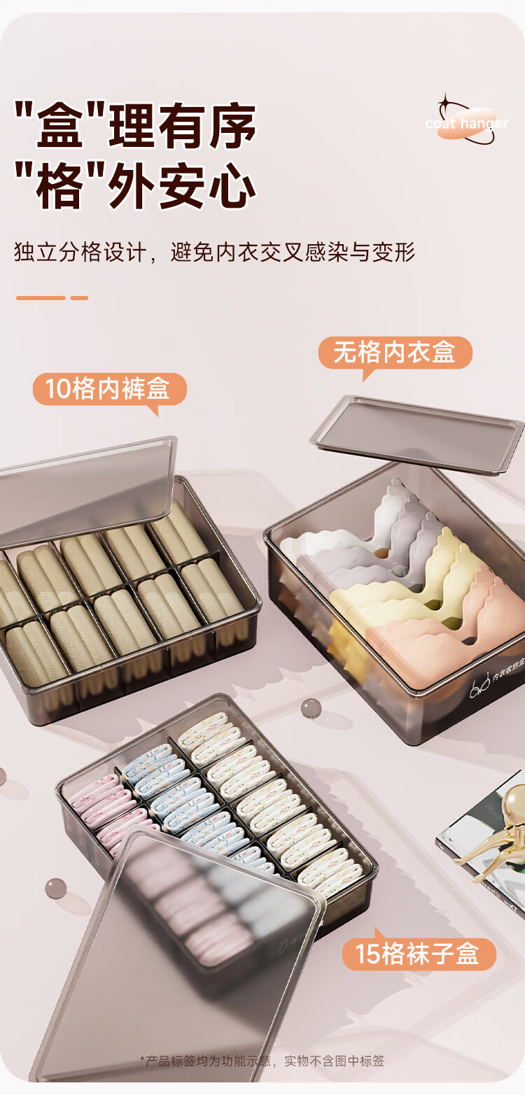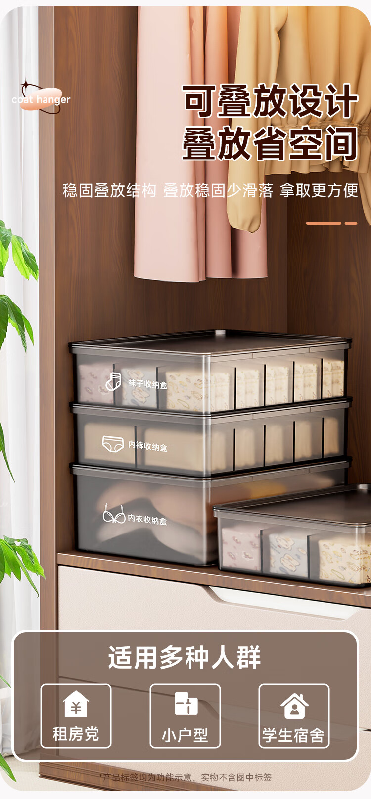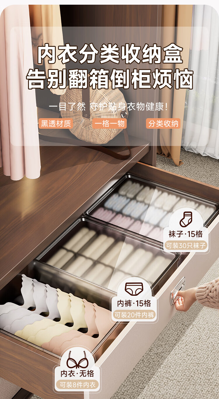佳帮手内衣收纳盒内衣袜子衣服收纳箱分格收纳神器衣柜抽屉整理盒2件套