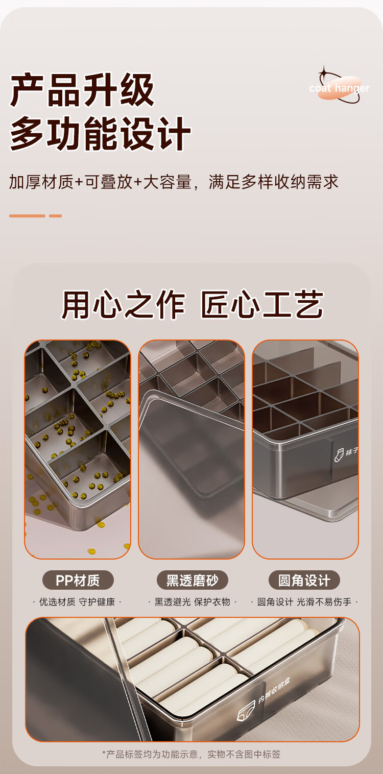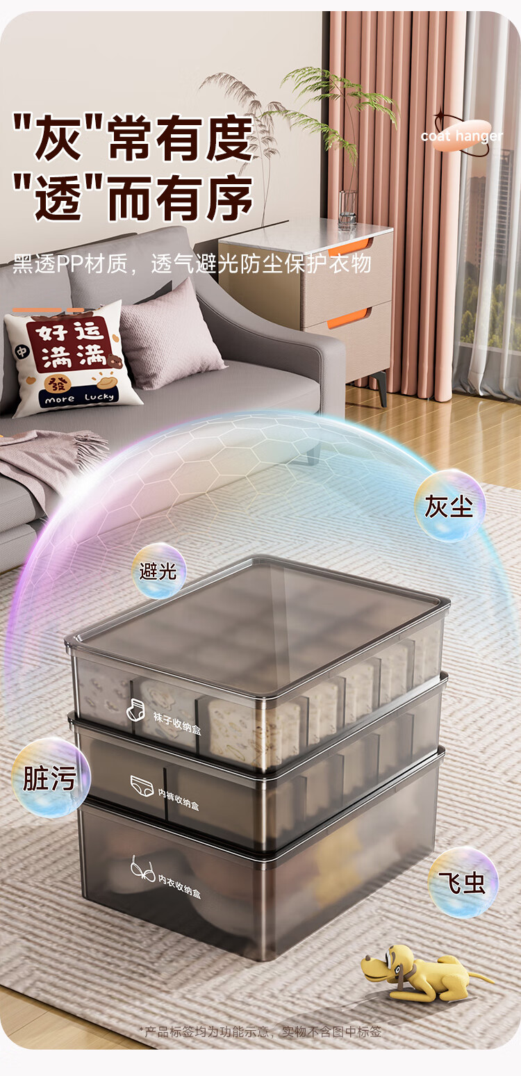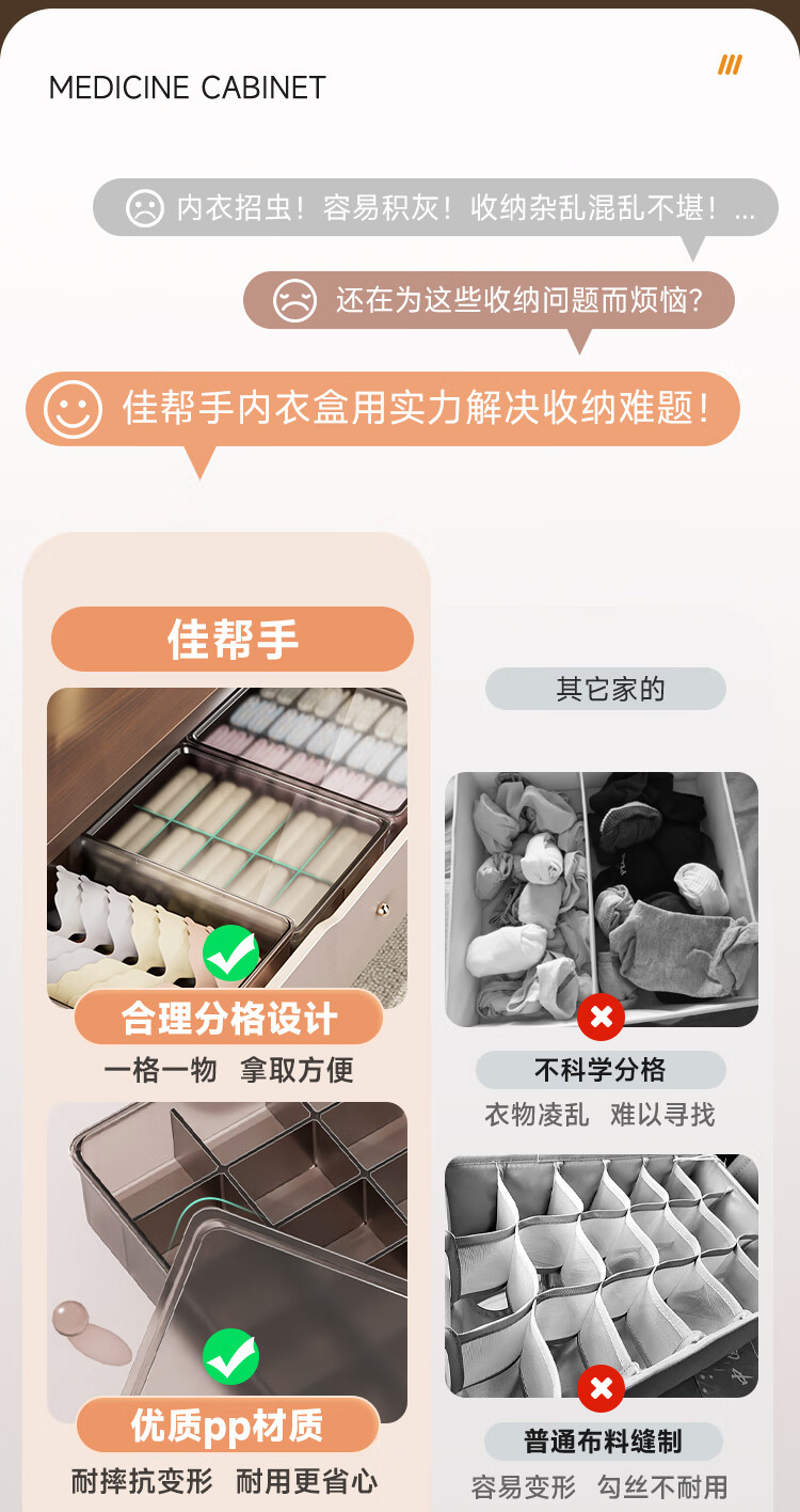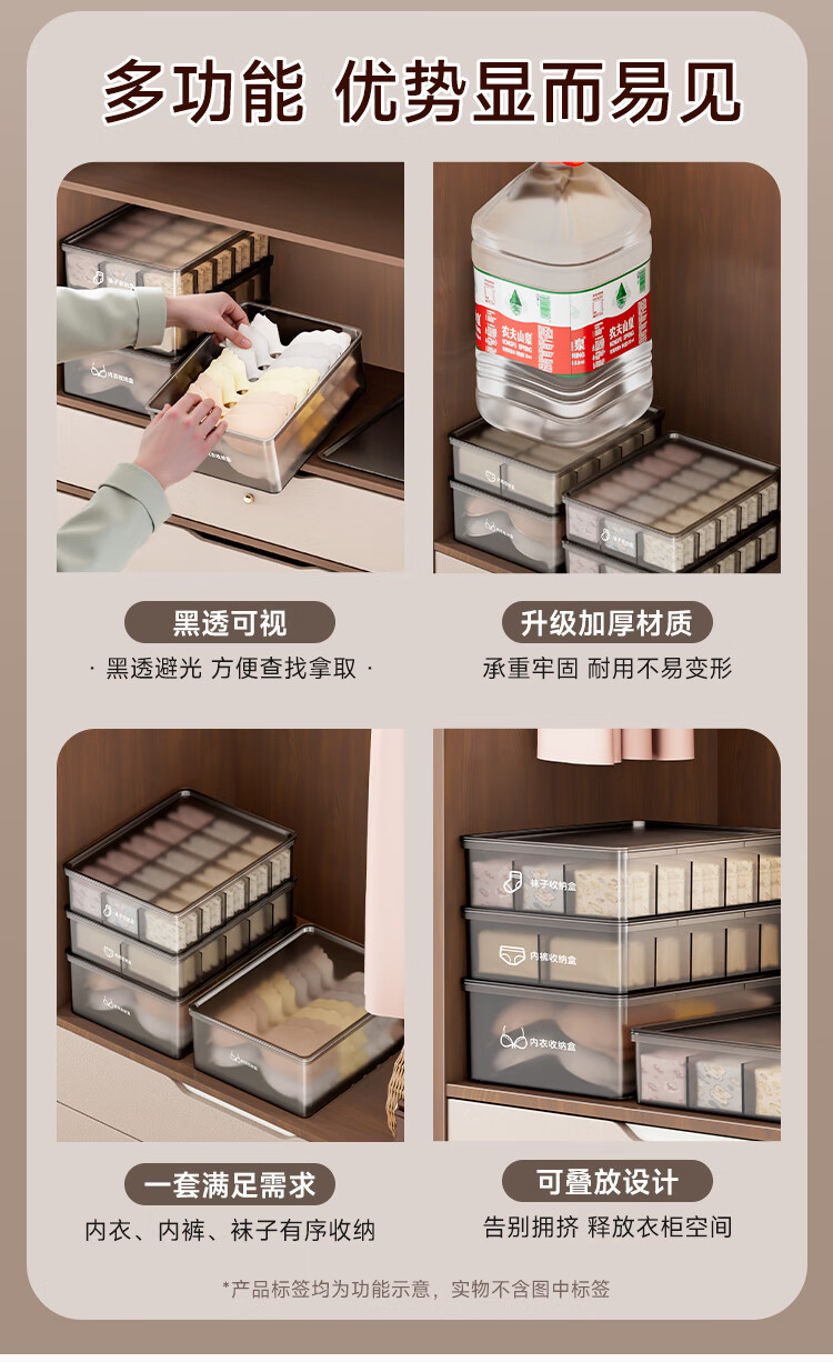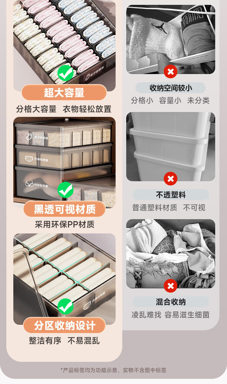 佳帮手内衣收纳盒内衣袜子衣服收纳箱分格收纳神器衣柜抽屉整理盒2件套