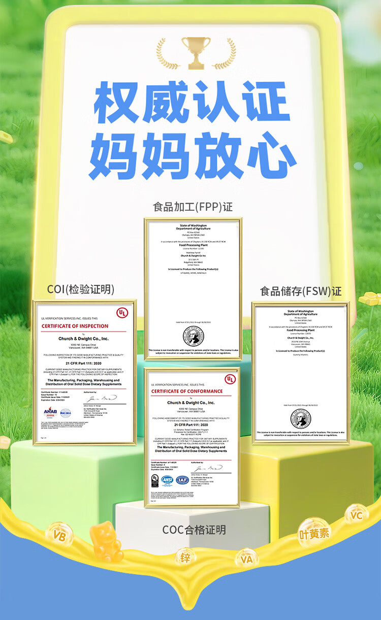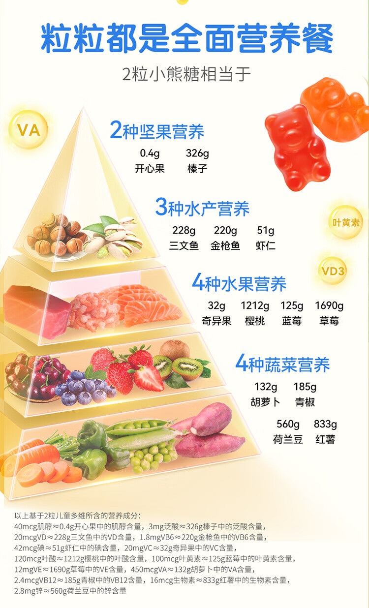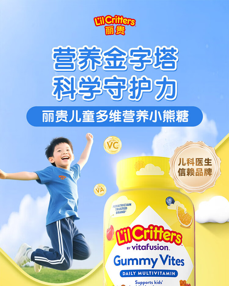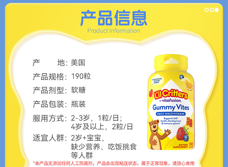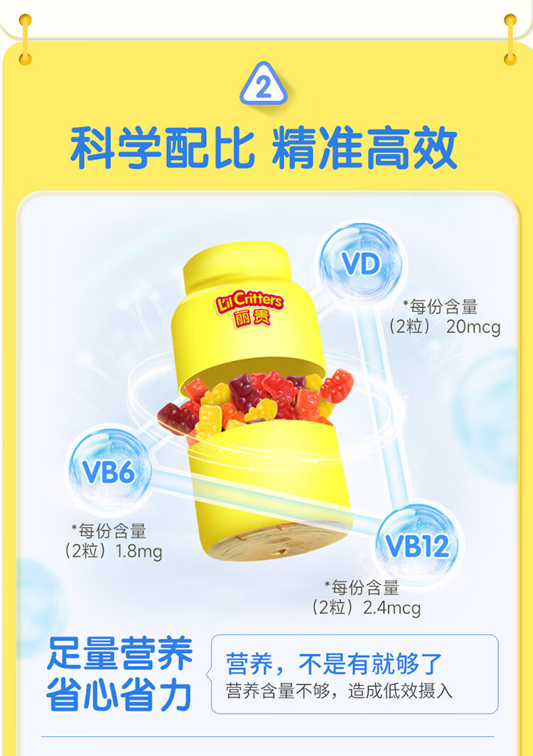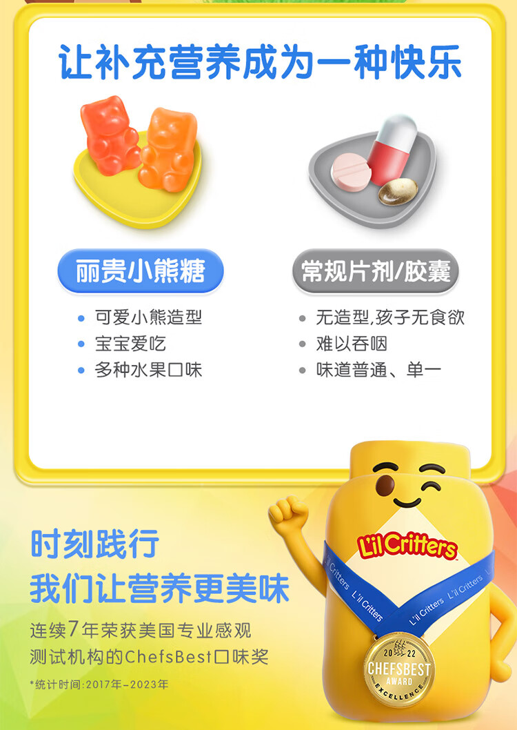 小熊糖丽贵小熊糖Lilcritters儿童叶黄素复合维生素营养软糖 儿童复合维生素190粒*2瓶
