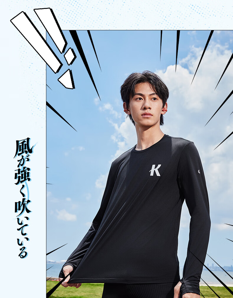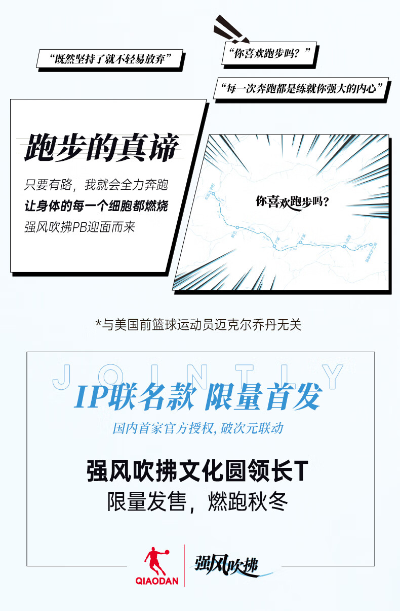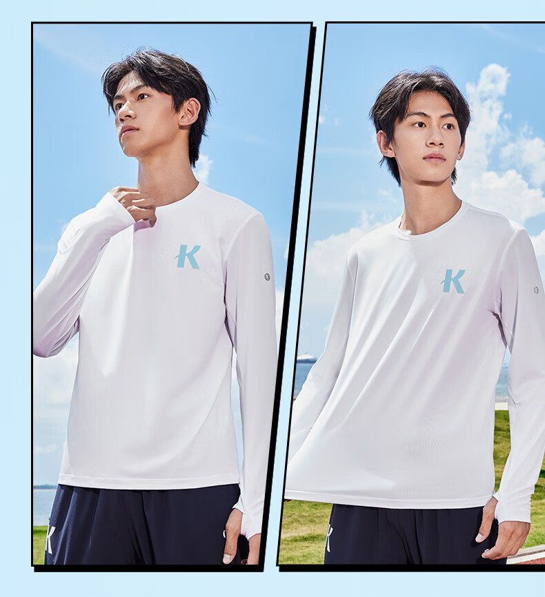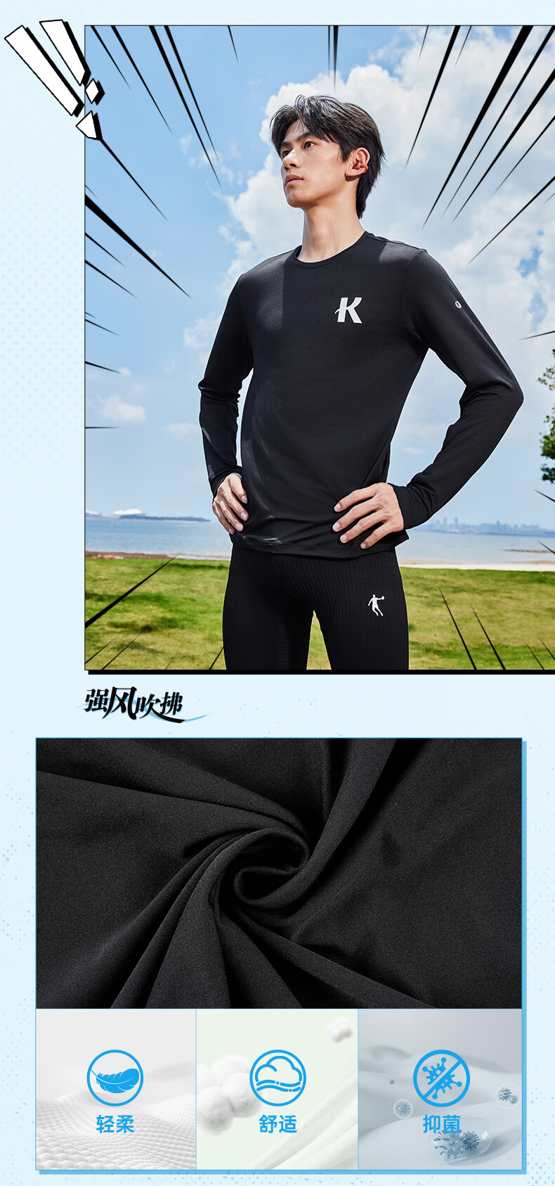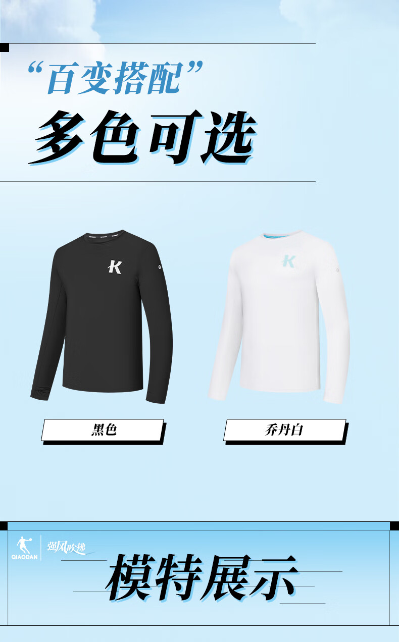 乔丹QIAODAN强风长袖t恤男外套秋冬季透气速干运动跑步马拉松上衣 乔丹白 4XL