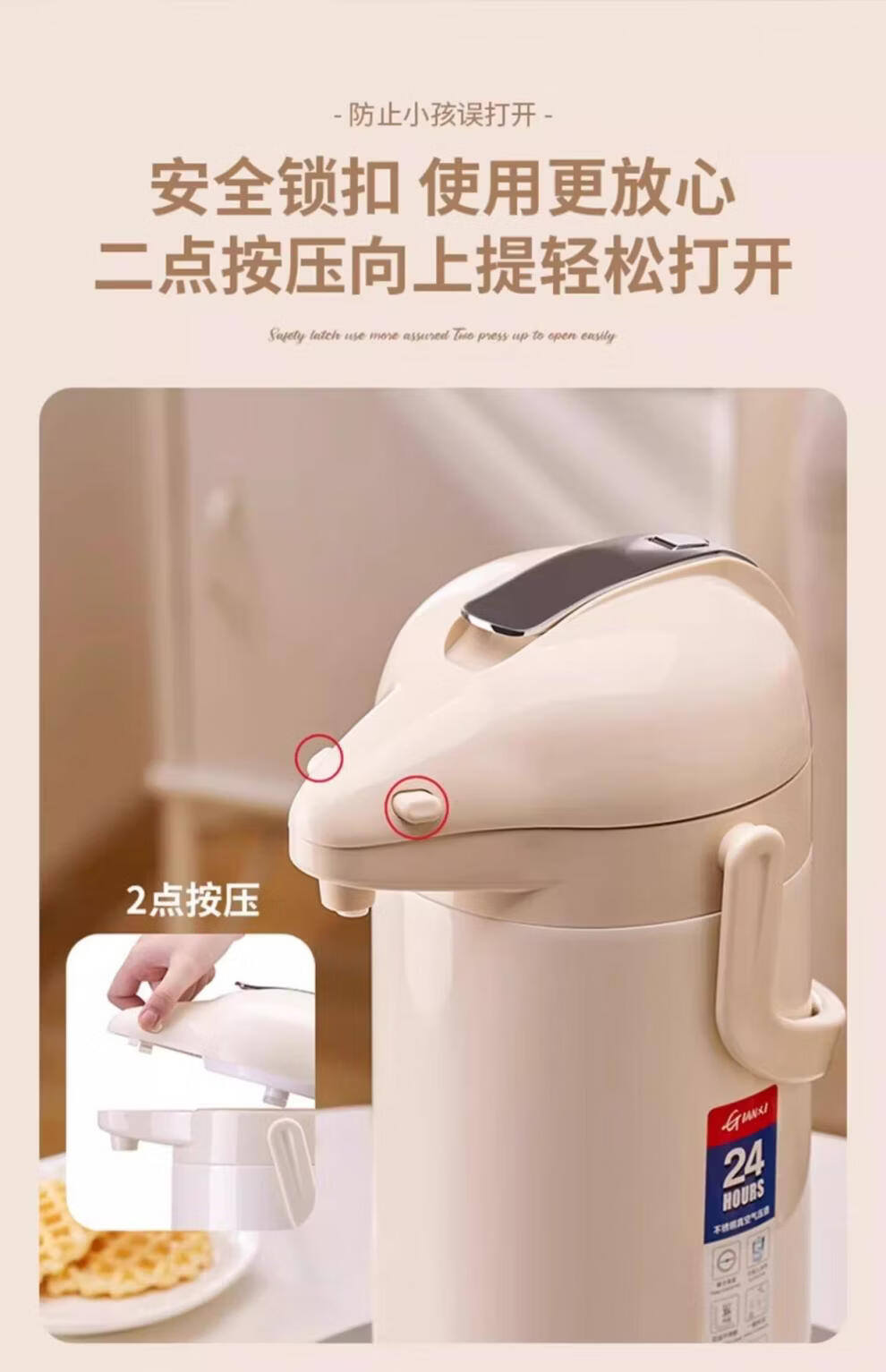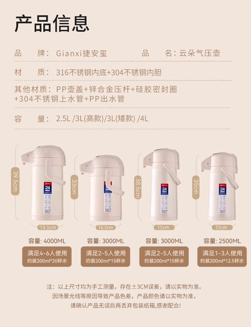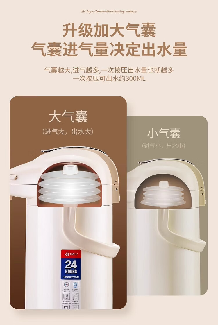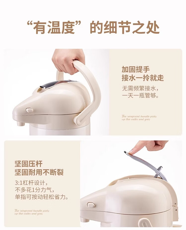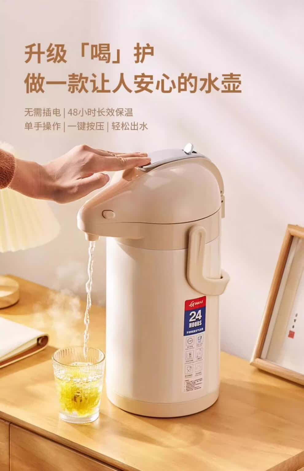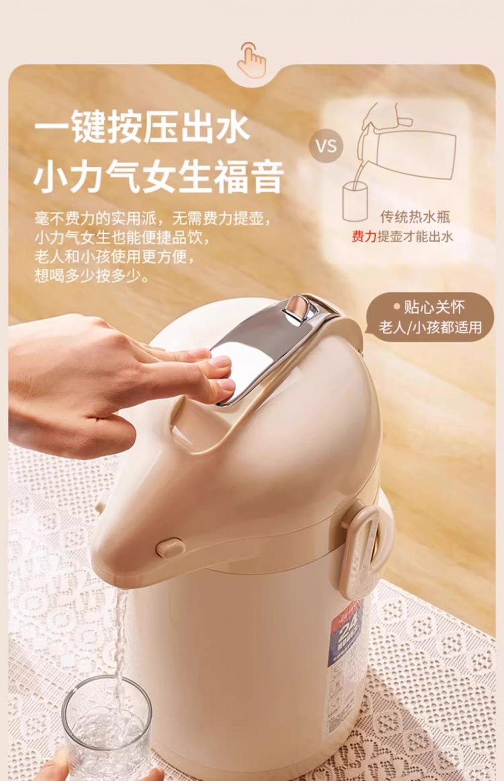 膳魔方日本进口品质新升级家用不锈钢内胆气压式保温壶 大容量可手提按 紫金色3000ml-高款