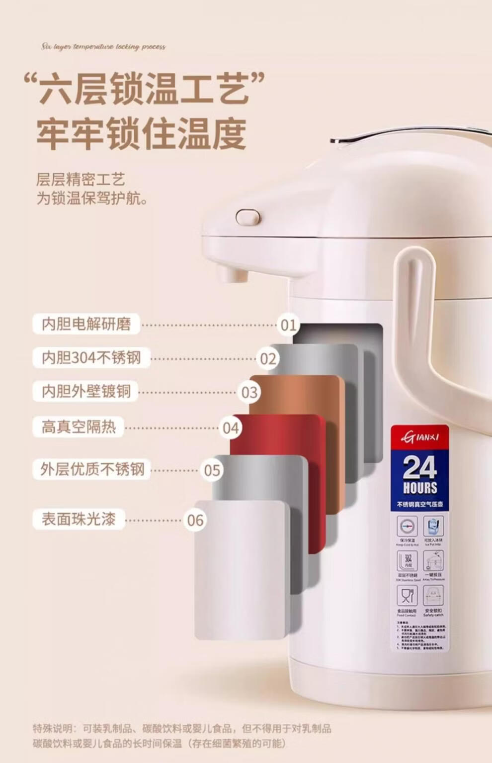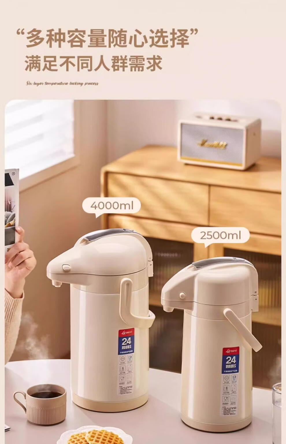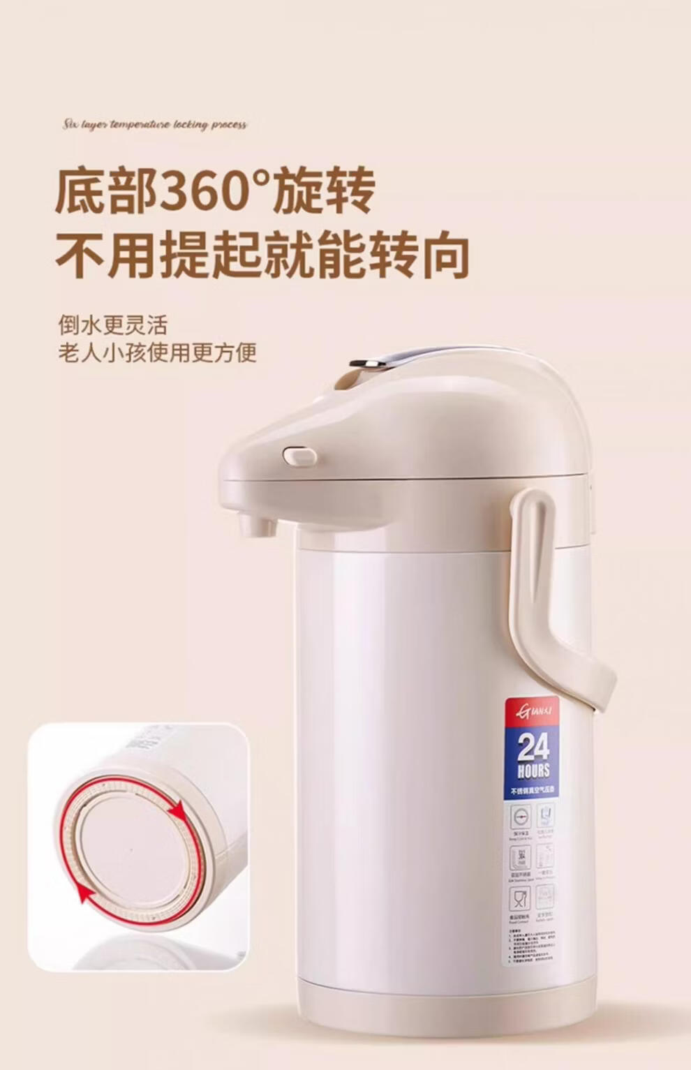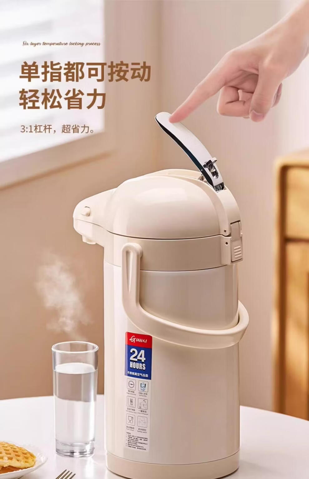 膳魔方日本进口品质新升级家用不锈钢内胆气压式保温壶 大容量可手提按 紫金色3000ml-高款
