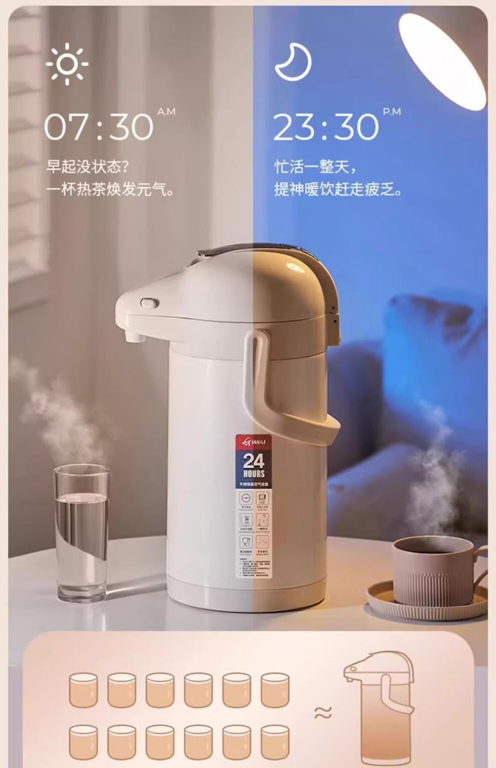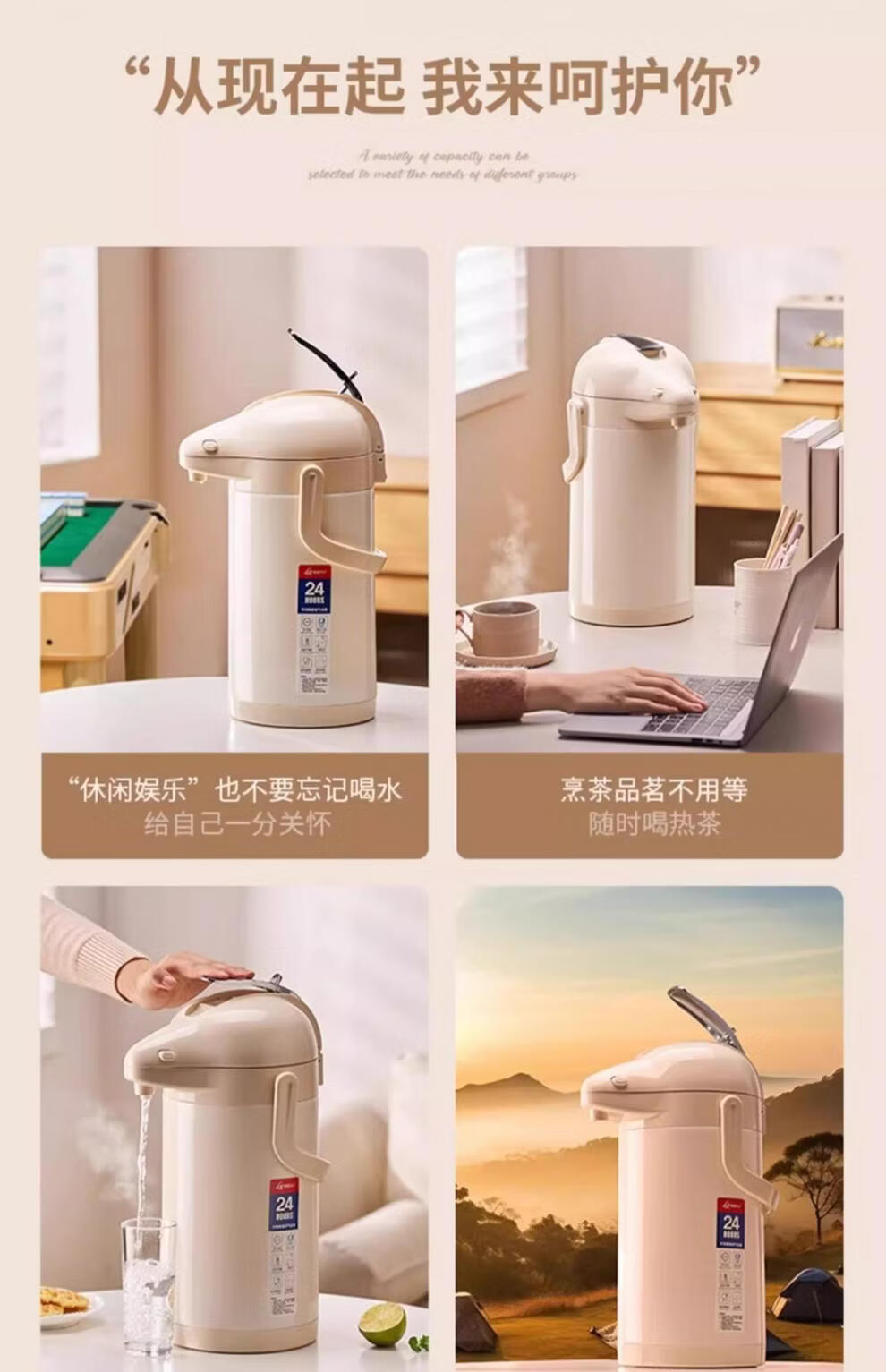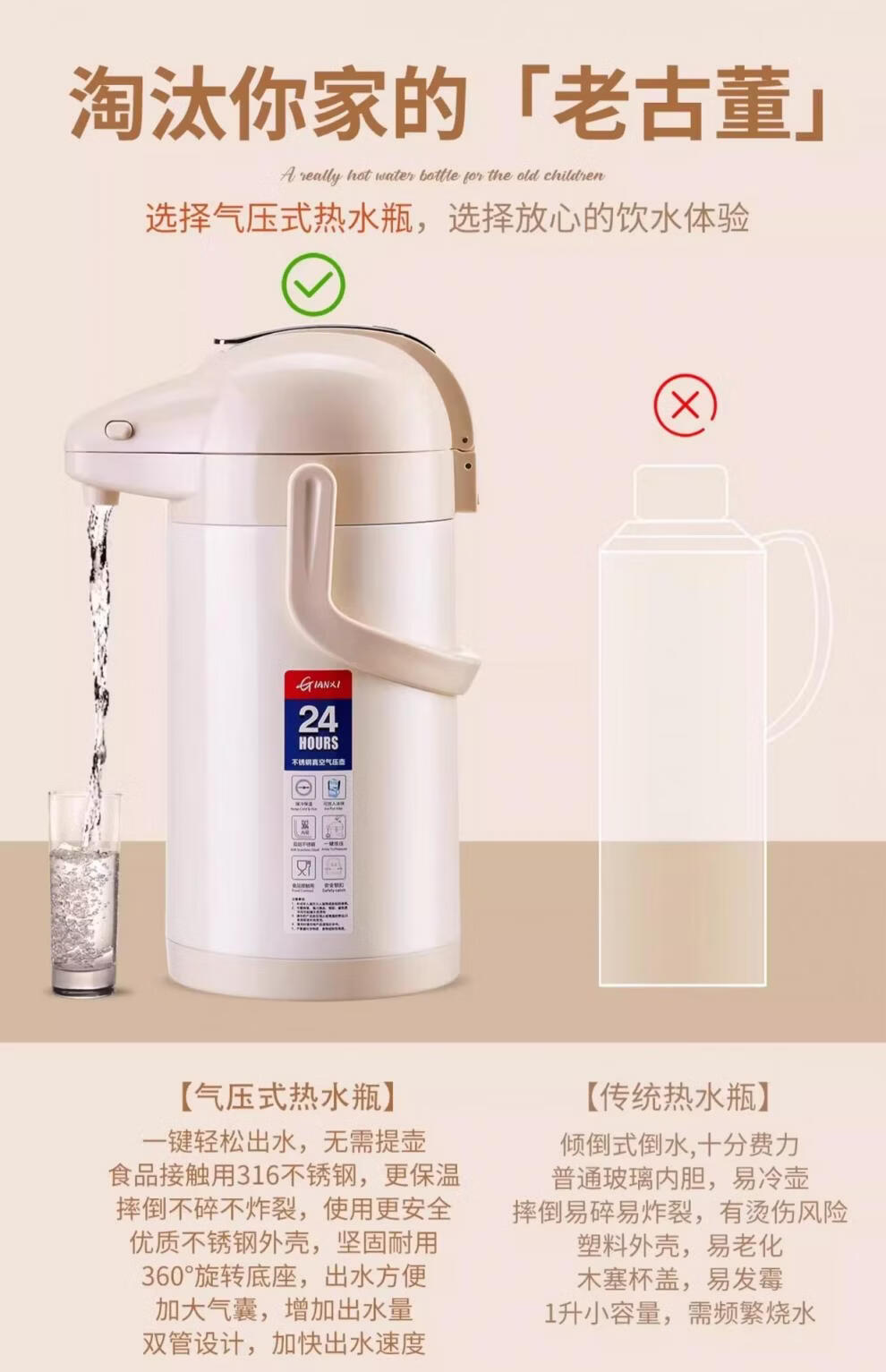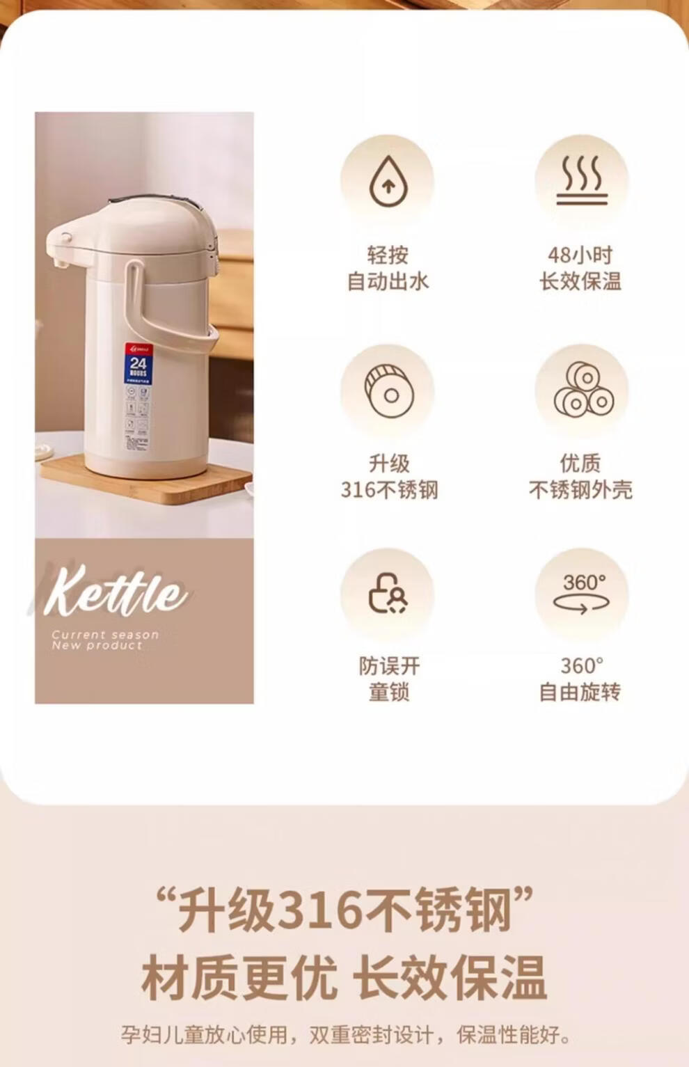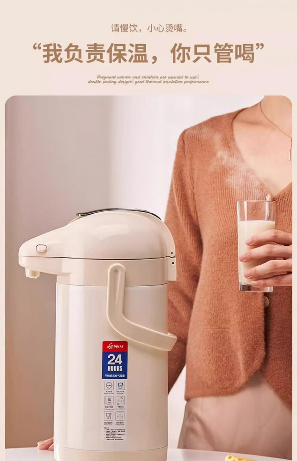 膳魔方日本进口品质新升级家用不锈钢内胆气压式保温壶 大容量可手提按 紫金色3000ml-高款