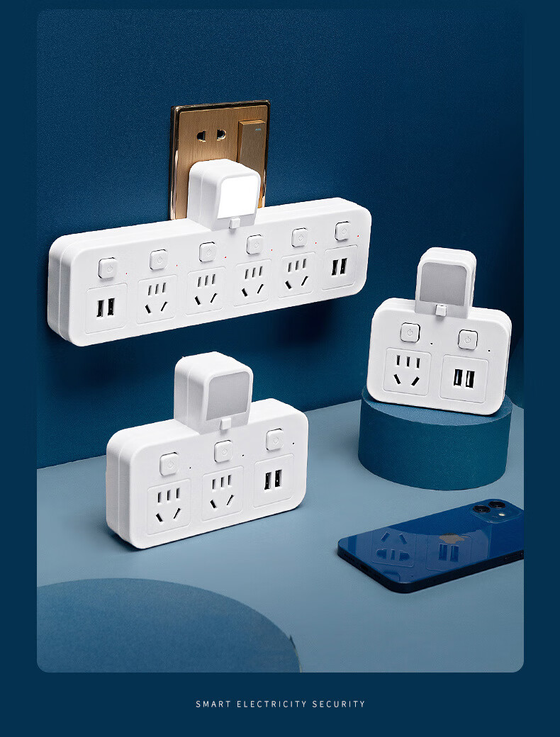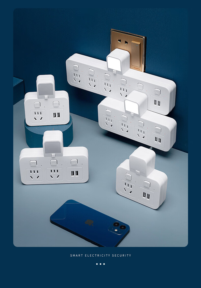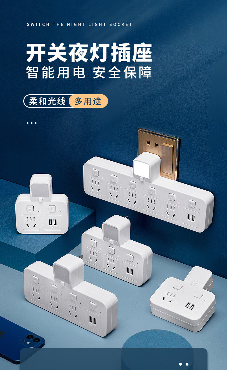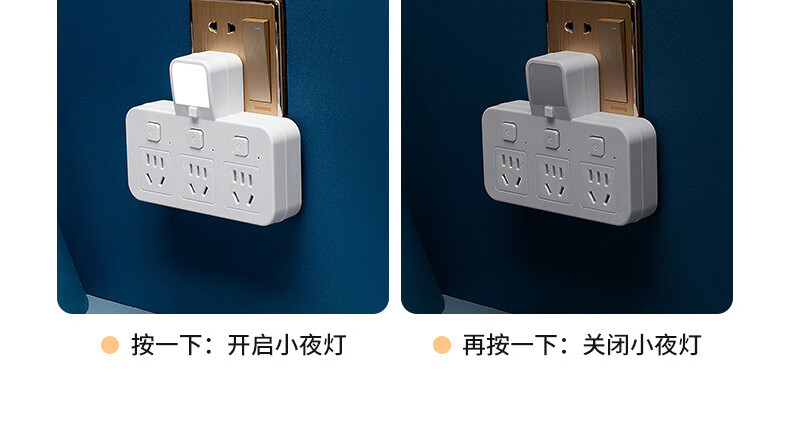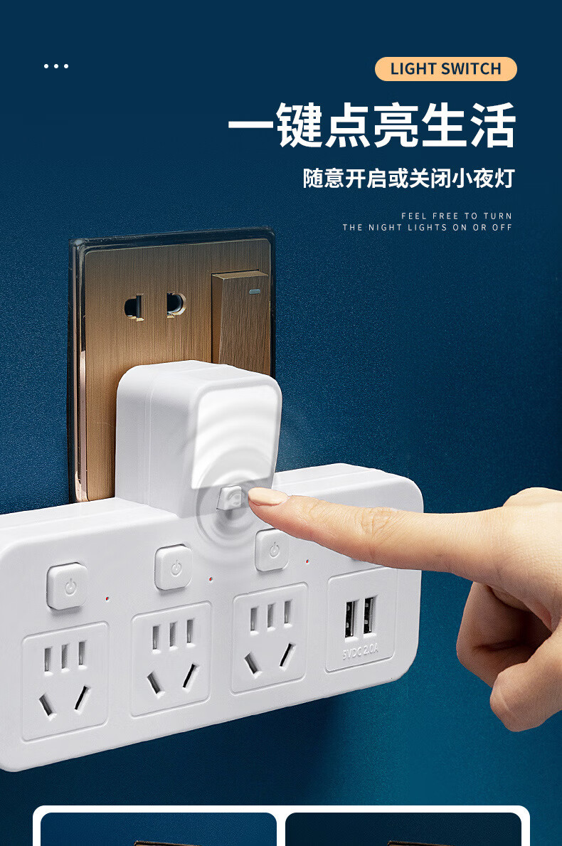 山头林村公牛(BULL)同款家用办公多功能无线转换器插座带USB夜灯多孔位 一转二[带独立开关]