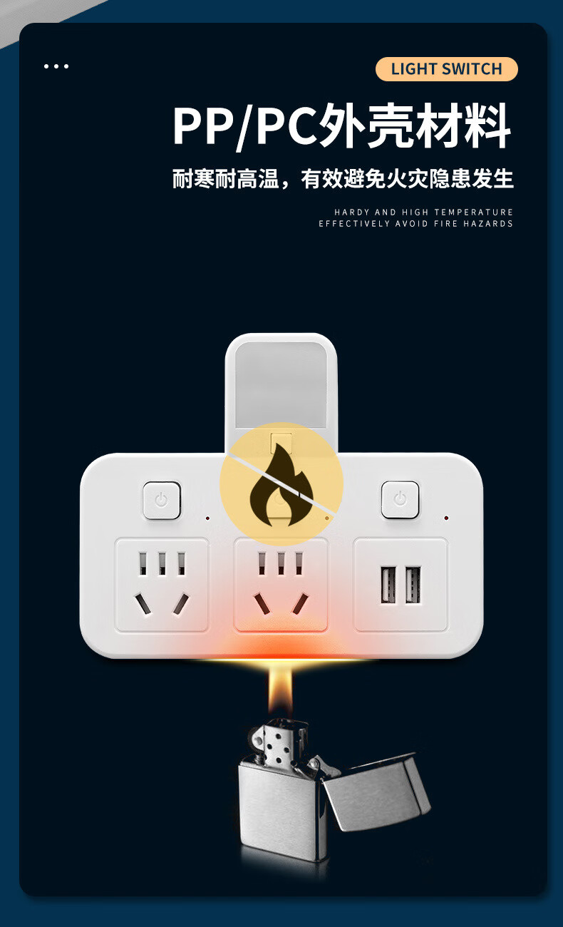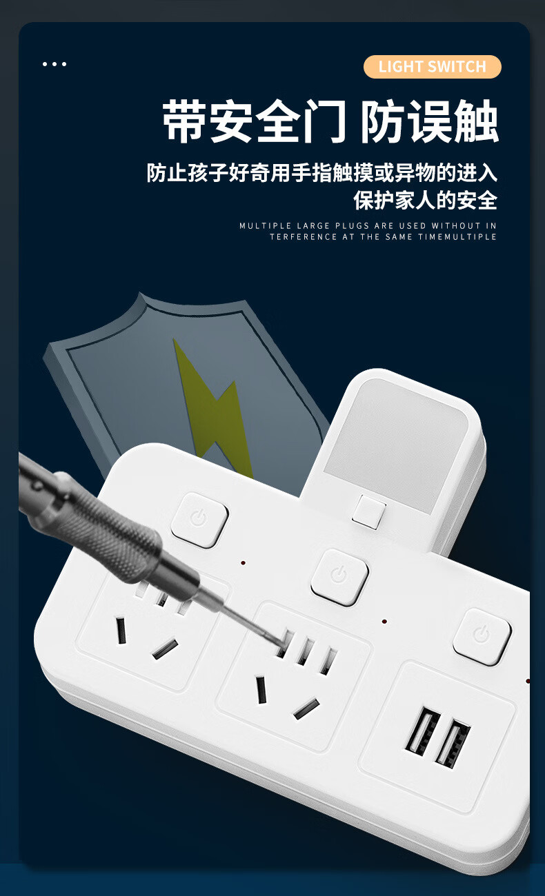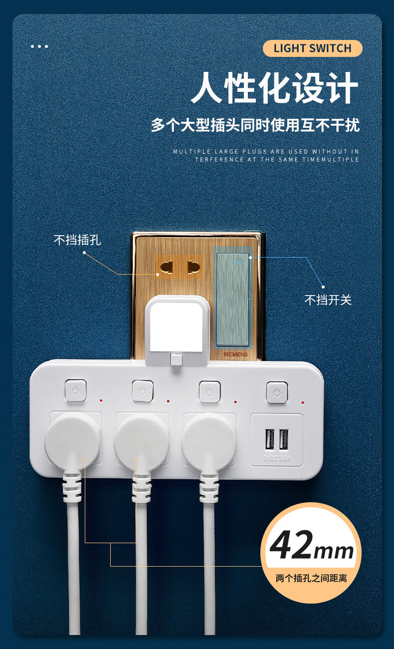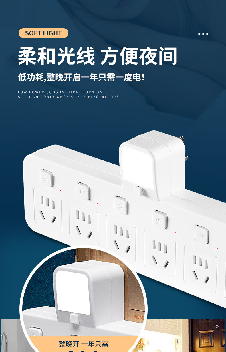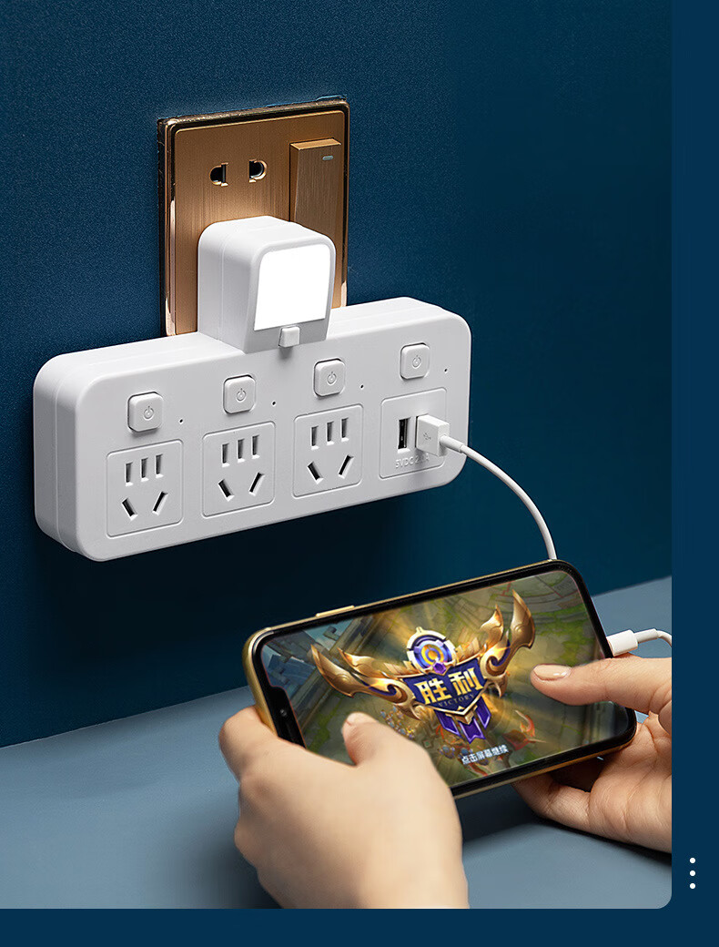 山头林村公牛(BULL)同款家用办公多功能无线转换器插座带USB夜灯多孔位 一转二[带独立开关]