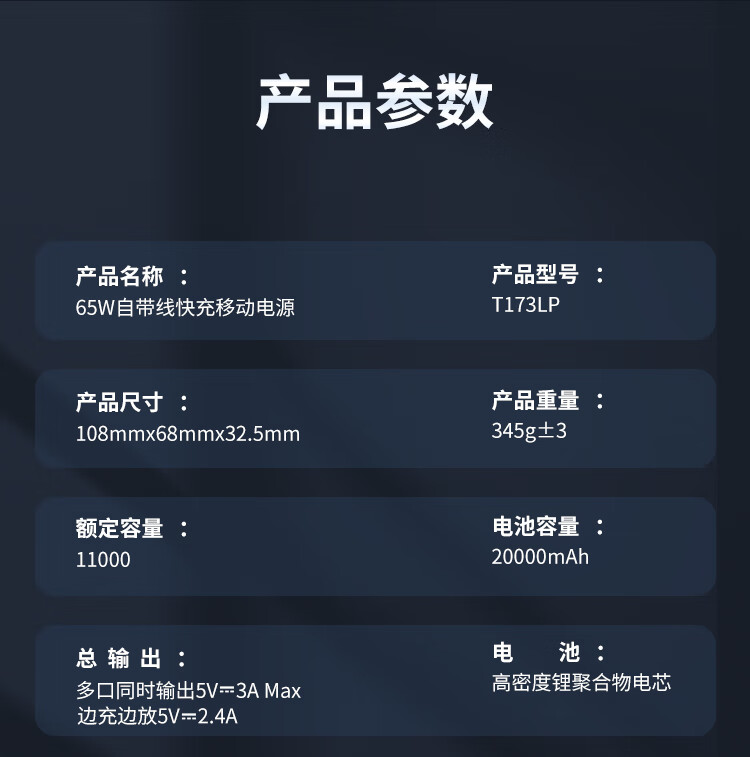 京东京造35W自带线充电宝20000毫安3c认证可上飞机京东自营移动电源适用户外苹果17小米17华为荣耀冰川蓝