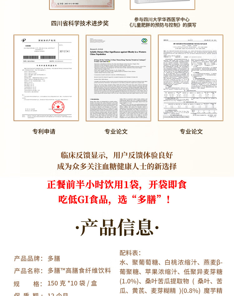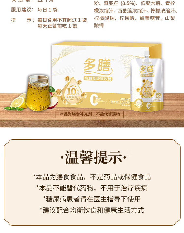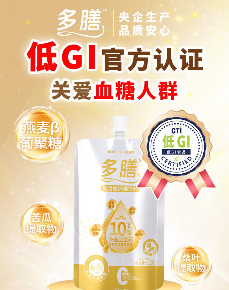 多膳好口感代餐膳食 低GI食品 血糖健康 液态凝胶 益生元 药食同源 低GI膳食代餐【10袋】*1盒装