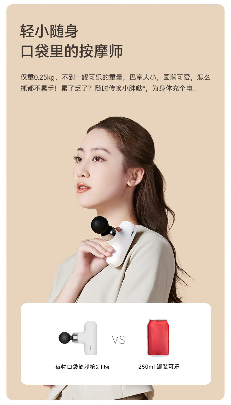云麦每物 2lite按摩筋膜枪肌肉按摩放松迷你按摩抢健身肌肉筋膜器便携 每物口袋筋膜枪 2 lite-白色-时尚版