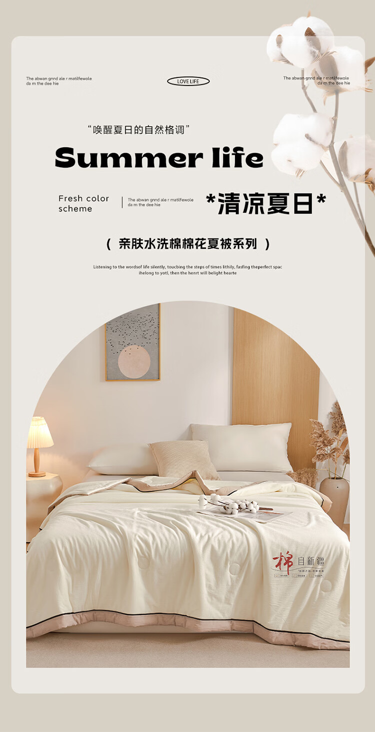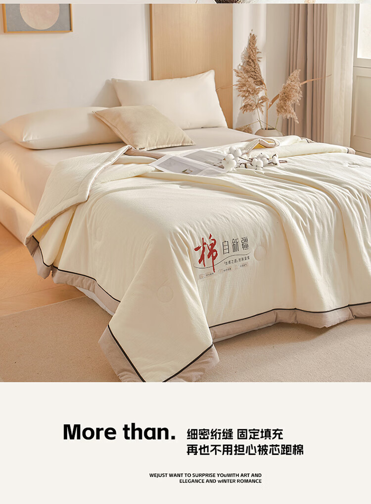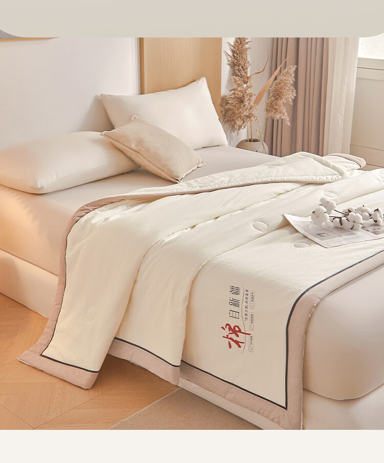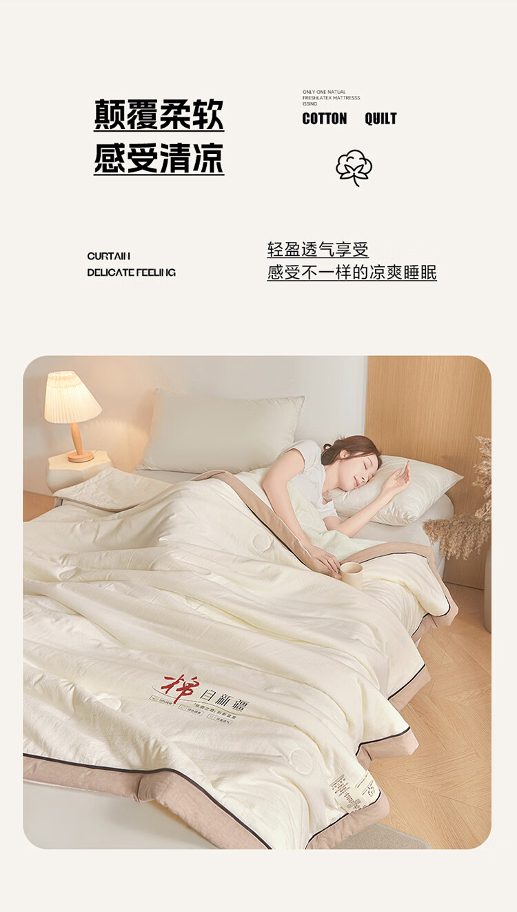 无印良品新疆棉花空调被200x230cm夏凉被可机洗裸睡薄款被子家用双人夏被 棉朵-米白【100%新疆棉花 吸湿透气】 200cm*230cm 单夏被
