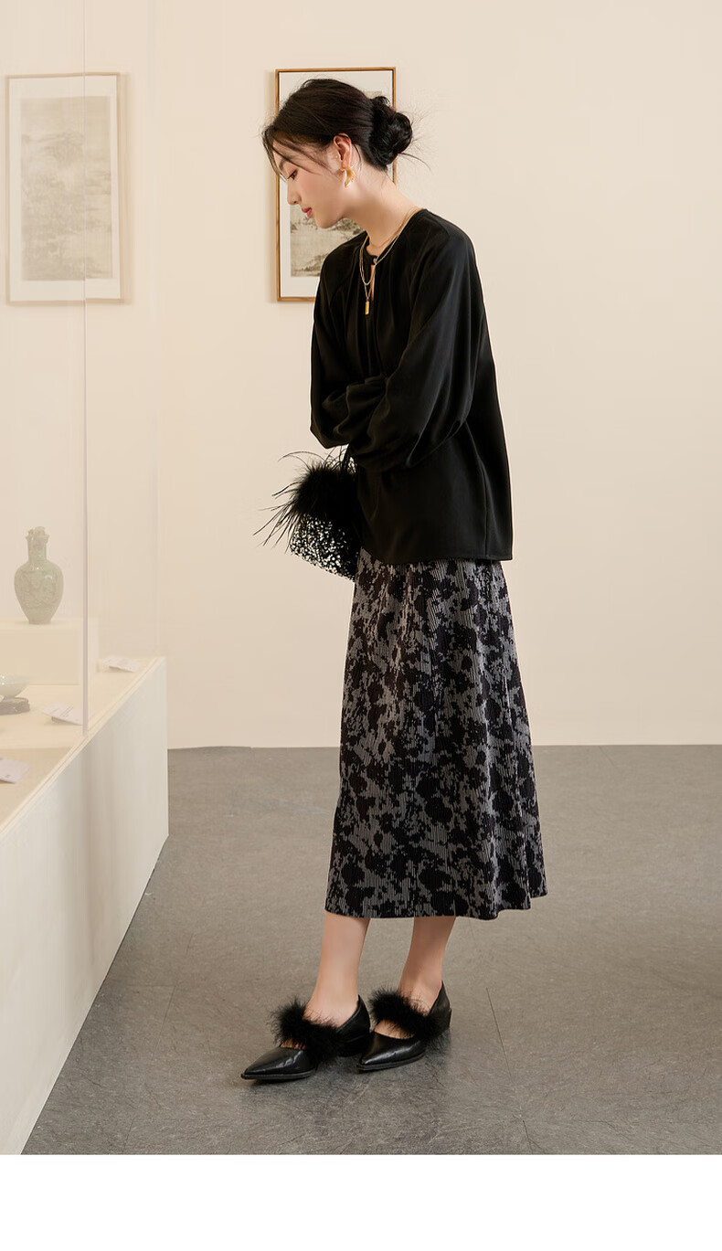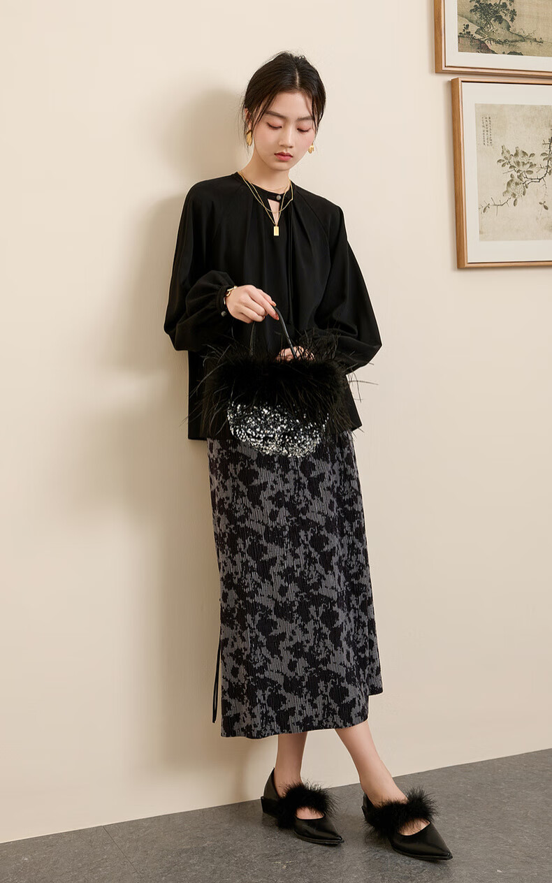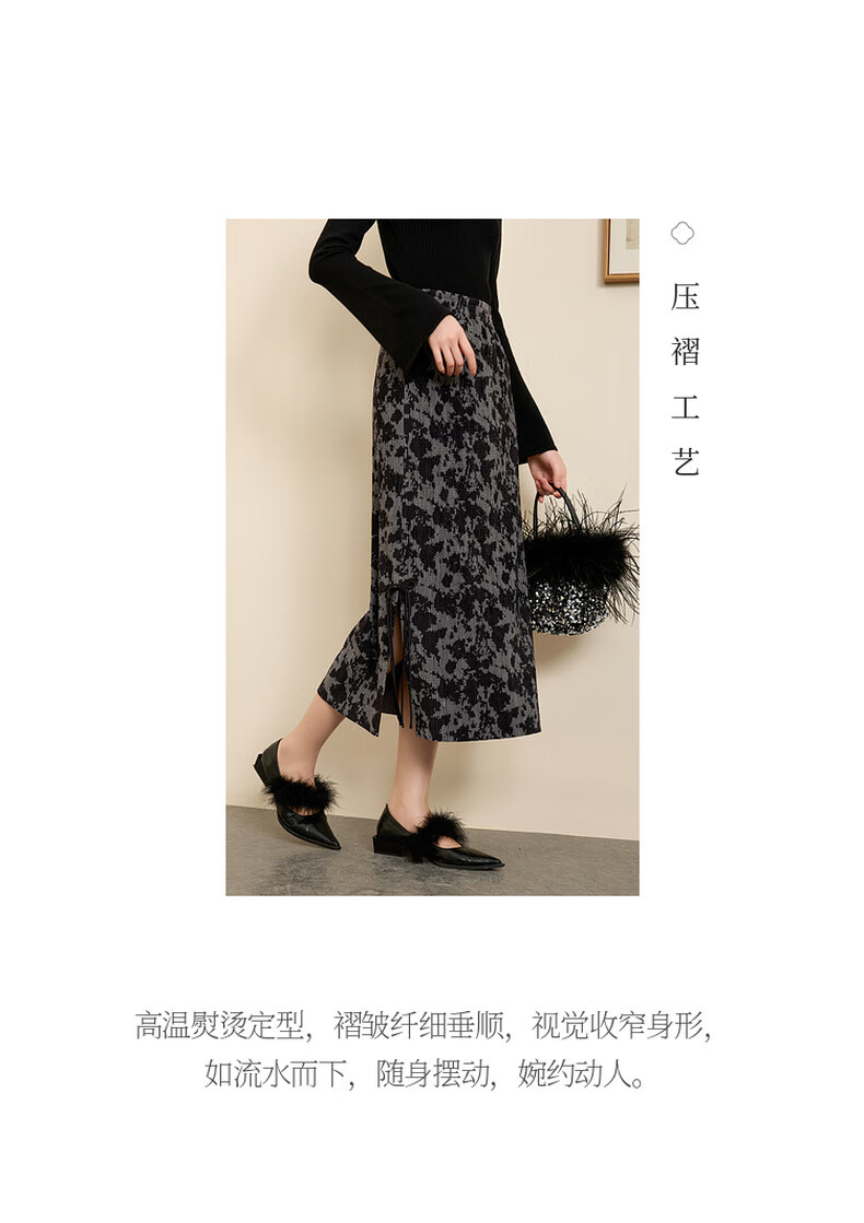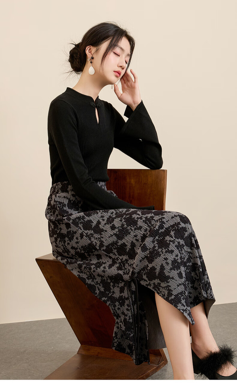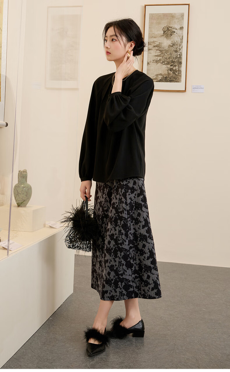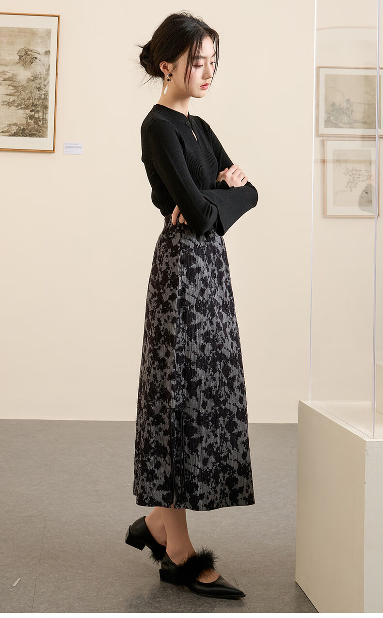 三彩【晕墨流年】2025冬季新款新中式半身裙高腰直筒长裙女
