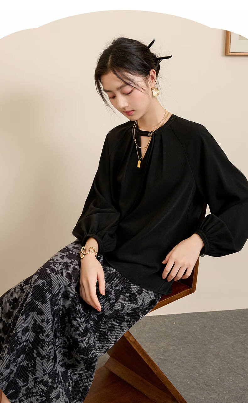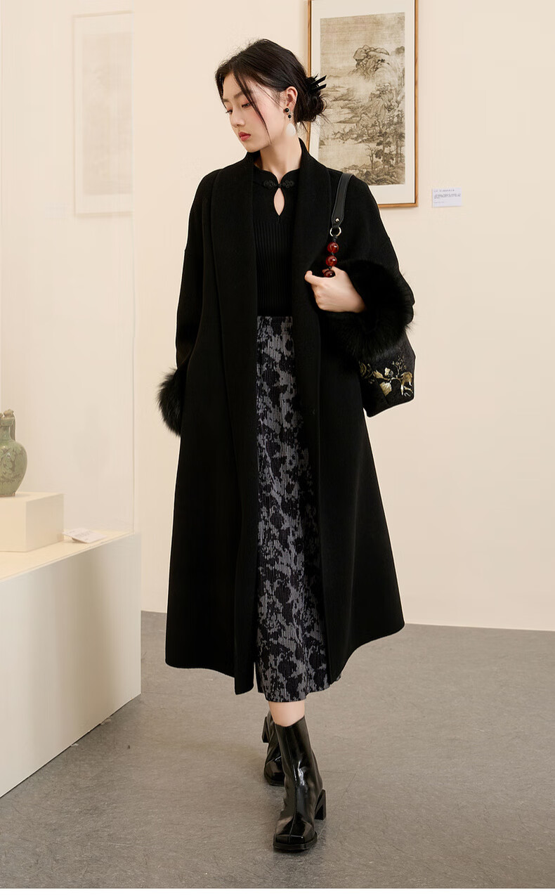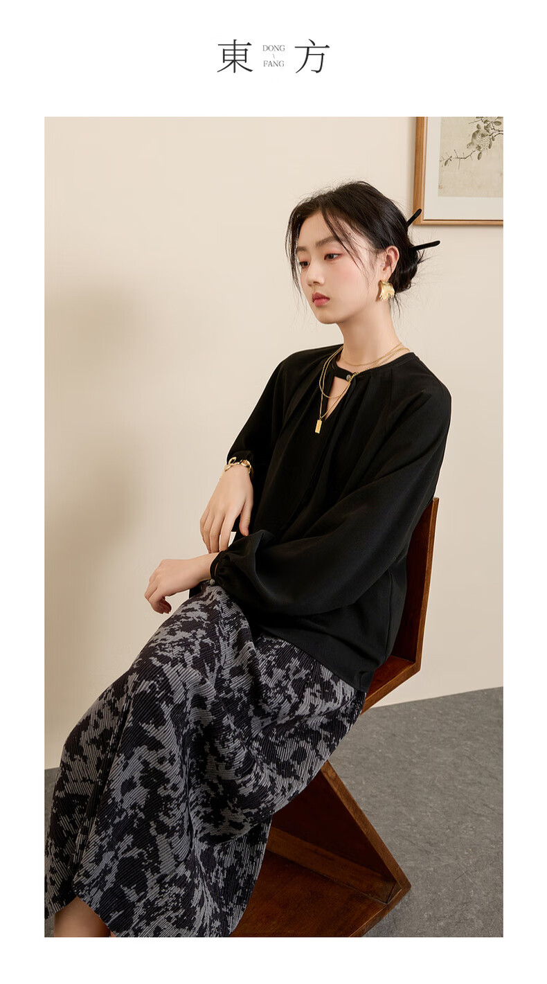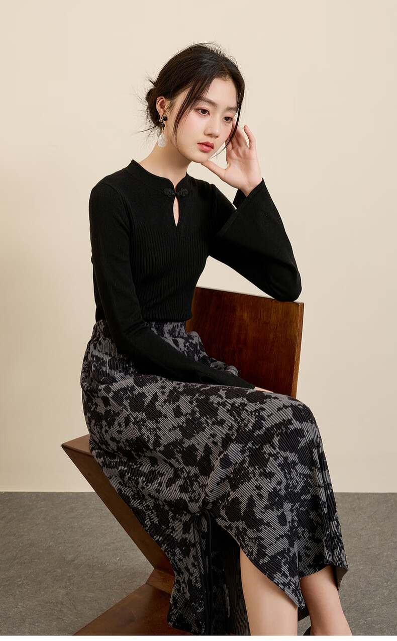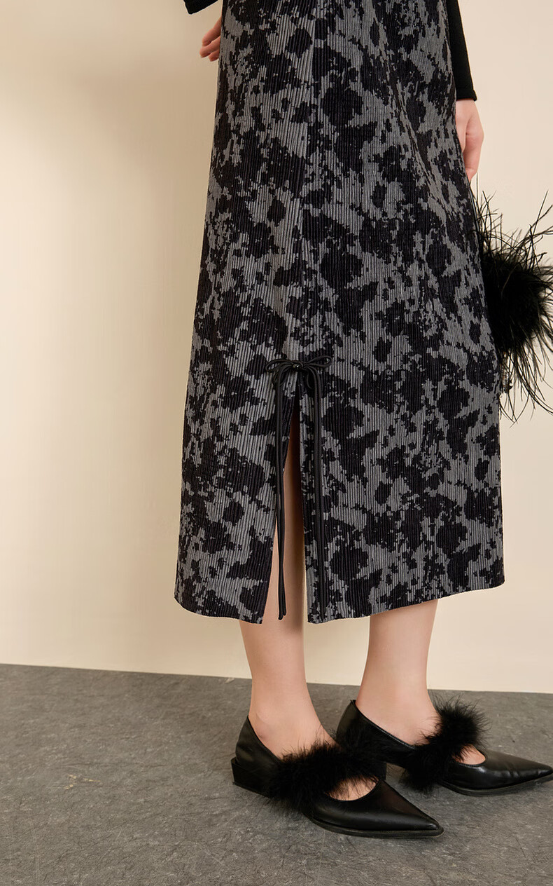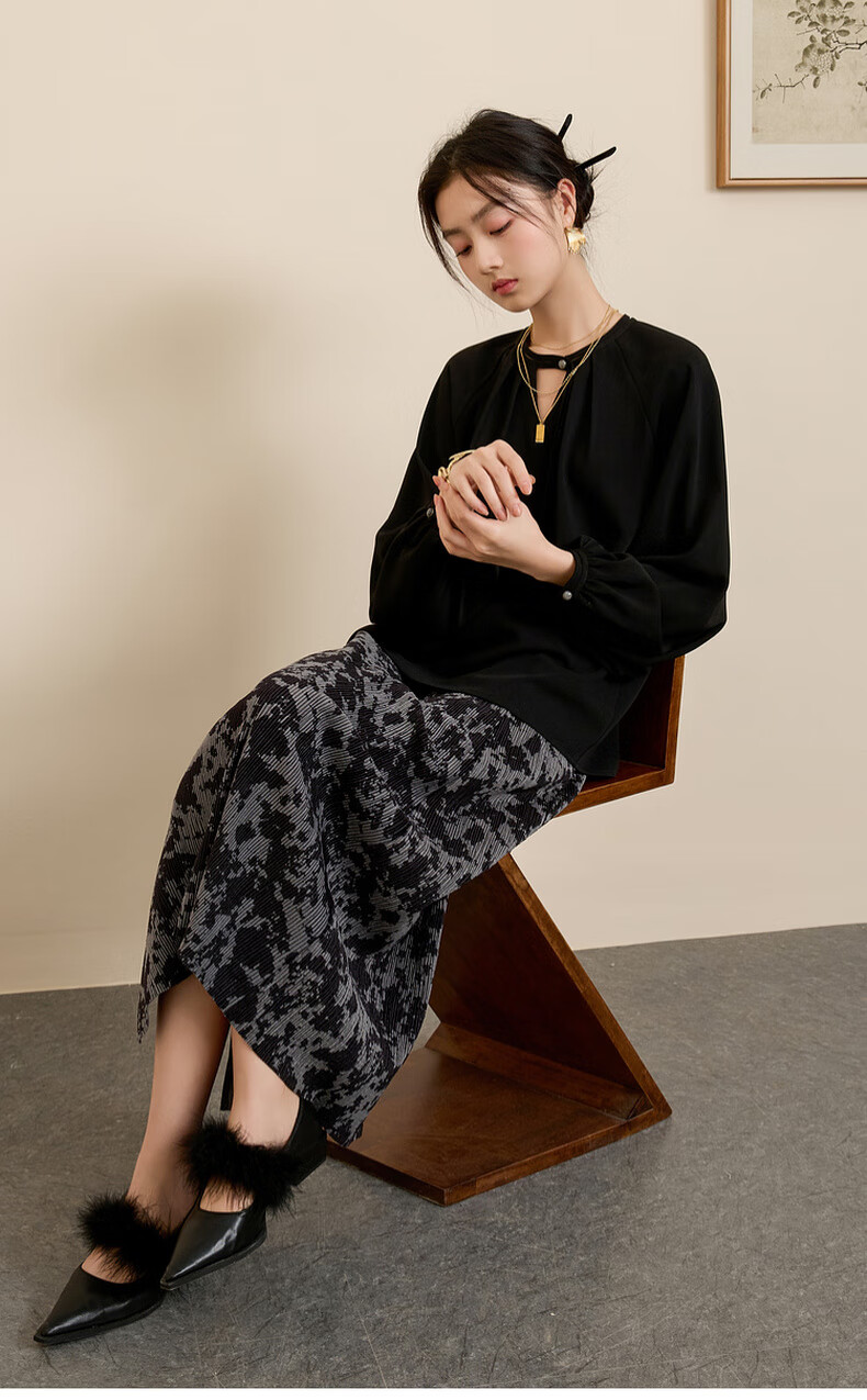 三彩【晕墨流年】2025冬季新款新中式半身裙高腰直筒长裙女