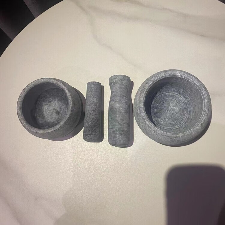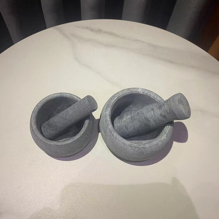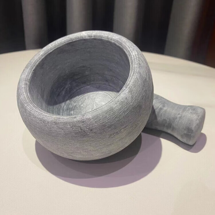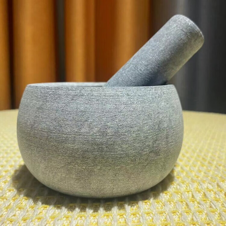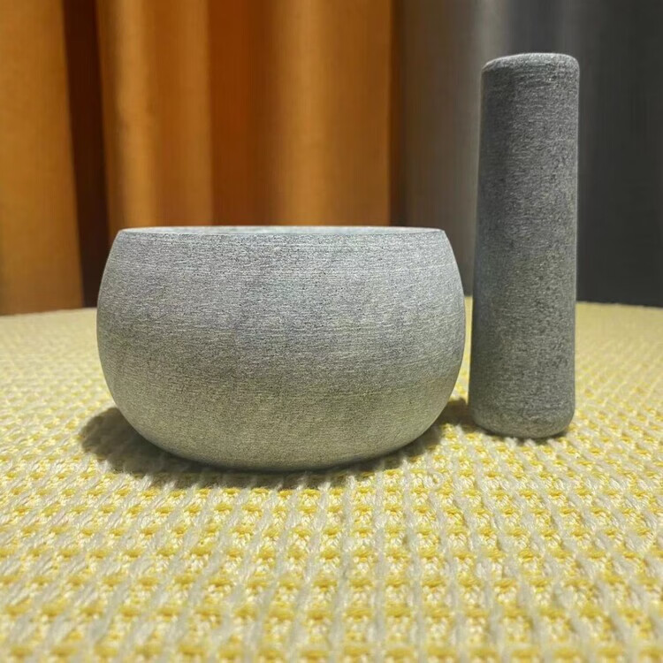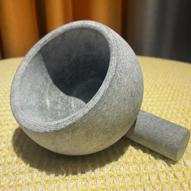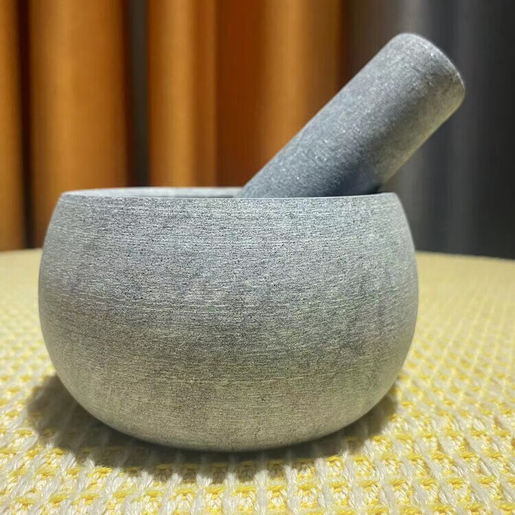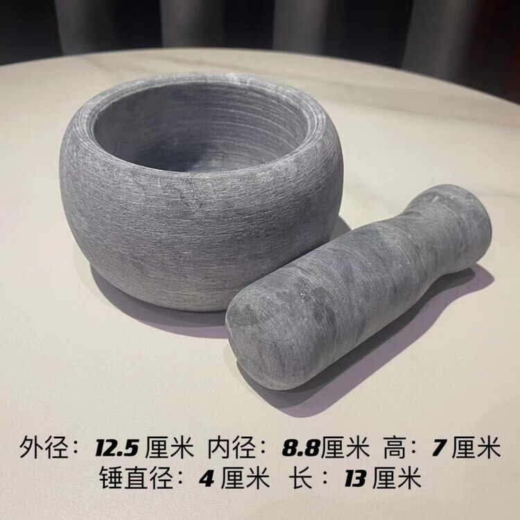 花沐禧纯天然青石蒜臼捣蒜器食品级老式手工新款石盅石臼研磨石头冲臼器 磨砂03大号12.5*12.5*7【一套】