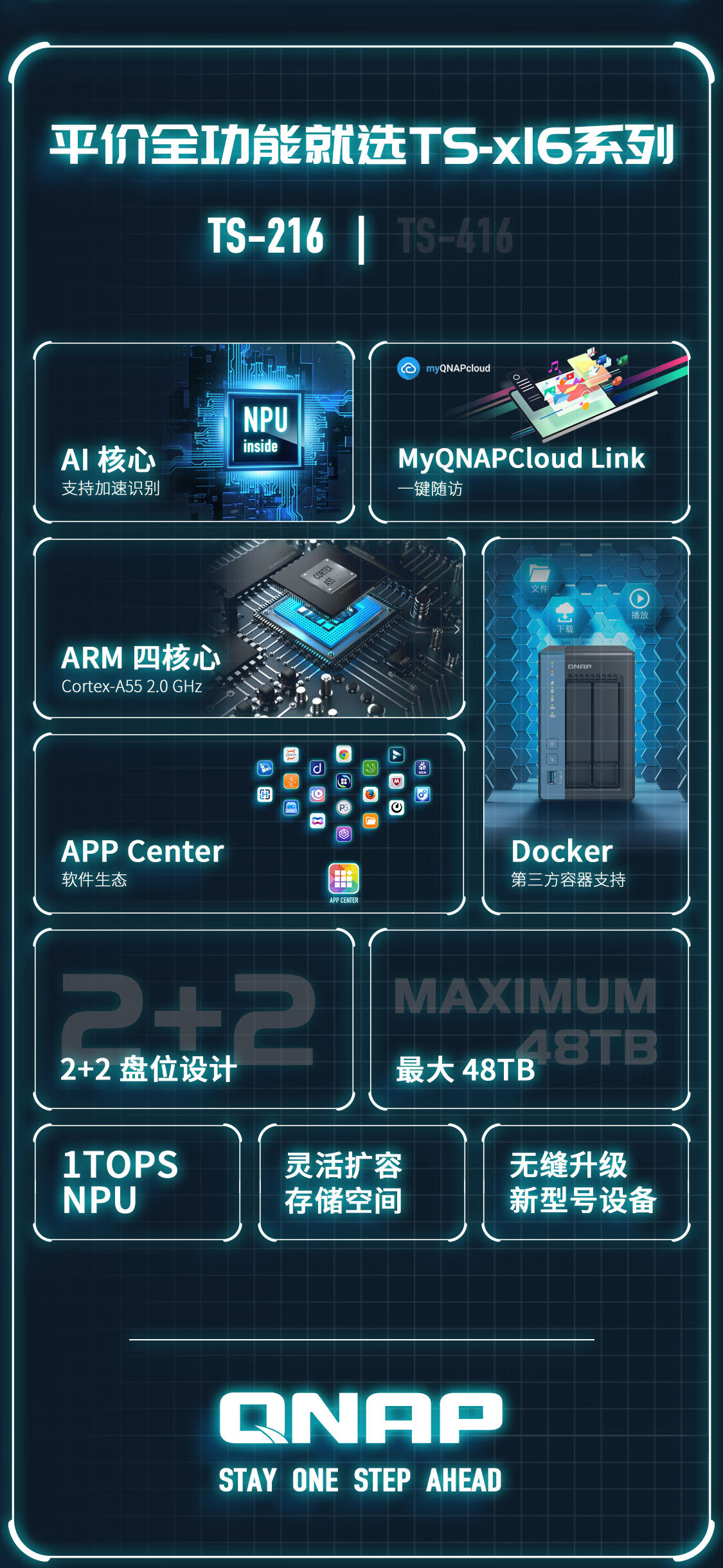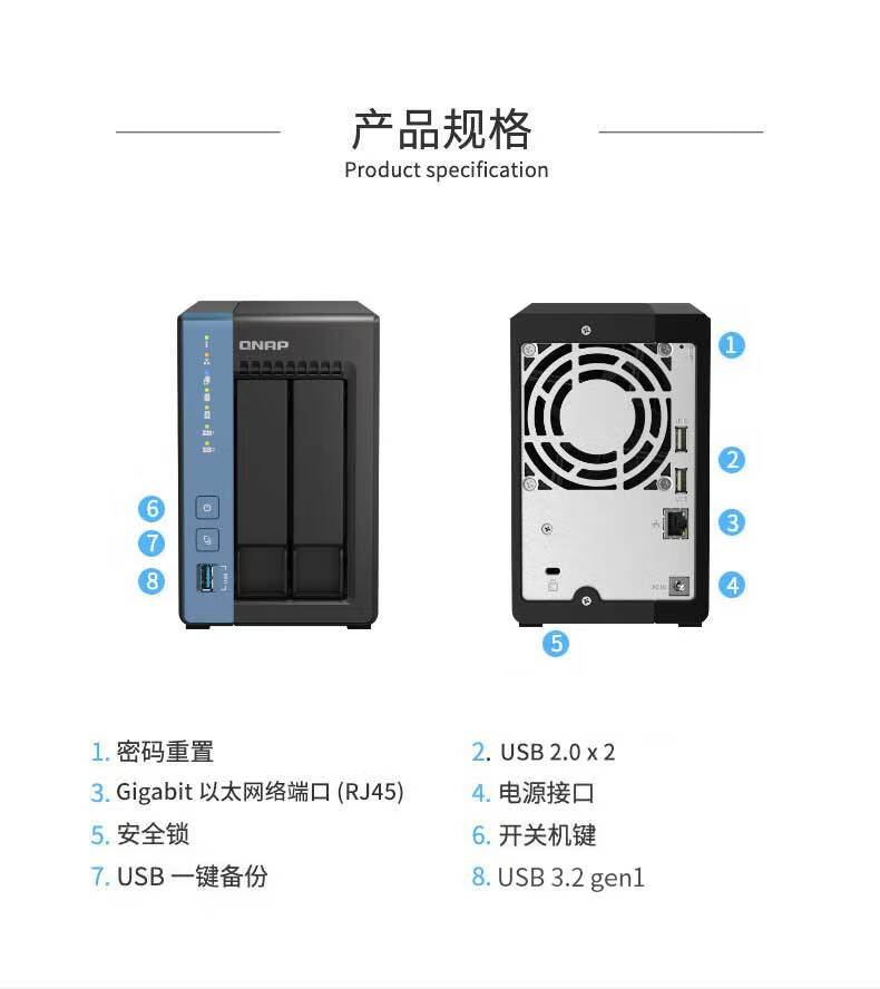 威联通(QNAP)TS-216 天空保垒 4G内存四核心 nas家用网络存储服务器磁盘阵列网盘AI个人私有云盘