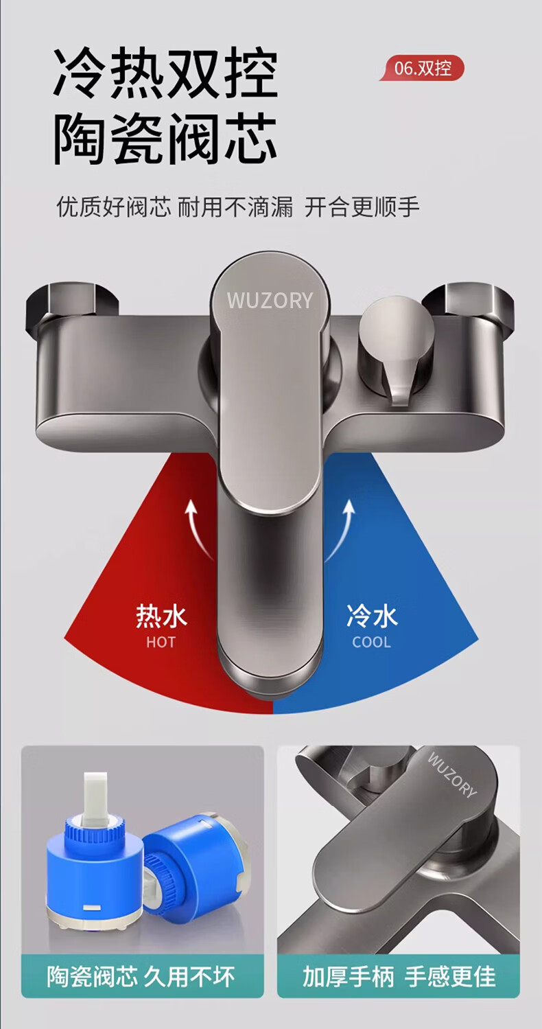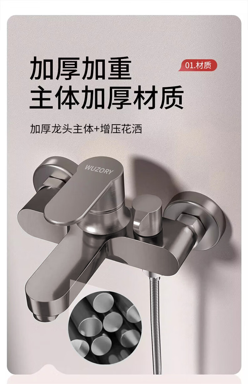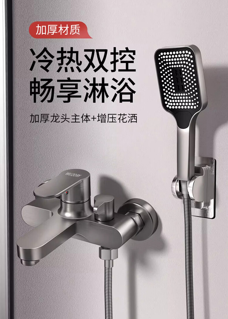 WUZORY【德国】淋浴花洒简易套装家用淋雨浴室洗澡冷热水龙头加厚混水阀 冷热混水阀+方形增压花洒 冷热灵敏双控丨加厚龙头主体
