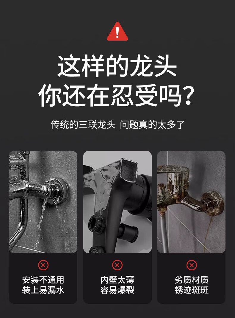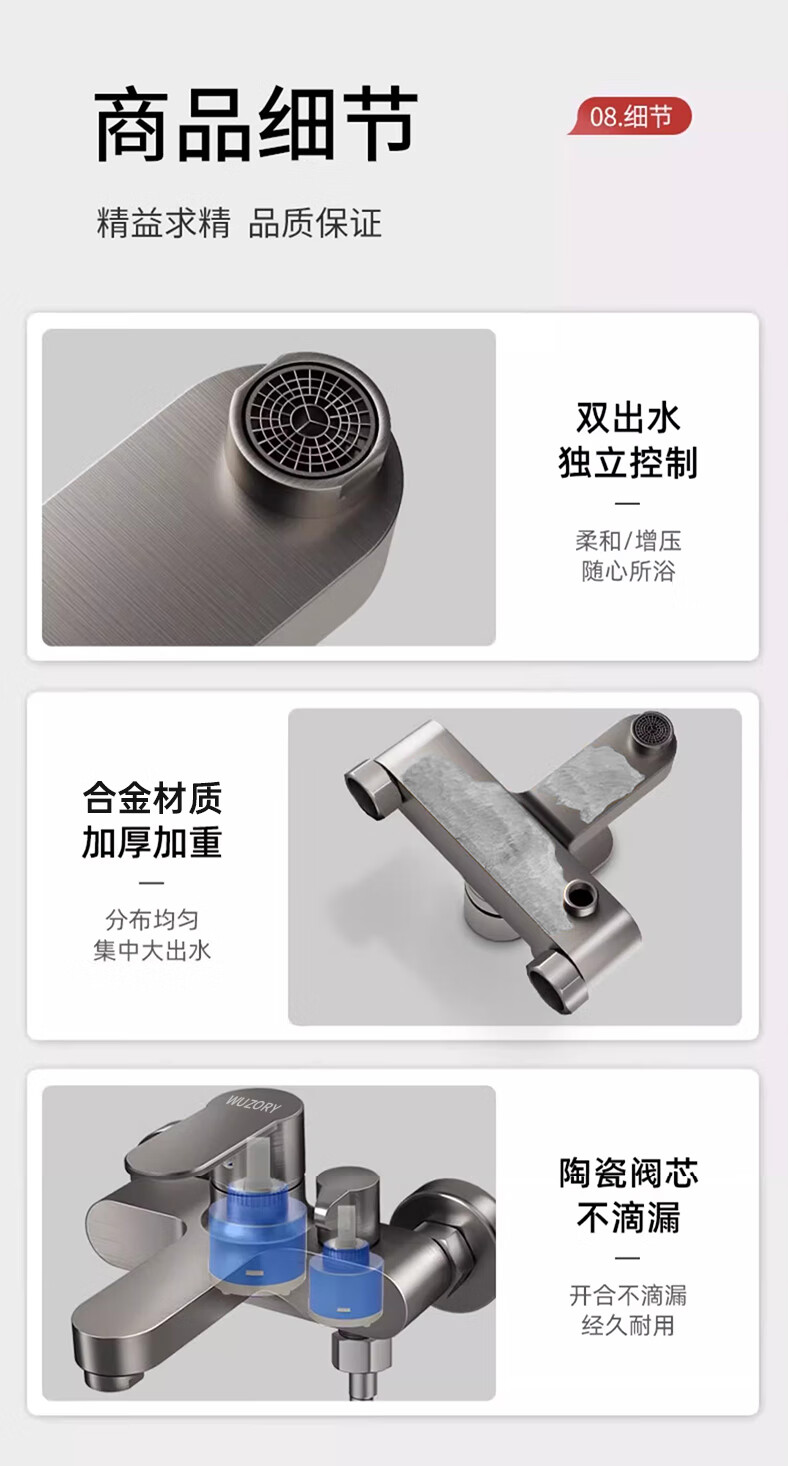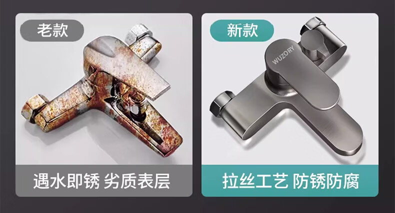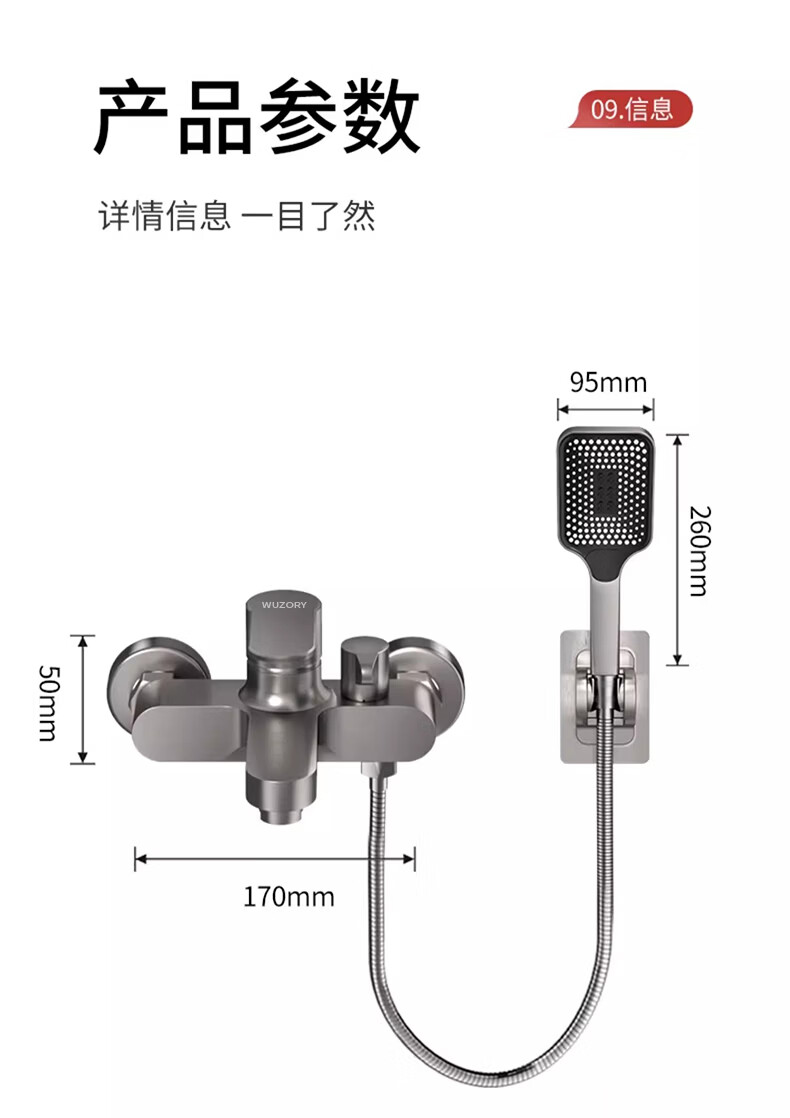 WUZORY【德国】淋浴花洒简易套装家用淋雨浴室洗澡冷热水龙头加厚混水阀 冷热混水阀+方形增压花洒 冷热灵敏双控丨加厚龙头主体