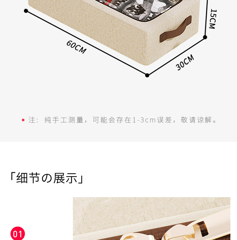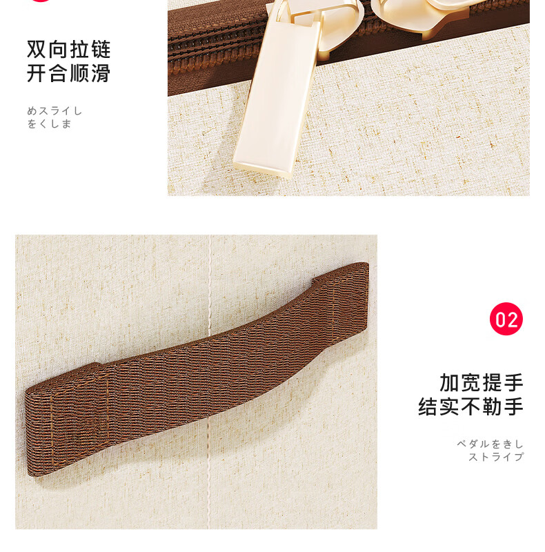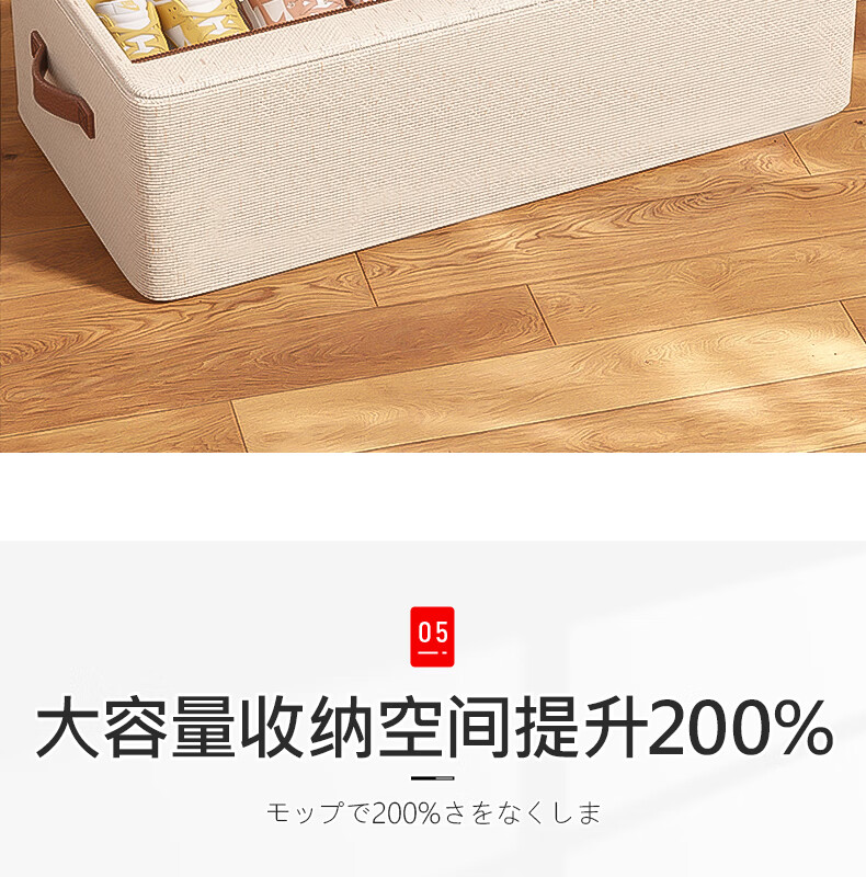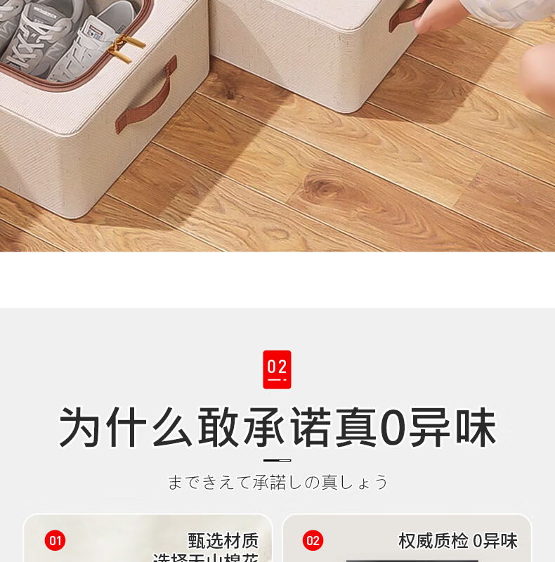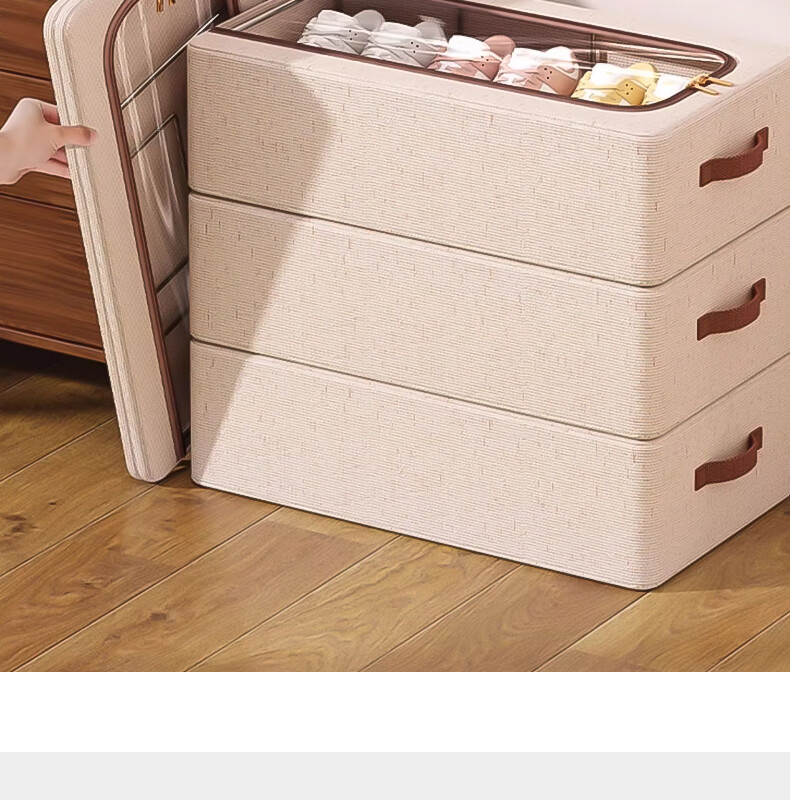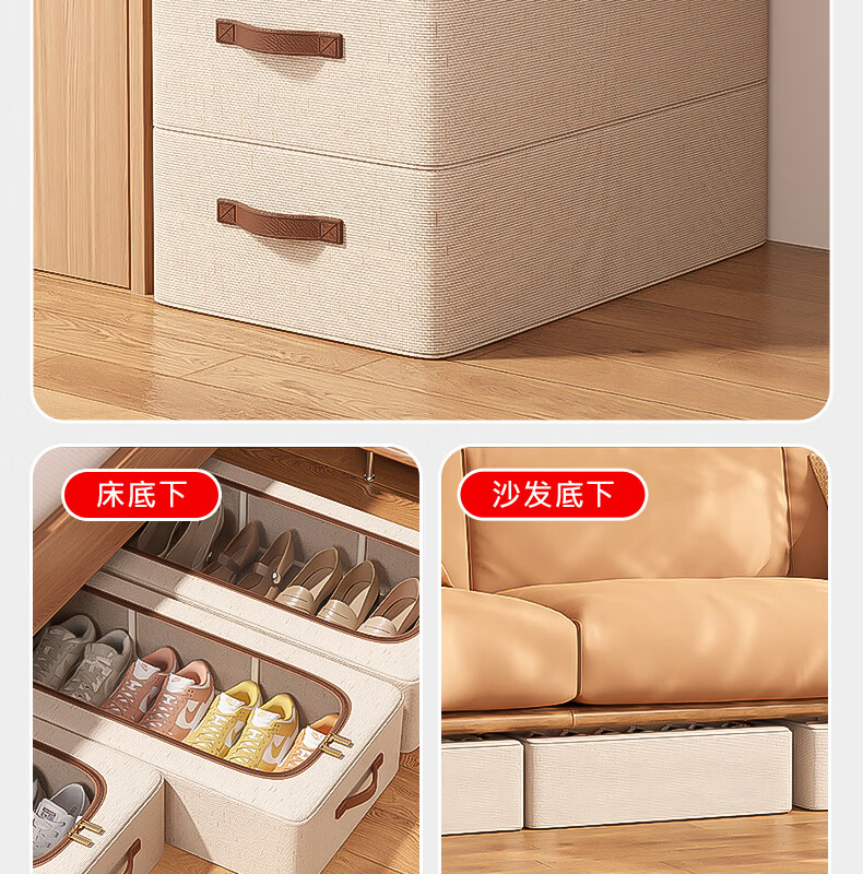 纳份爱【高品质棉麻】收纳箱家用衣物整理箱大容量可折叠被子收纳神器 奶白色-66L【双窗-双开门】优质棉麻 1个装