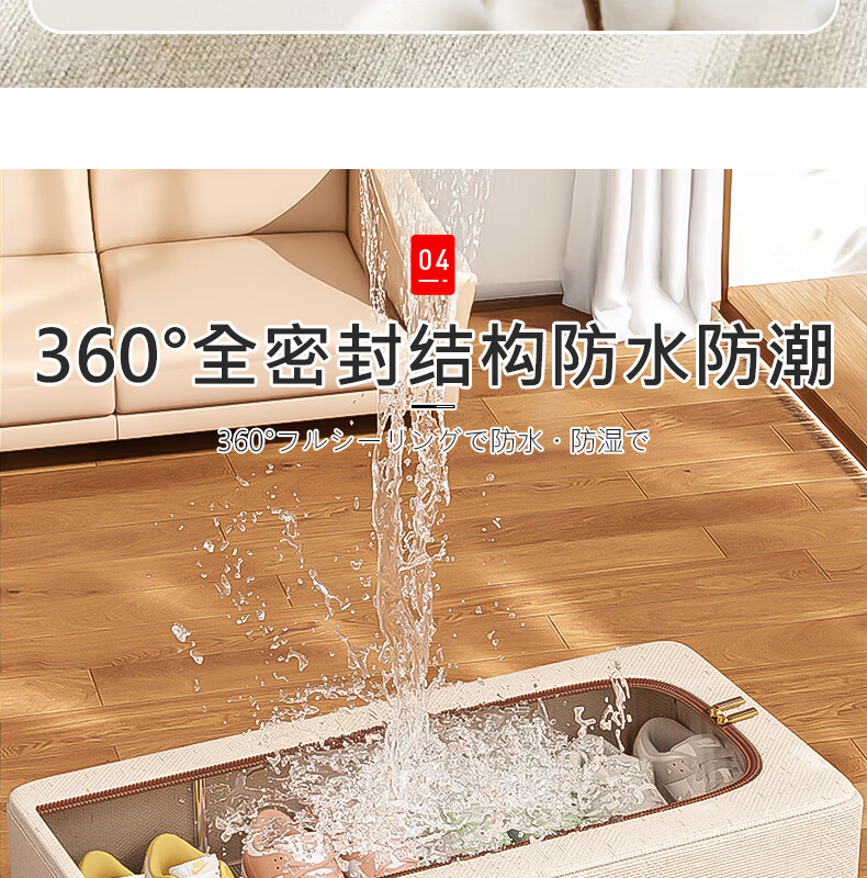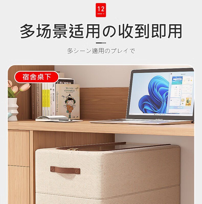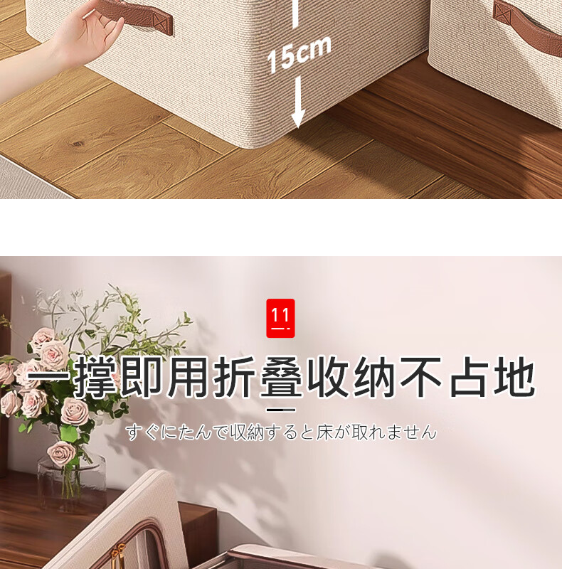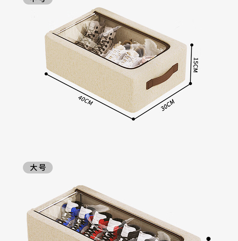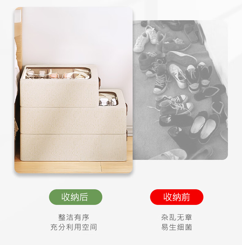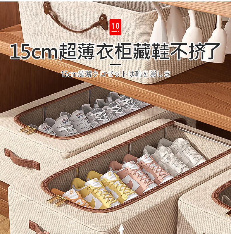纳份爱【高品质棉麻】收纳箱家用衣物整理箱大容量可折叠被子收纳神器 奶白色-66L【双窗-双开门】优质棉麻 1个装