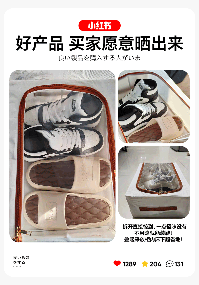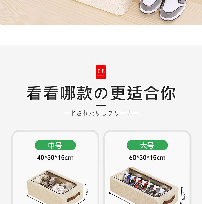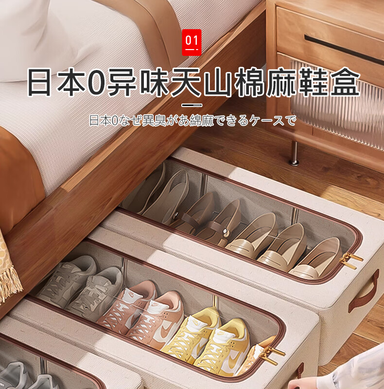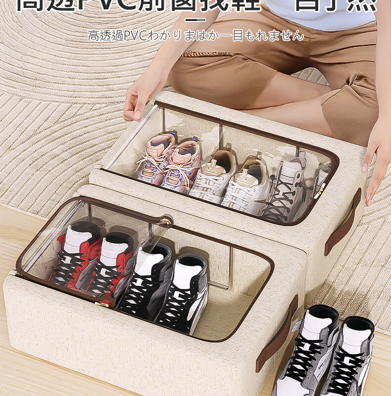 吱凡日本透明鞋盒防尘收纳盒折叠省空间鞋柜整理盒床底下鞋子收纳神器 中号【2个装】 【真天山雪棉丨亲肤0异味】
