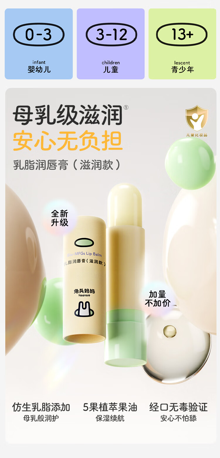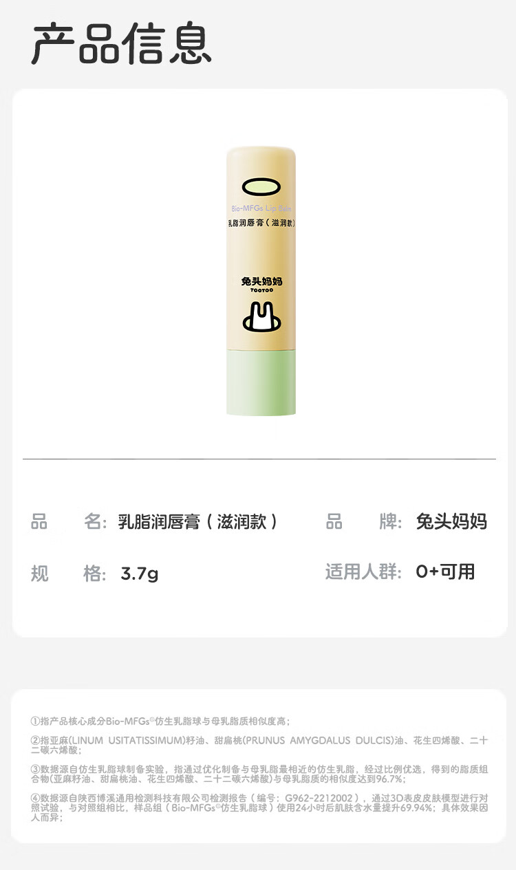 兔头妈妈儿童乳脂润唇膏宝宝学生滋养保湿防干裂护唇膏乳脂唇膏3.7g