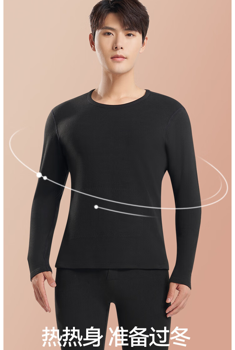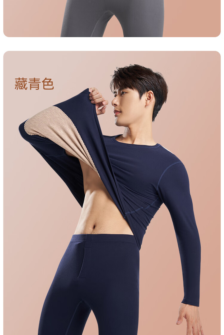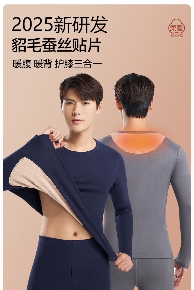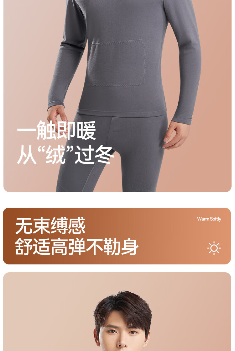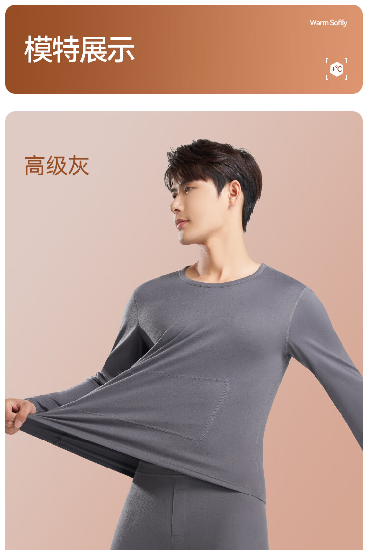 鸭鸭男士天然蚕丝貂毛保暖内衣男秋冬季防寒发热加绒加厚秋衣秋裤套装 高级灰 2XL 建议【140-160斤】