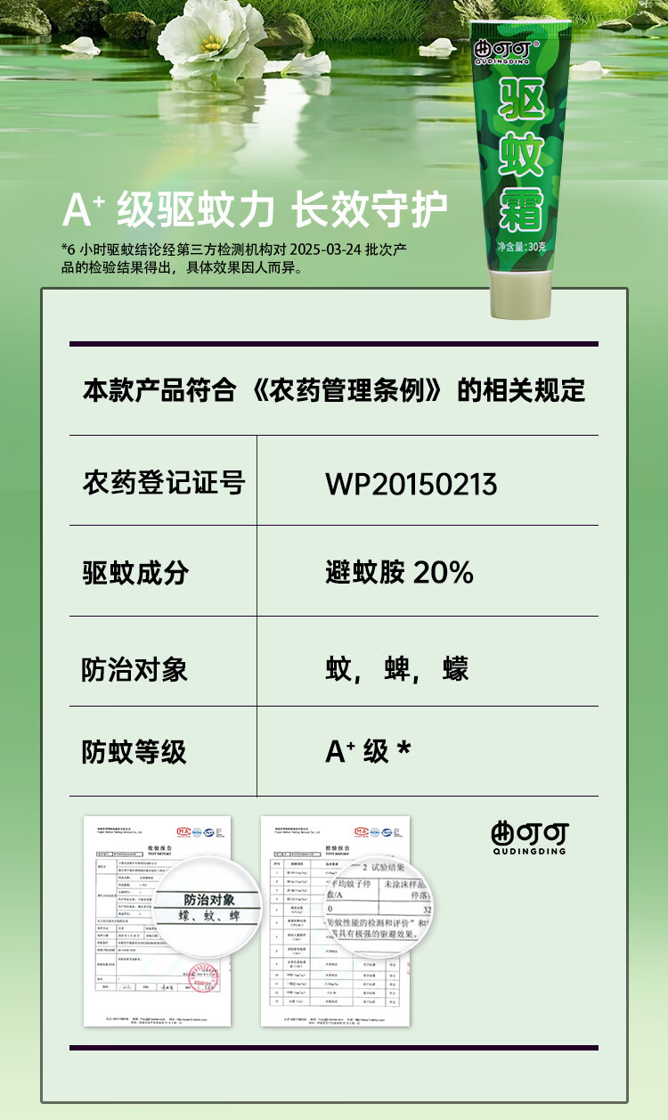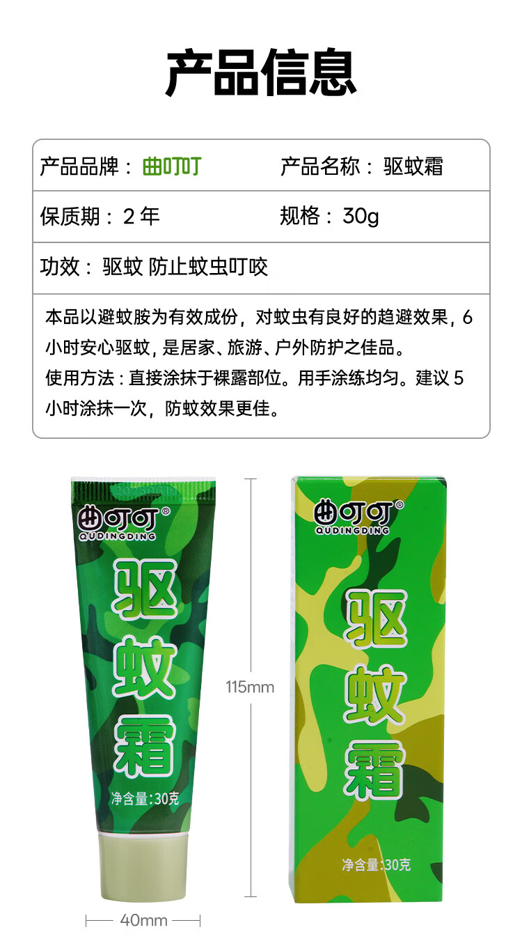 曲叮叮长效驱蚊霜 户外A级驱蚊用品含20%避蚊胺防蚊虫叮咬驱蚊膏神器 【战友同款】长效驱蚊霜-基孔肯雅热
