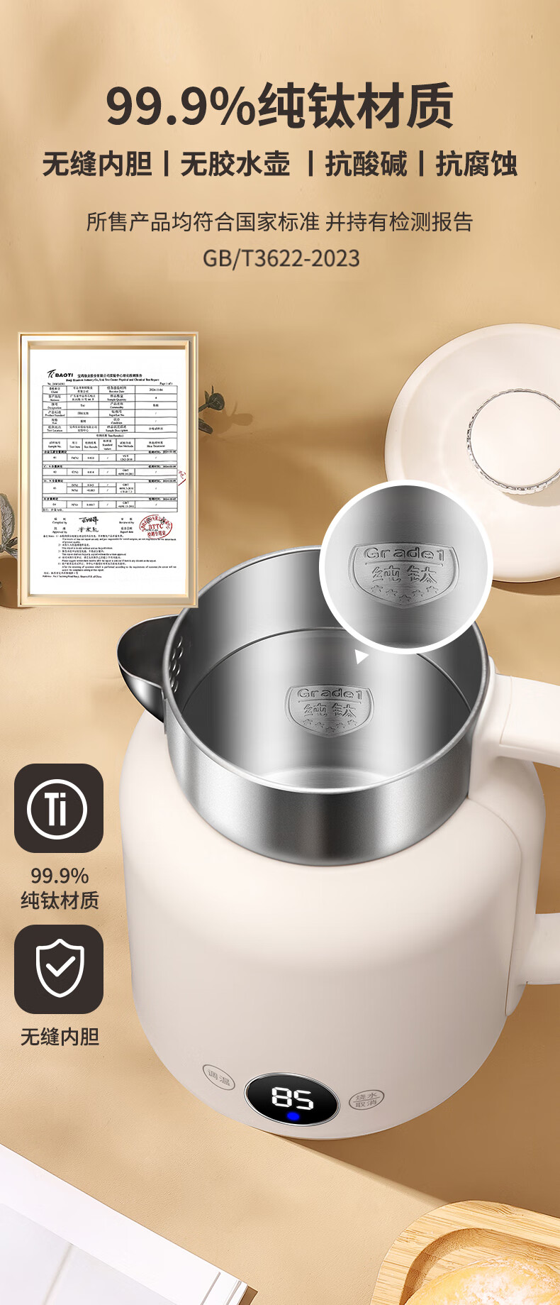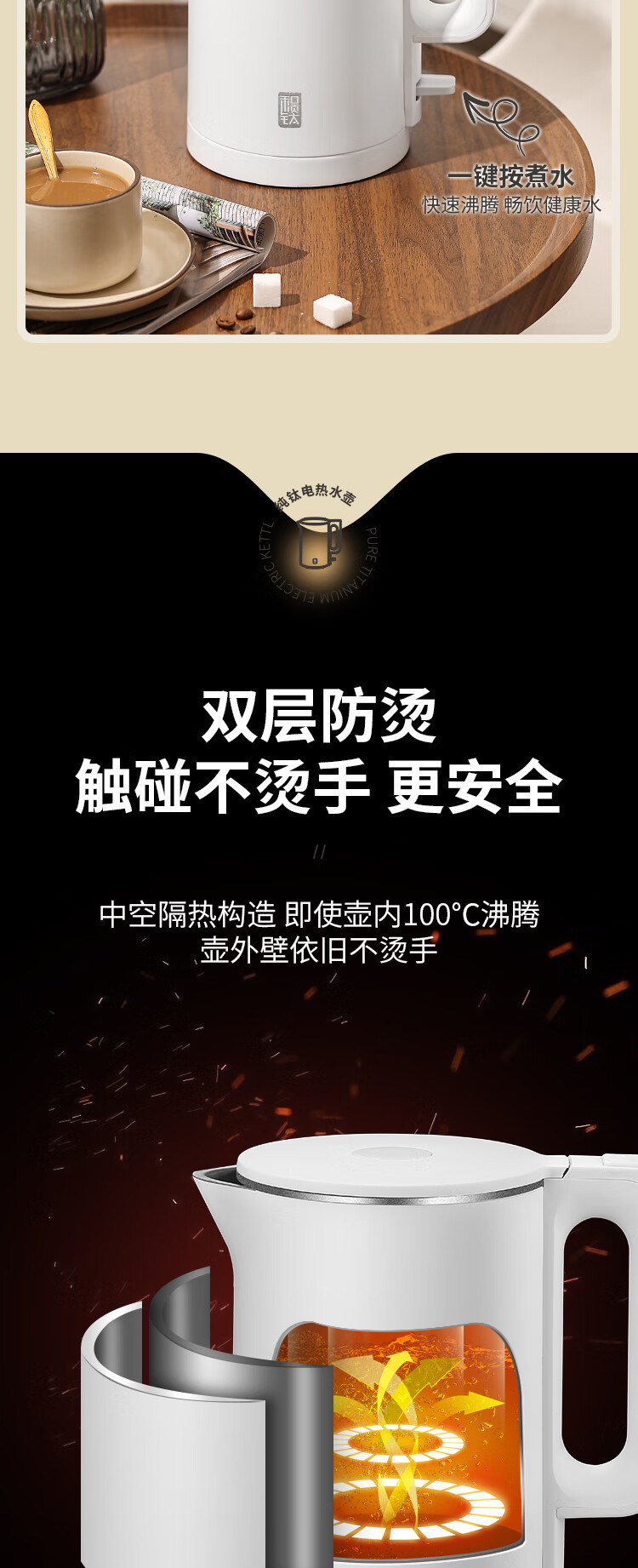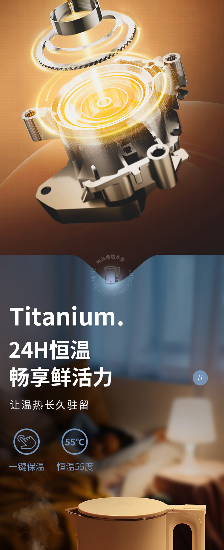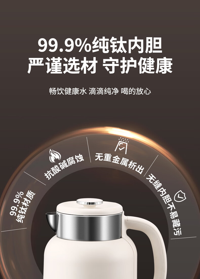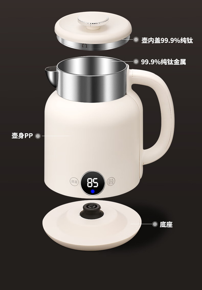 和顺钛和页钛纯钛电热水壶1.5L大容量电烧水壶无缝内胆一键烧水自动断电双层防烫电热壶全开盖设计 1.5L -纯钛全开盖【5段保温功能】