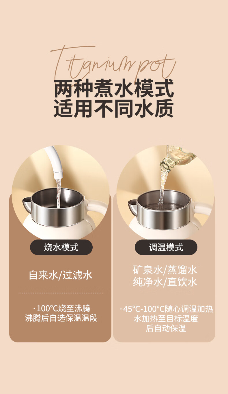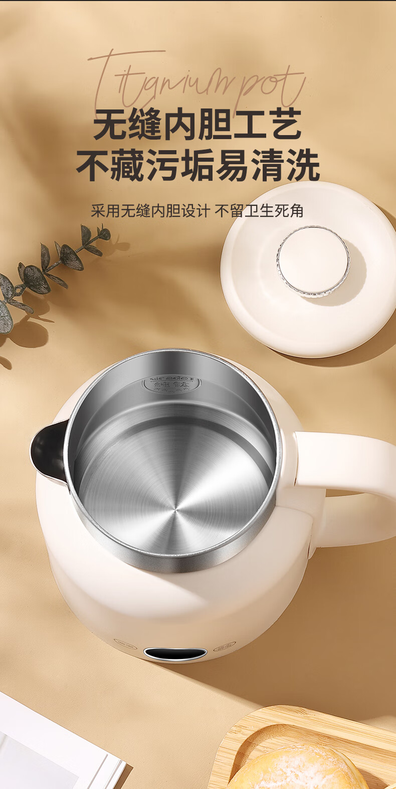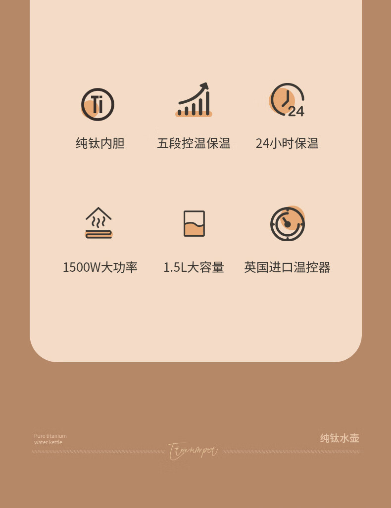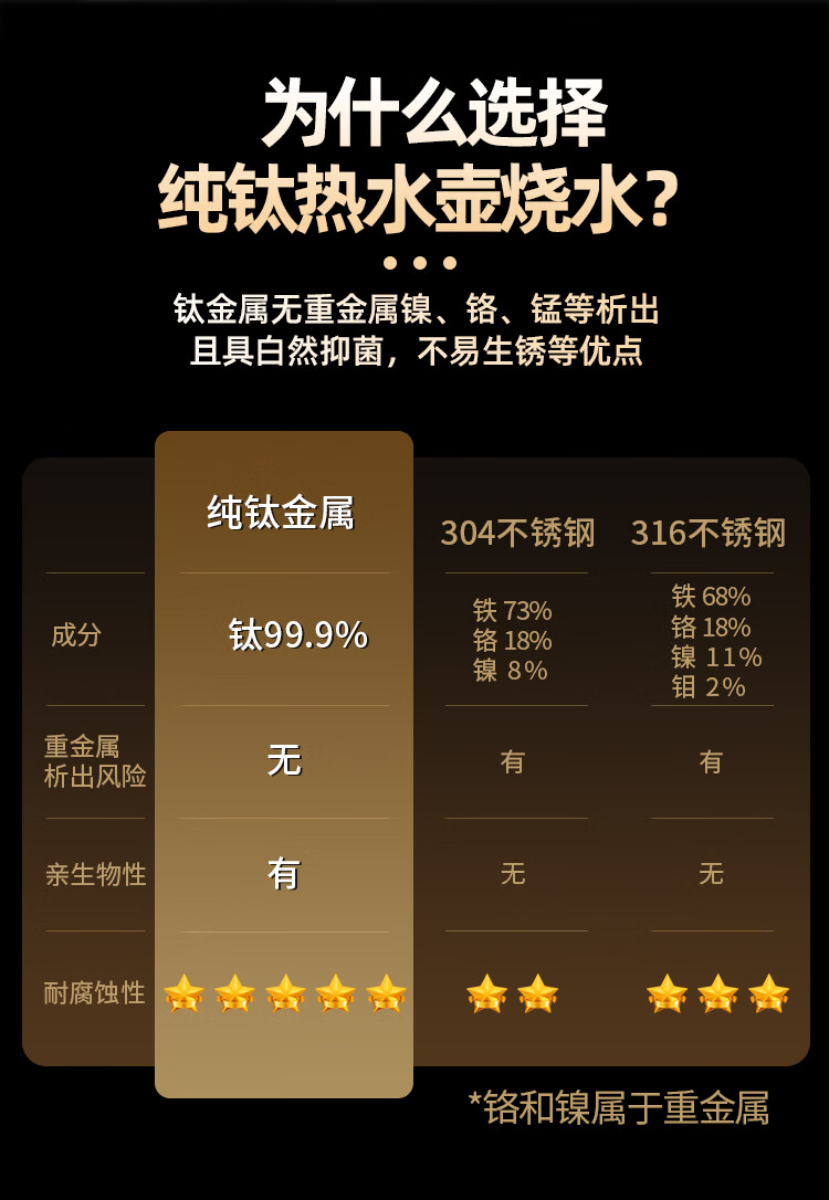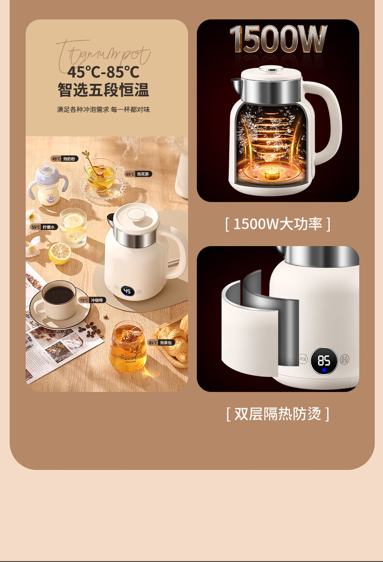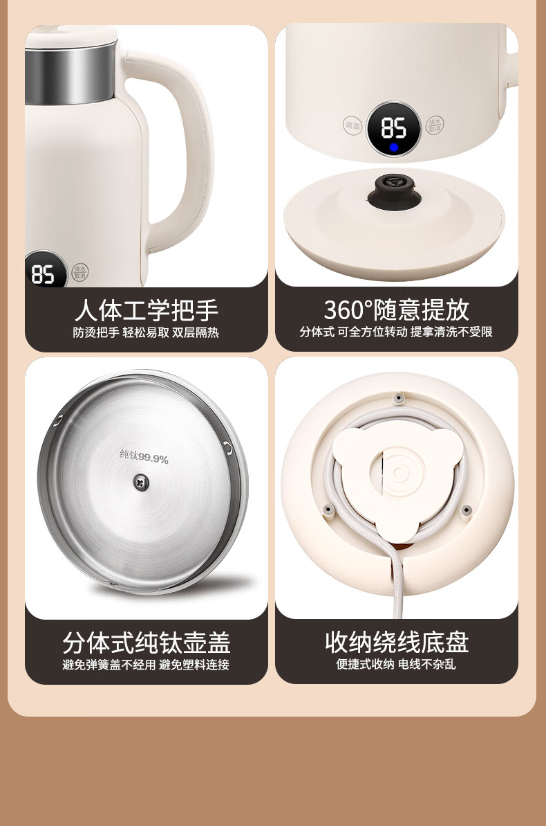 和顺钛和页钛纯钛电热水壶1.5L大容量电烧水壶无缝内胆一键烧水自动断电双层防烫电热壶全开盖设计 1.5L -纯钛全开盖【5段保温功能】