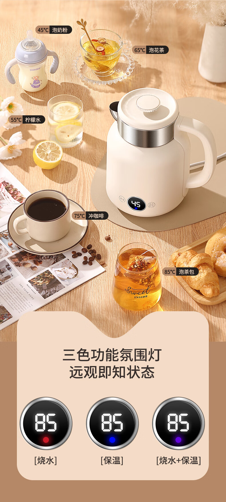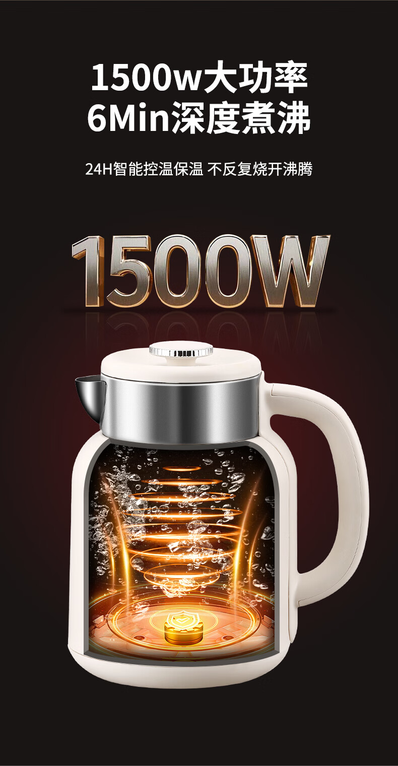 京东京造养生壶 316L母婴级不锈钢1.5L烧水壶 大加热功率煮茶器电热水壶 24小时预约安全防干烧年货送礼