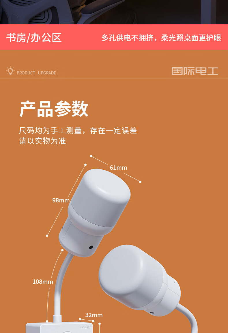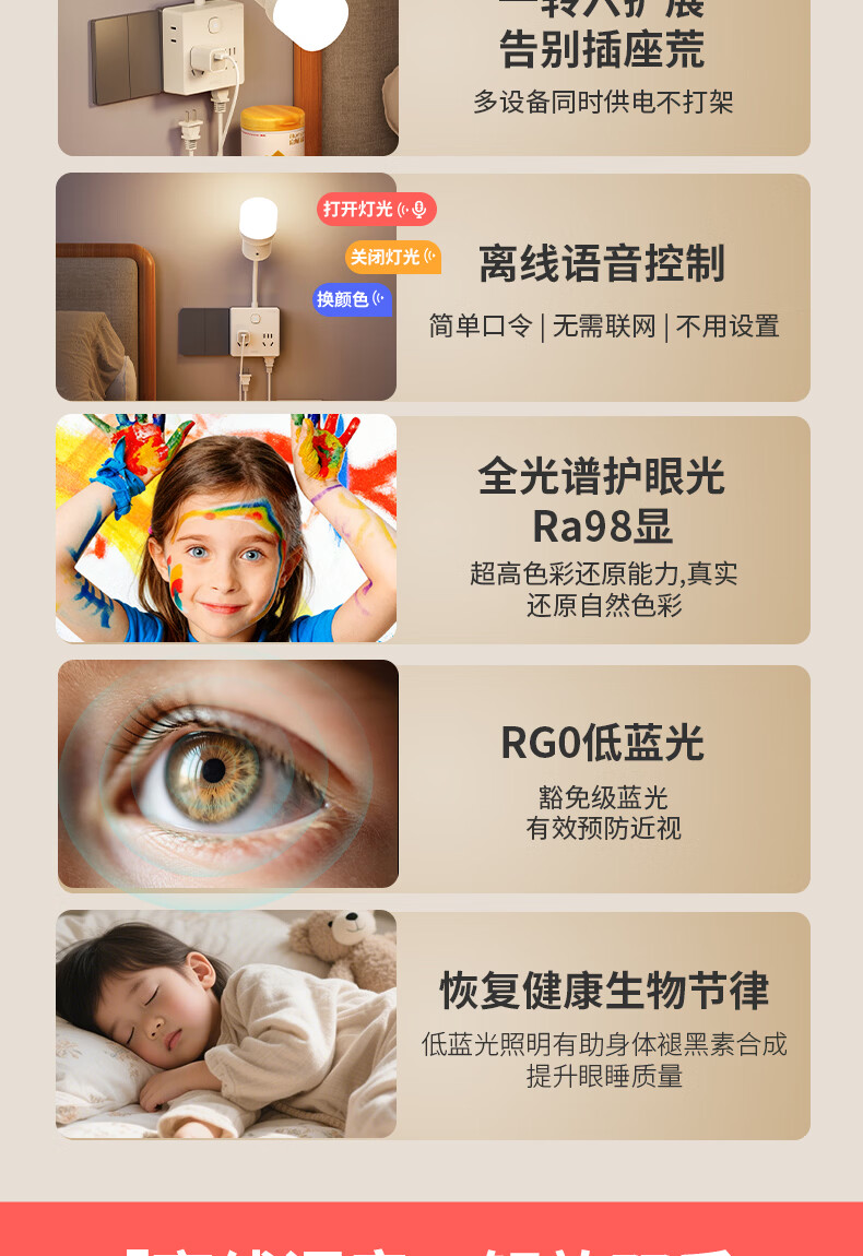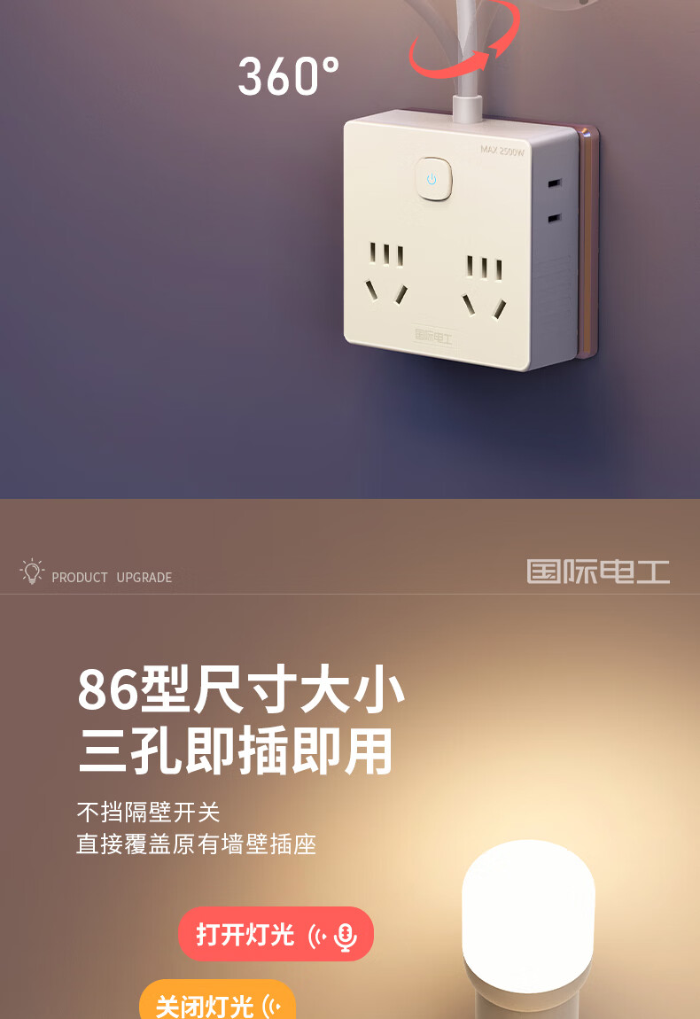 国际电工(FDD)一转六拓展扩展插座卧室床头书桌多功能全光谱小夜灯直插式转换插 【常规款】一转六扩展插座(4.5W全光谱护眼)