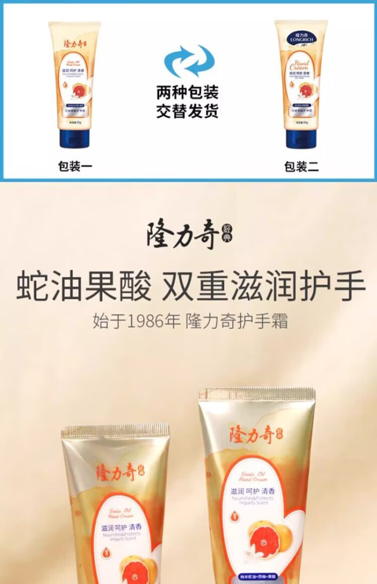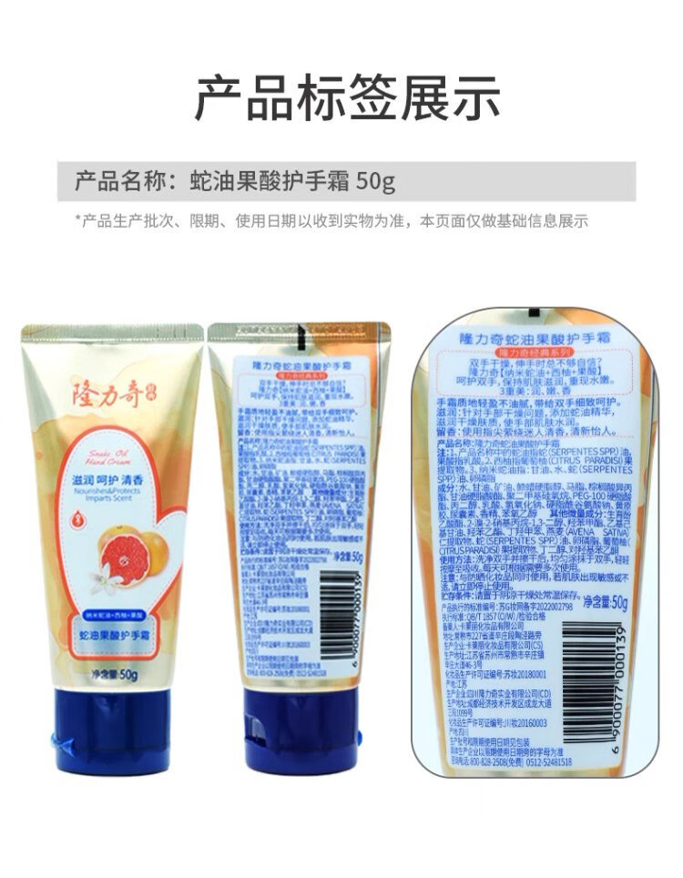 隆力奇蛇油果酸护手霜滋润柔嫩手霜秋冬季保湿防干裂 蛇油护手霜70g*3支