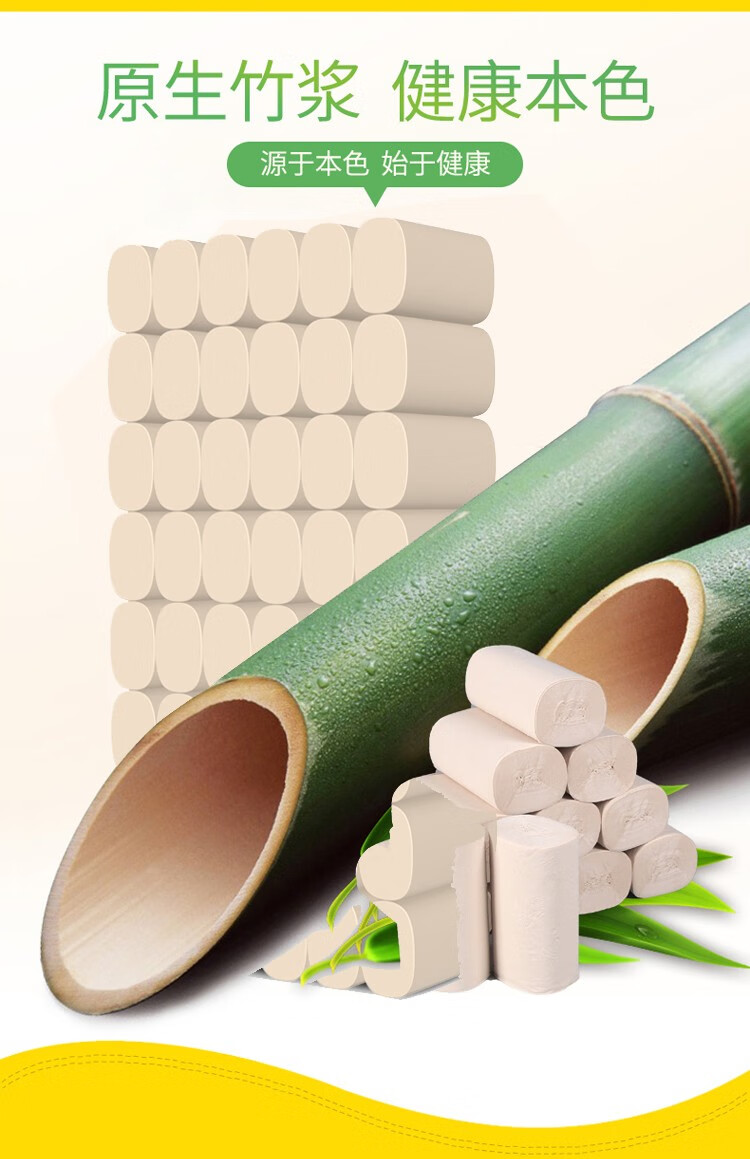 一晨本色卫生纸48卷5.2斤竹浆纤维卷纸家用厕所手纸批发团购 4层 54.2g/卷*48卷 5.2斤