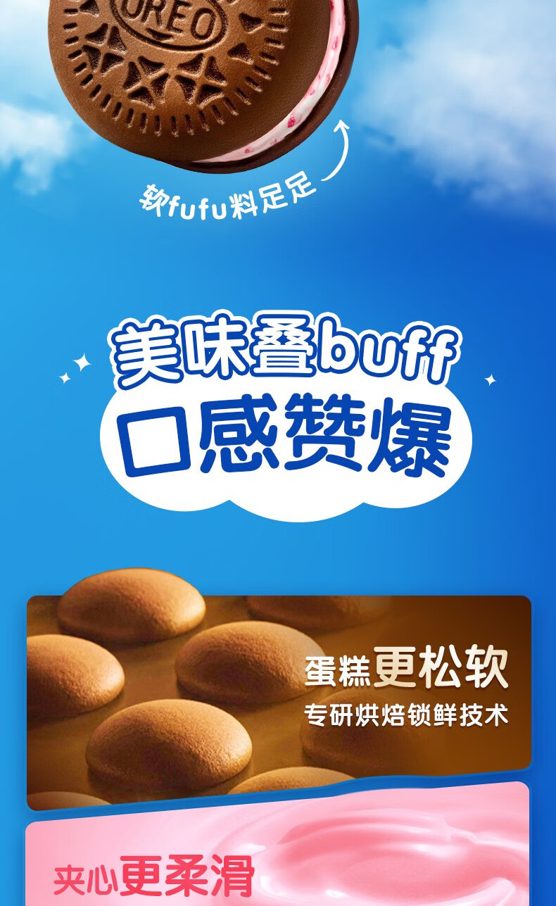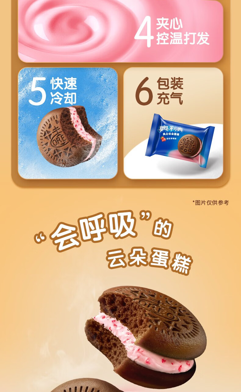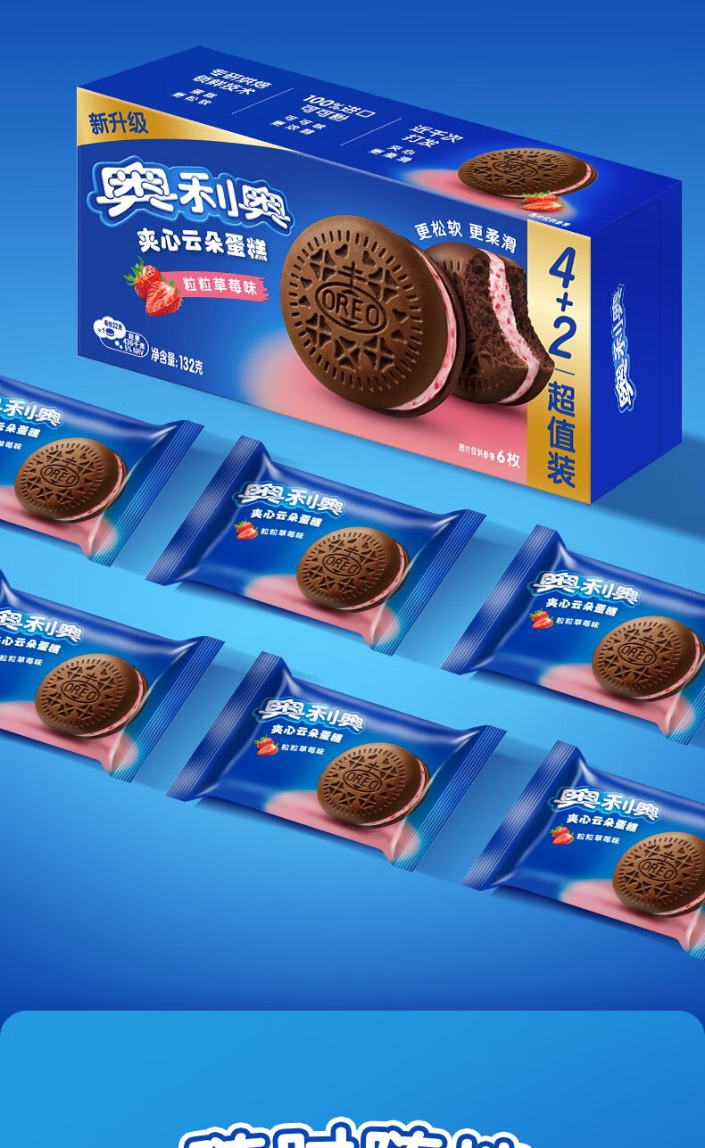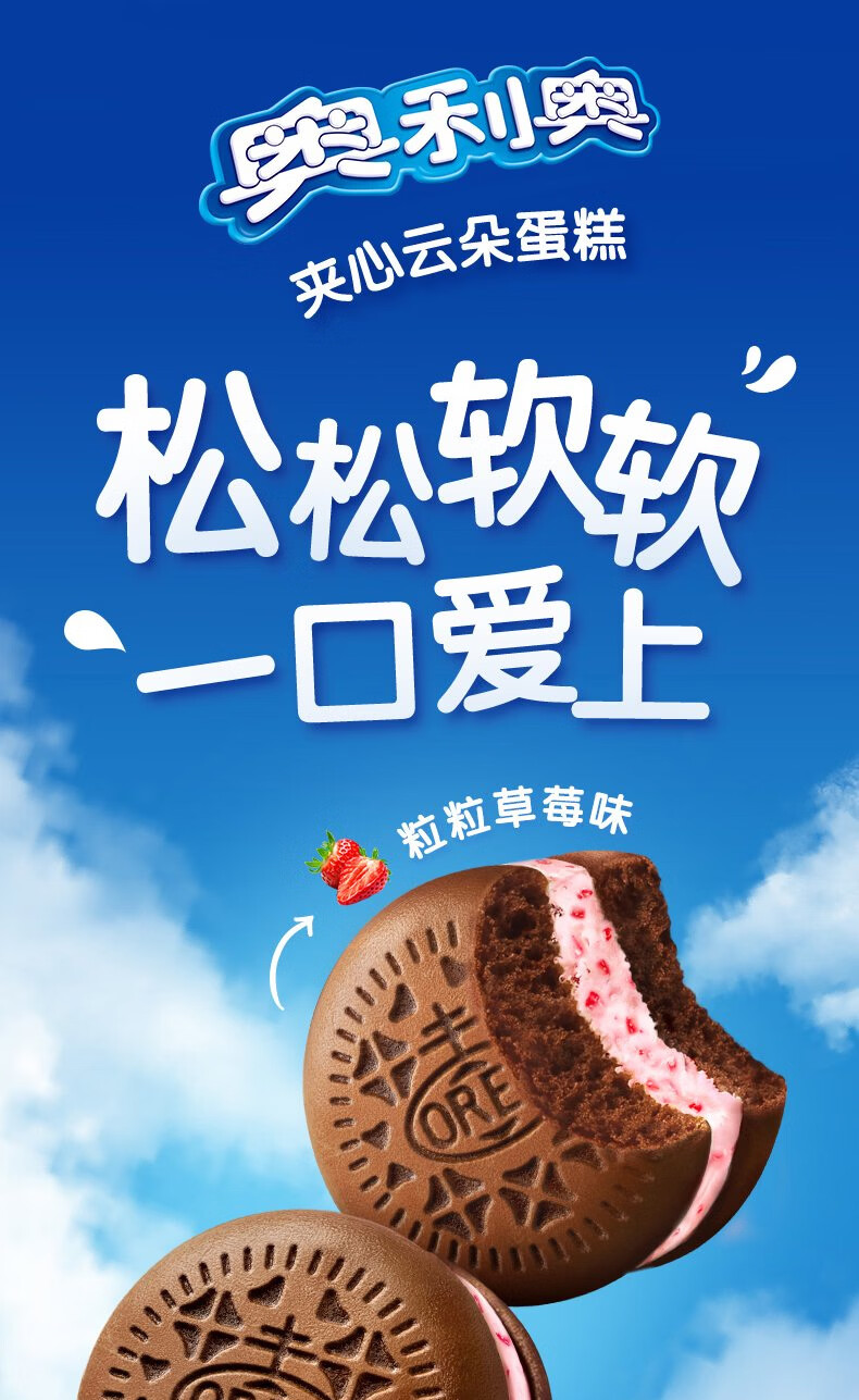 奥利奥(Oreo)夹心云朵蛋糕粒粒草莓味6枚132g 糕点休闲零食 早餐下午茶