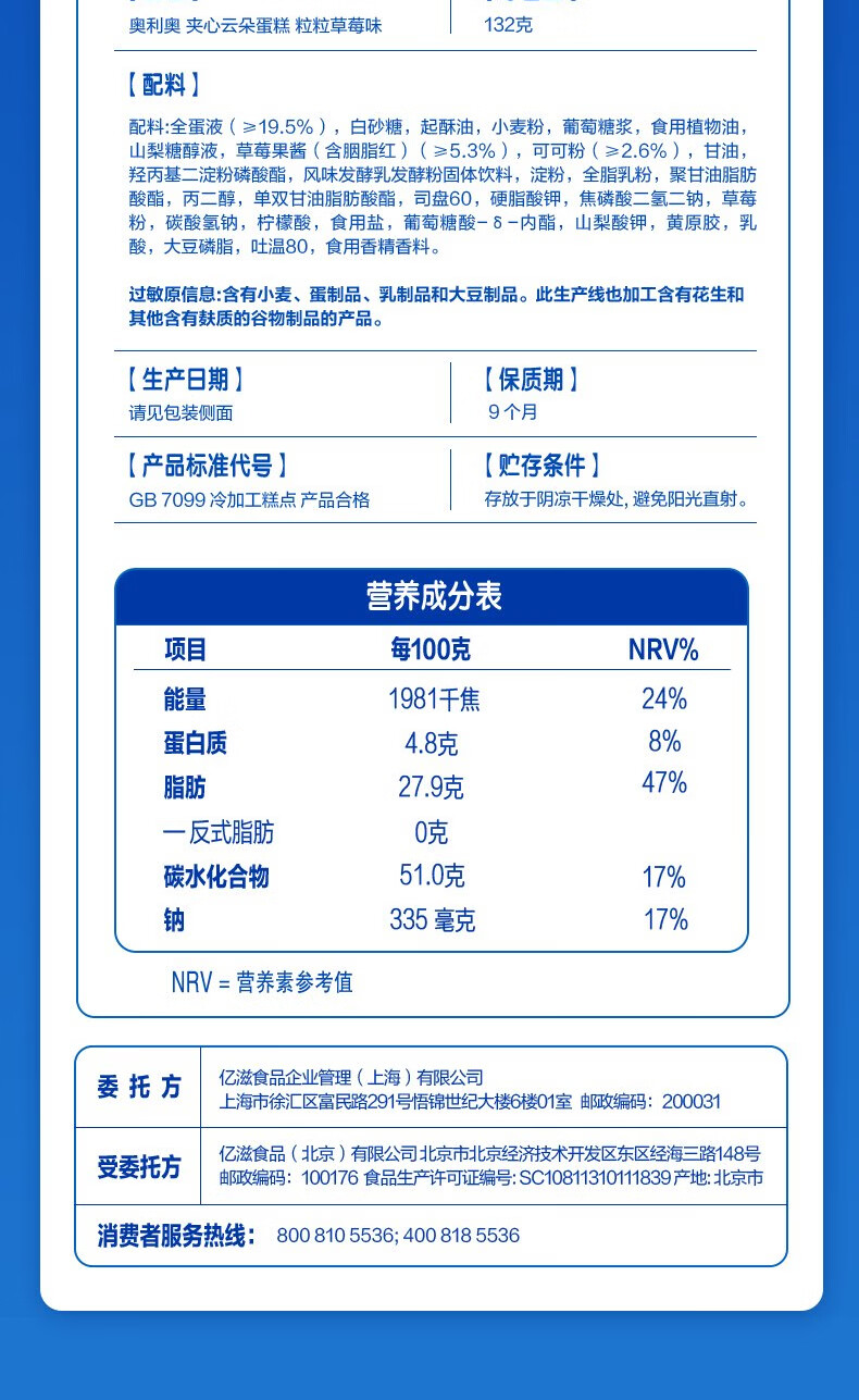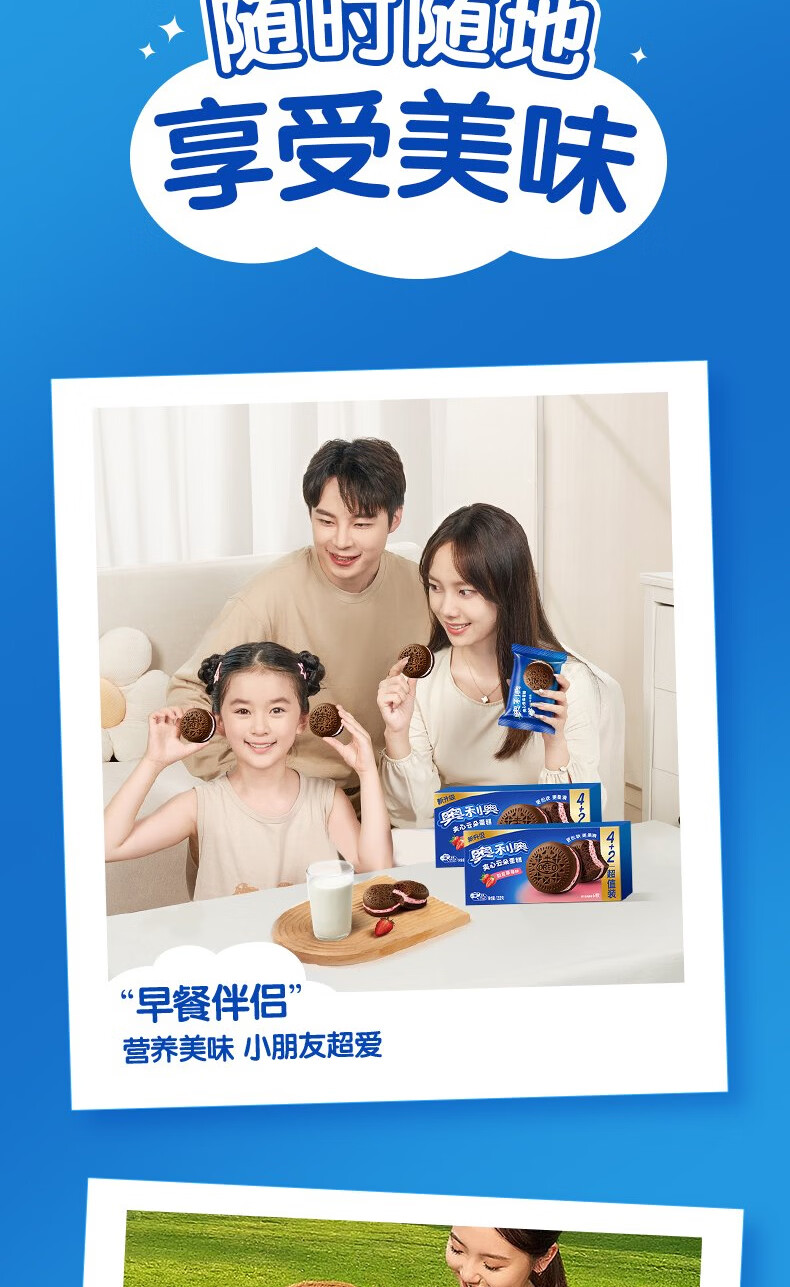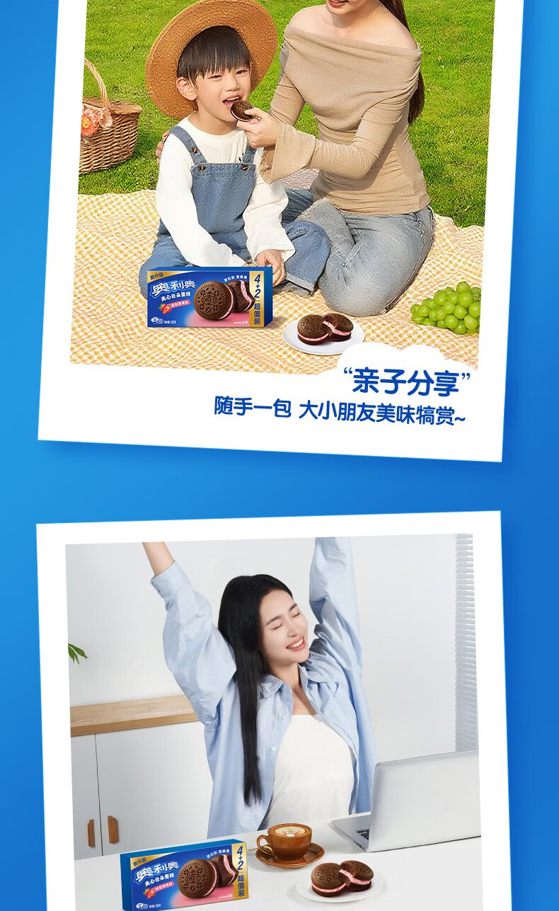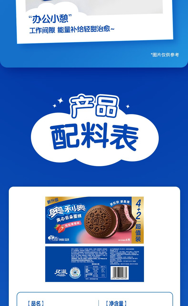 奥利奥(Oreo)夹心云朵蛋糕粒粒草莓味6枚132g 糕点休闲零食 早餐下午茶