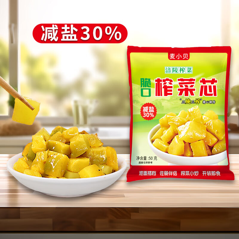麦小贝涪陵榨菜芯50g口口脆小包装重庆特产清淡下饭菜咸菜腌制菜 【5袋】榨菜丝50g