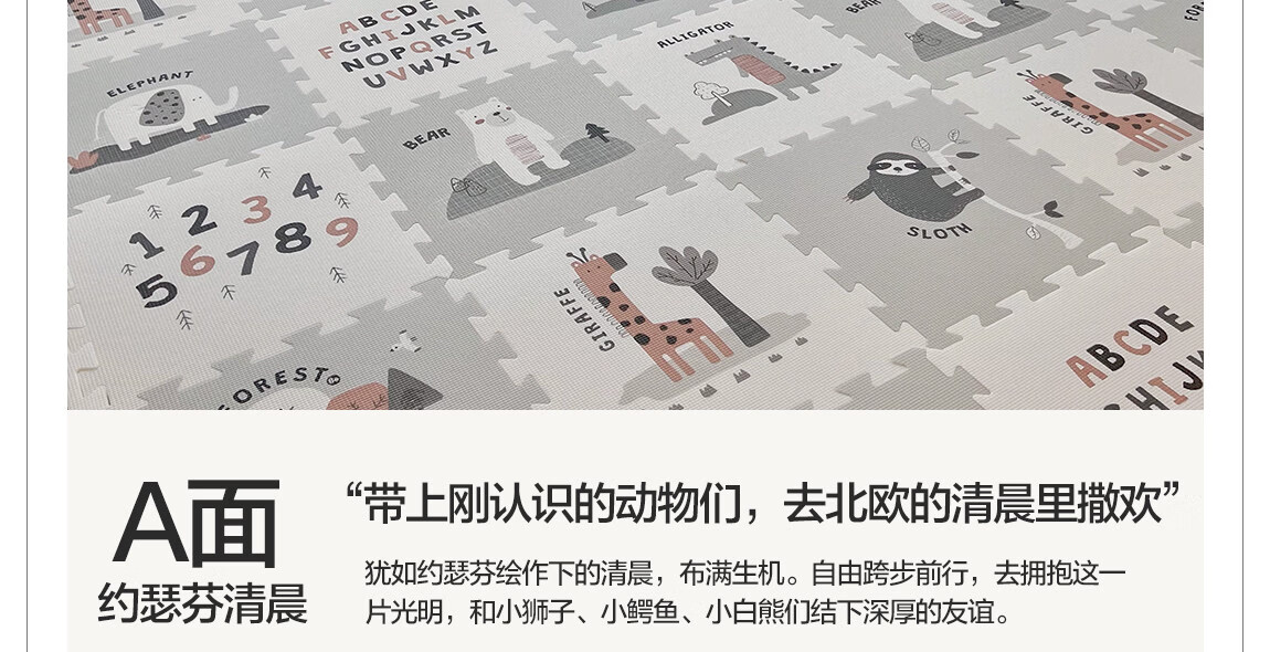 贝易婴幼儿爬爬垫拼接蜂氧棉xpe地垫爬行垫加厚宝宝防摔垫-清晨6
